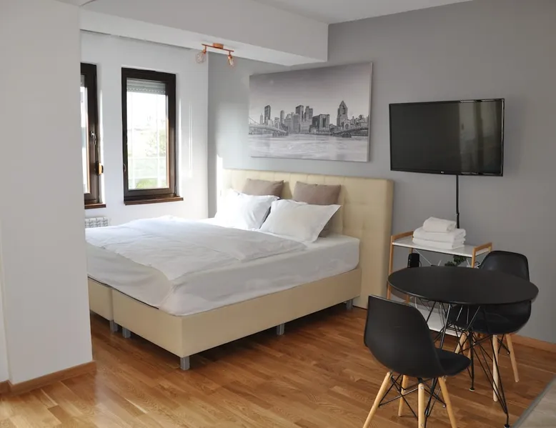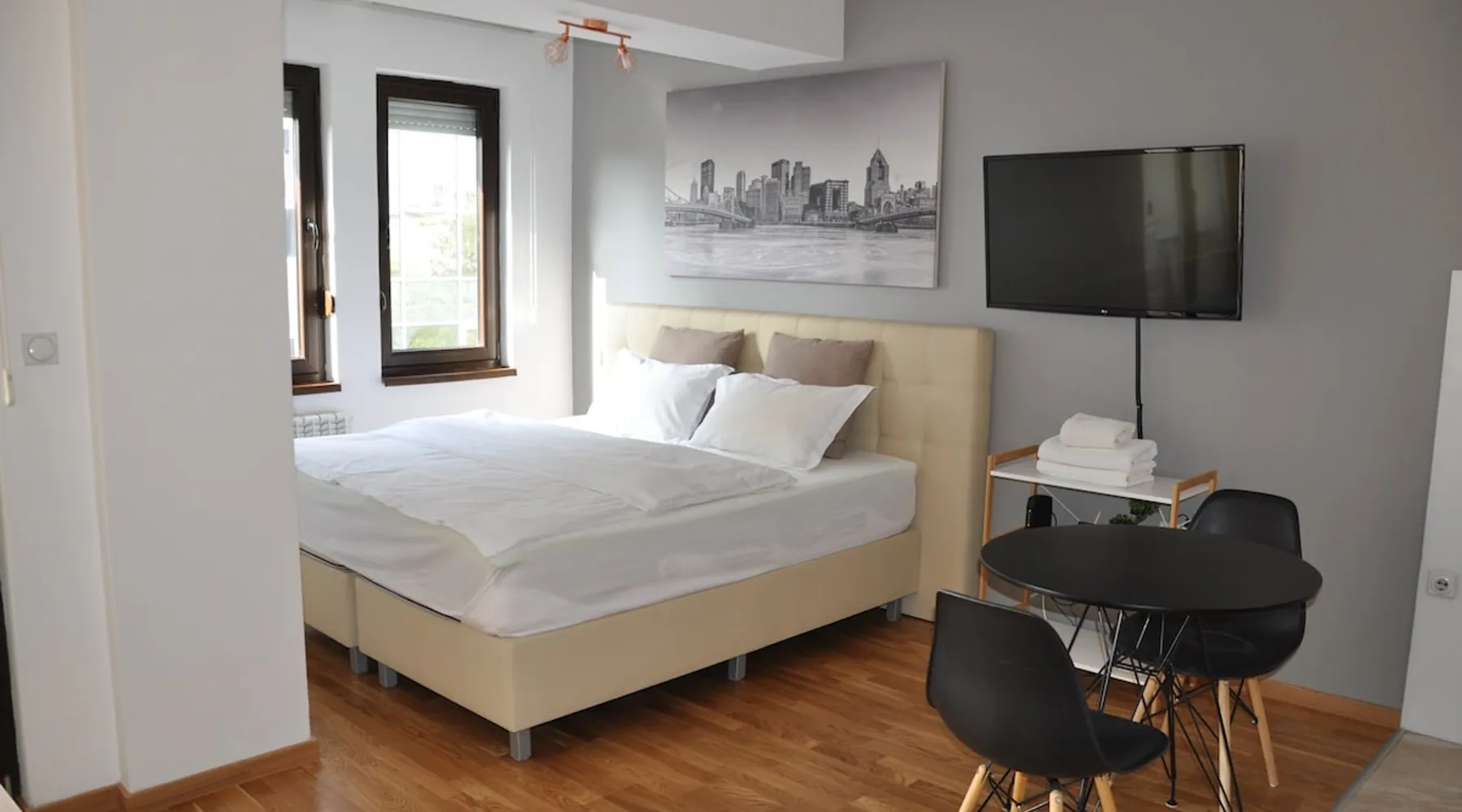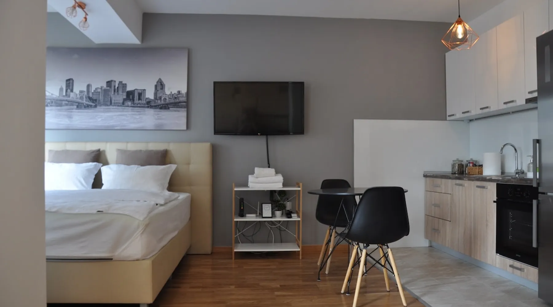 Enjoy the best from this centrally located, stylish and wonderful studio flat in the heart of Skopje. Freshly renovated and carefully equipped for every guest to feel like home. Great restaurants, cafes and bars a few doors down. The space Well organised studio with everything you need for a short as well as longer stay. Warm and stylish place to enjoy while exploring Skopje. The building is in a very secure neighborhood, with a police station nearby. You have in walking distance a lot of nice restaurants, bars, supermarkets and shops.