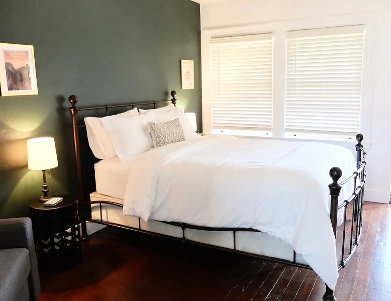 Enjoy a private vintage hotel room located right off of the historic downtown strip of our rustic gold rush town, Mariposa. Steps away from the best restaurants and charming shops, yet only 1 hour’s drive to the incredible peaks and domes of Yosemite Valley, this is the perfect getaway for history buffs and explorers (who enjoy a hot shower, comfortable bed, and Netflix!) The room was recently updated but still has so many original vintage charms from when it was built in 1938! The space This apartment is a single room with a Queen sized bed, a microwave, toaster, and coffee pot, and a bathroom with the charming original 1930’s touches like the newly restored hardwood floors, Art Deco style doorknob, speakeasy peek window at the front door, and the original bathroom sink with separate hot and cold water faucets! We updated the tile in the bathroom (floors and shower) but tried to keep the historic vibes! This room has a double locking doors connecting it to our other apartment, room 8, so both units can be rented together if desired! 🐾 Room is pet friendly with our pet fee and agreement to the following rules: -Pets will not be left unattended in the apartment unless secured in a crate. -Pets will not be allowed on the furniture. Thank you for your cooperation and understanding! Other things to note 🐾 Pet Policy: pets are permitted with our pet fee. Make sure your pet is accounted for in your booking details to have the fee automatically added to your total. 🚫We request that pets are not allowed on the furniture, or on our linens/towels. 🚫Pets are not to be left unattended in the unit unless they have a crate to stay in. 🅿️ Parking: Our parking lot is very tight, and first come first serve. There is also free street parking nearby if our lot is full or that is more comfortable to you.