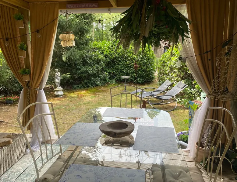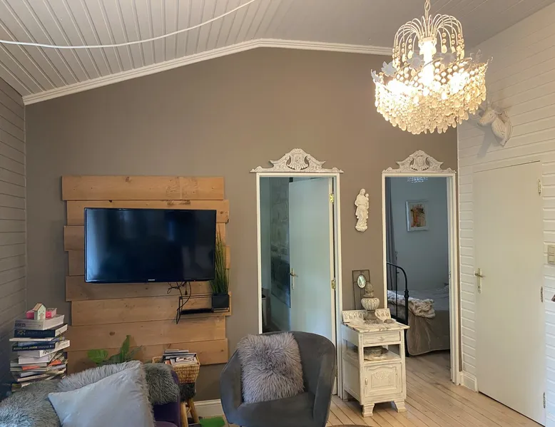 It is a spacious chalet with a cozy lighting. It has 2 spacious bedrooms and a spacious bathroom with shower and bidet. A well appointed kitchen. The garden is beautiful and cozy. There are several terraces with sun seats to enjoy the sun. Offers opportunities for hiking and biking. Lots of tourist sights in the immediate vicinity. The brochures are available for access to our chalet or upon request. If you want to relax, you can definitely do that with us. The space A chalet of 60m2 with 2 hours. Cozy and comfortably furnished. Satellite TV, a good book reading or playing a board game then you are in the ideal place. Guest access The entire chalet and garden are available to guests. Other things to note The necessary explanation will be given to you upon your arrival.