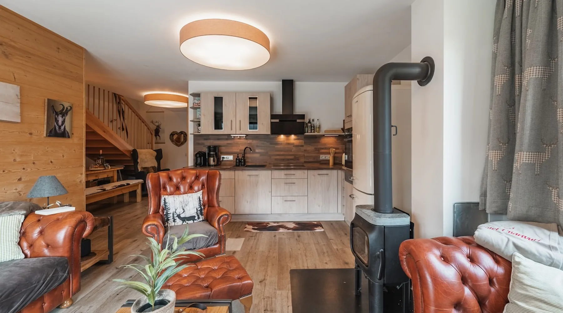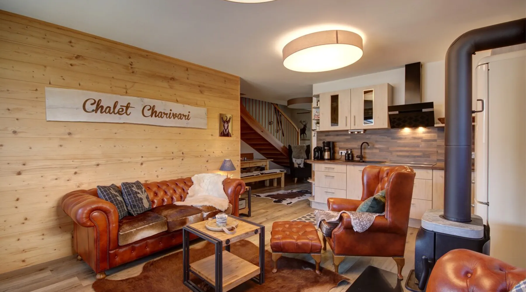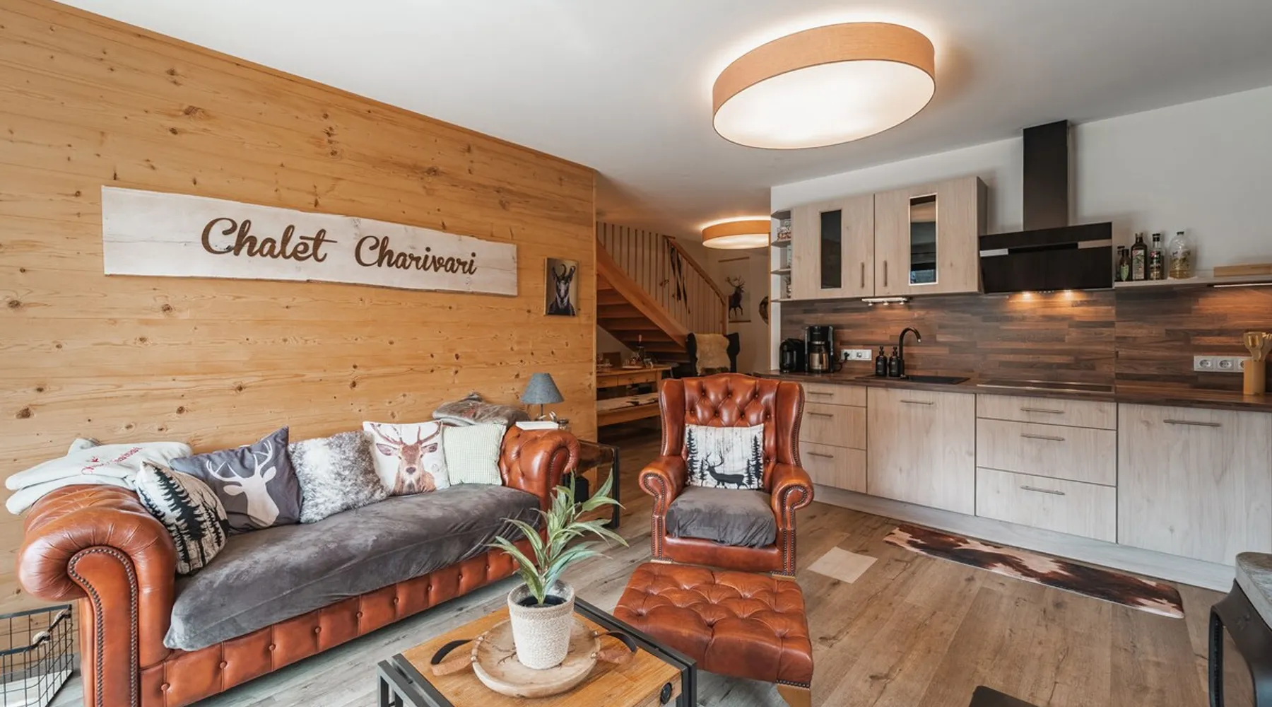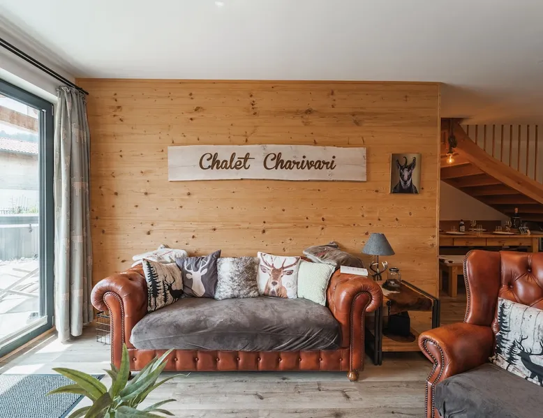 Chalet Charivari can accommodate up to 6 guests, has 3 bedrooms and 3 bathrooms. The fenced garden and terrace offer beautiful mountain views. Amenities include hot tub, sauna, fully equipped kitchen, wood-burning stove, Wi-Fi and TV. There is also a terrace with lounge furniture, sunbeds and barbecue, 2 balconies and a private carport parking space. Flexible check-in and check-out. A luxurious getaway for an unforgettable stay.