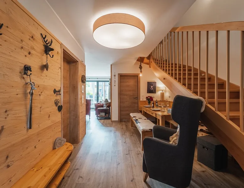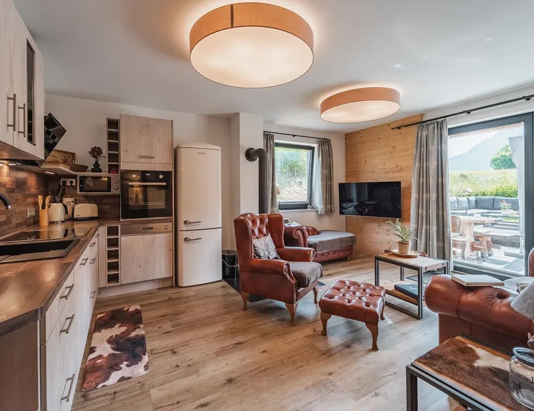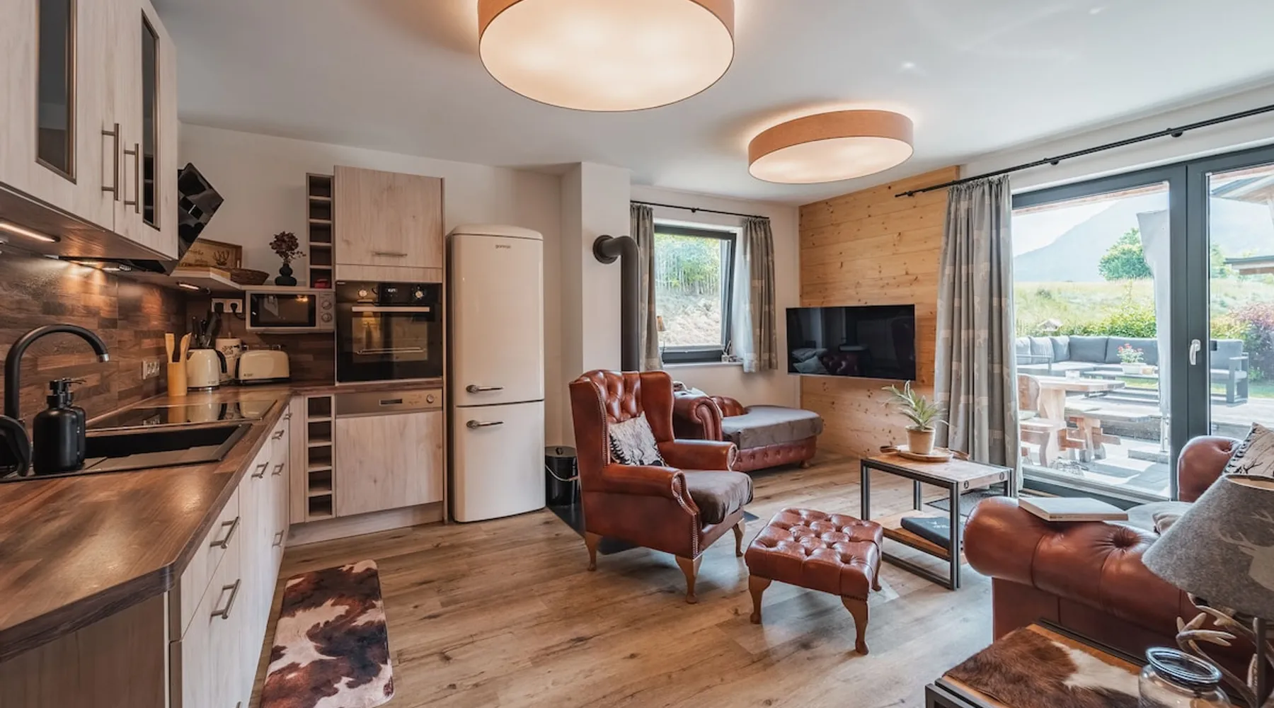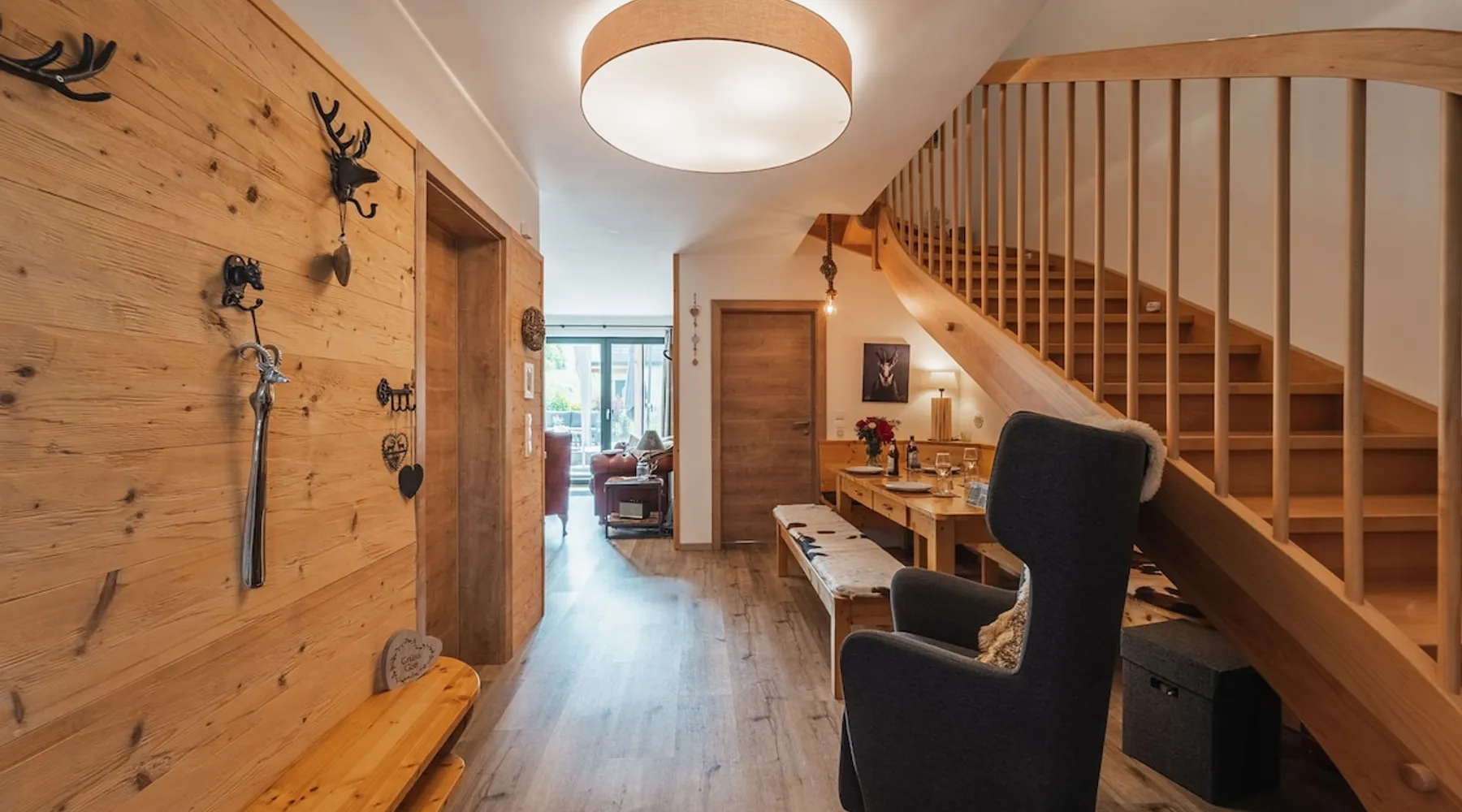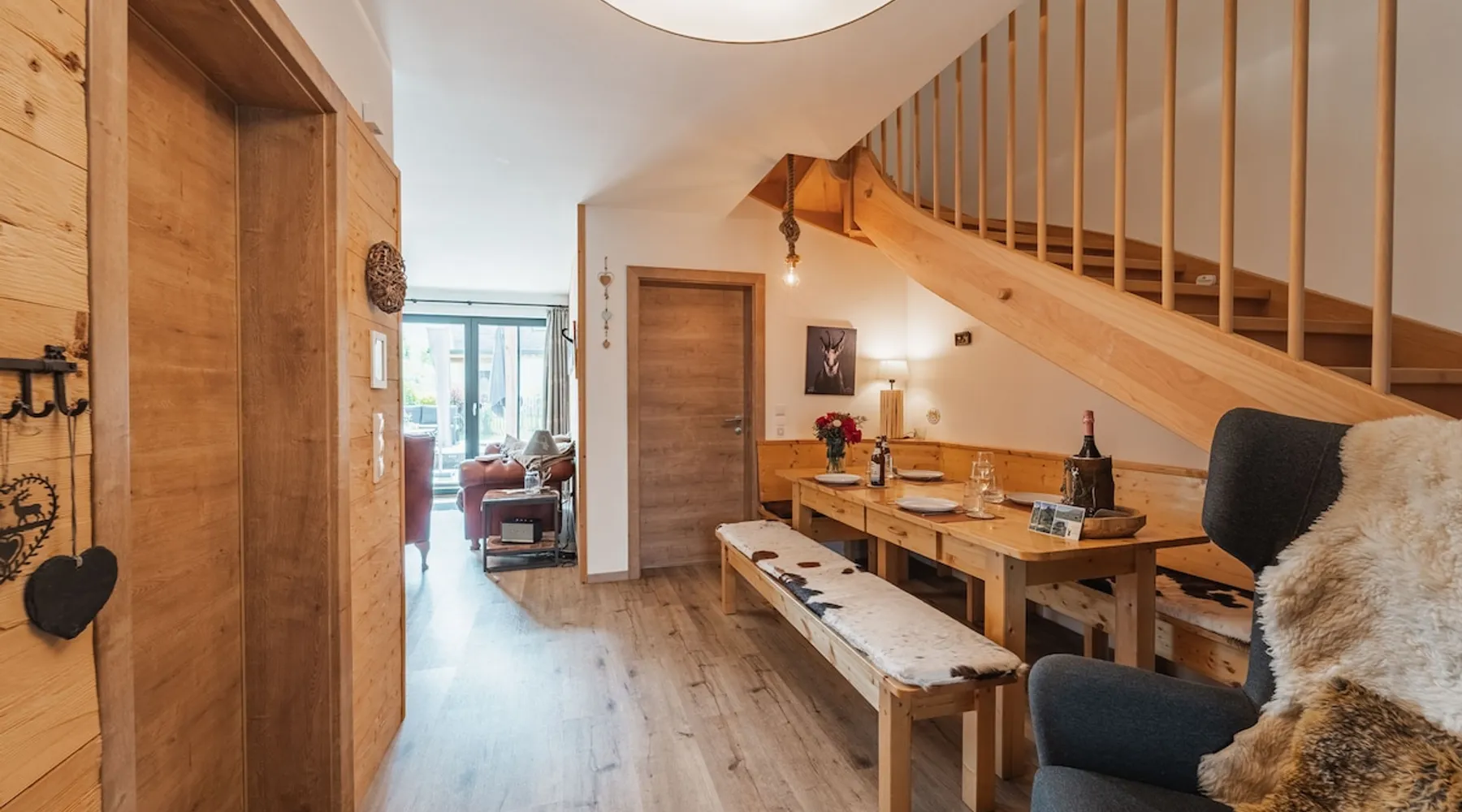 Chalet Charivari can accommodate up to 6 guests, has 3 bedrooms and 3 bathrooms. The fenced garden and terrace offer beautiful mountain views. Amenities include hot tub, sauna, fully equipped kitchen, wood-burning stove, Wi-Fi and TV. There is also a terrace with lounge furniture, sunbeds and barbecue, 2 balconies and a private carport parking space. Flexible check-in and check-out. A luxurious getaway for an unforgettable stay.