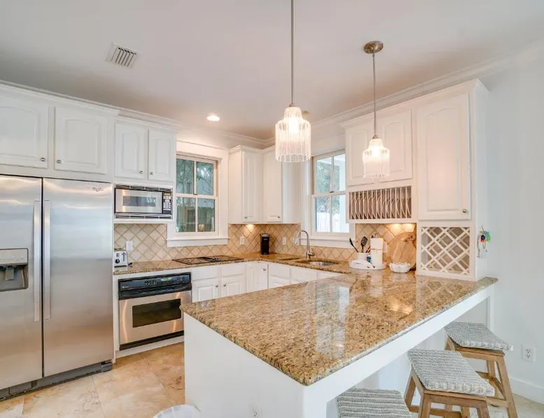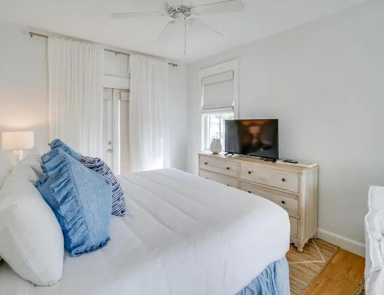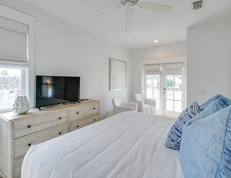 Beachfront Living: 30A Beach House - Stillwater Cottage by Panhandle Getaways in Seacrest Beach offers a private beach area, swimming pool with a view, sun terrace, and lush garden. Guests enjoy free WiFi throughout the property. Comfortable Accommodations: The villa features two bedrooms and two bathrooms, air-conditioning, a fully equipped kitchen, and a washing machine. Additional amenities include a balcony, terrace, and outdoor seating area. Local Attractions: Rosemary Beach is just a few steps away, while Northwest Florida Beaches International Airport is 21 mi from the property. Nearby attractions include Russell-Fields Pier and Pier Park, both 11 mi away. Guest Services: The property provides free on-site private parking, bicycle parking, and bike hire. Activities available include golfing, film nights, and cycling. Highly rated by guests. In the well-equipped kitchen, guests will find a stovetop, a refrigerator, a dishwasher and kitchenware. The air-conditioned villa offers a flat-screen TV with cable channels, a washing machine, a private entrance, a coffee machine as well as garden views. The unit has 4 beds.