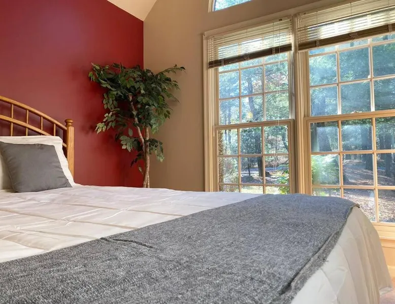 Spacious Accommodations: NEW Contemporary Chalet in Lake Harmony offers five bedrooms and three bathrooms. The chalet features a private entrance, ensuring privacy for all guests. Modern Amenities: Guests enjoy air-conditioning, a fully equipped kitchen, a cozy fireplace, and a washing machine. Additional amenities include a work desk, TV, and a hairdryer. Convenient Location: Located 39 mi from Wilkes-Barre/Scranton International Airport, the chalet is close to winter sports. Nearby attractions include Jack Frost Mountain Resort (4.3 mi), Pocono Raceway (9.9 mi), Kalahari Waterpark (19 mi), and Great Wolf Lodge Pocono Mountains (21 mi). This chalet provides a fireplace. The chalet's kitchen is available for cooking and storing food. The air-conditioned chalet offers a flat-screen TV, a washing machine, a private entrance and tumble dryer. The unit offers 7 beds.