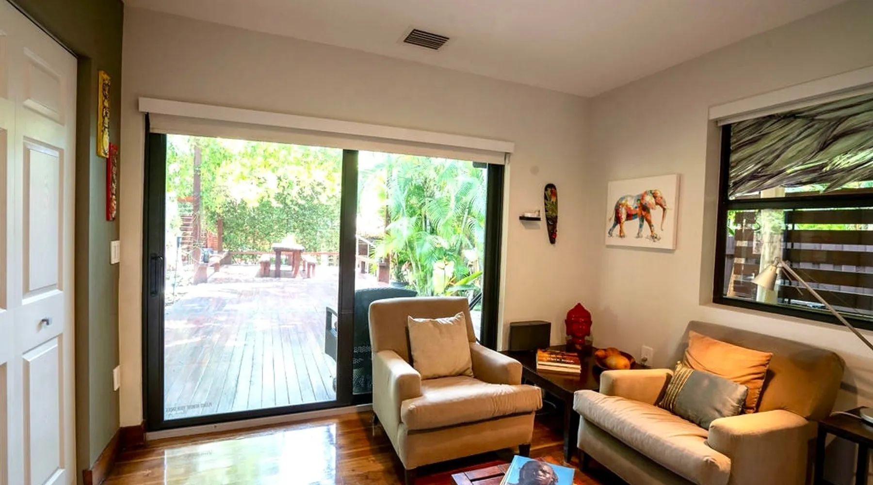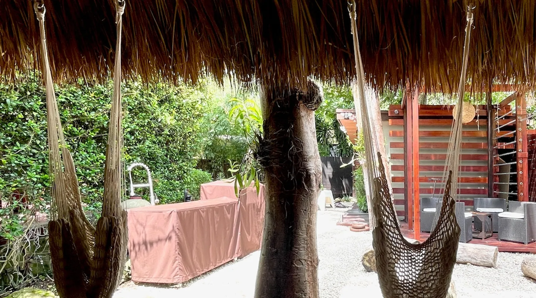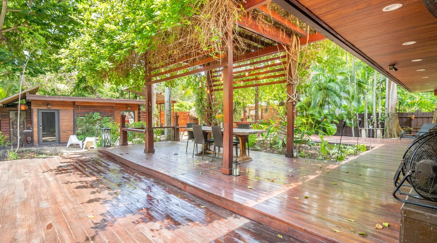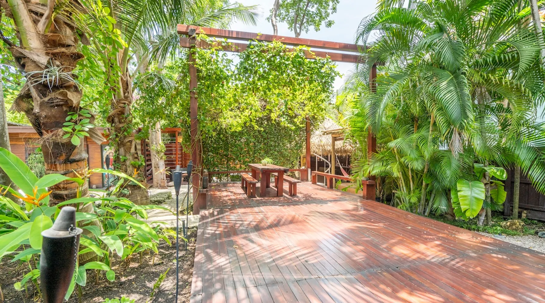 Experience natural luxury at this boutique cottage in the heart of Coconut Grove — a private tropical retreat surrounded by lush palms and vibrant gardens. Walk to the Marina, cafés, bayfront parks & CocoWalk. Perfect for couples or solo travelers, it offers a full kitchen, washer/dryer, free gated parking & a spacious deck with string lights. A top-rated, stand-alone escape near UM — your serene, central Miami hideaway for relaxation & connection. The space 🌿 Escape to Tranquility in Coconut Grove Wake up to the sound of peacocks in this tropical oasis just 15 mins from MIA. Enjoy a cozy queen bed, dimmable lights, blackout curtains, and self-check-in. Double doors open to a private deck with lush gardens, coconut trees, banana trees, and ginger palms. Lounge under a Tikki hut, relax in hammocks, or gather around the bonfire. Prepare Costa Rican coffee in a kitchen with Nespresso, French, or Cuban press. Includes beach towels and chairs for your beach escape. Crafted with love, this unique space blends Balinese and Costa Rican vibes. Guest access Guest Access Highlights: Optimize Your Stay with These Features ★ Shared Property Grounds: Enjoy the serene grounds with our Airbnb Tiny Home guest and your SuperHost, previously exclusive for weddings and events. ★ Prime Location: Close to the University of Miami, Miami Airport, and top attractions like upscale Coconut Grove and Coral Gables. ★ Nature Immersion: Experience nature’s beauty on our lush green grounds. ★ Cozy Accommodations: Fully furnished home designed for relaxation and unwinding. ★ Expert Hosting: Onsite Superhost with over 10 years of hosting excellence. ★ Abundant Amenities: Fully stocked kitchen and bathroom, onsite washer and dryer, beach towels, chairs, umbrella, and yoga mats. ★ Nap Pergola: Relax in a cozy hammock with a cooling fan. ★ Spacious Deck: Lounge and gather on imported natural wood floors. ★ Fire Pit: Enjoy a charming fire pit surrounded by local coral for a mini-auditorium feel. ★ Outdoor Cooking: Custom-made Argentinian grill with outdoor sink for effortless cooking. ★ Private Tiki Hut: Unwind in style with a bar and hanging hammocks. ★ Secure Parking: Gated parking just outside your front door. ★ Multiple Hangout Spaces: Numerous options for dining, lounging, and relaxation. ★ Outdoor Workout Area: Stay active and energized in the fresh air. Other things to note Miami’s Tropical Paradise: Where Coconuts, Bananas, and Wildlife Flourish ★ Wild Peacocks: Be mesmerized by majestic wild peacocks roaming the neighborhood and visiting the property for daily feedings. ★ Meet Magic: An orphaned peacock lovingly nurtured on-site since he was a week old. Known for his friendly nature, Magic has become a beloved companion to many guests. ★ Charming Tiny House: Greet other guests staying in the very tiny house with an outdoor shower, located on the back left side of the property.