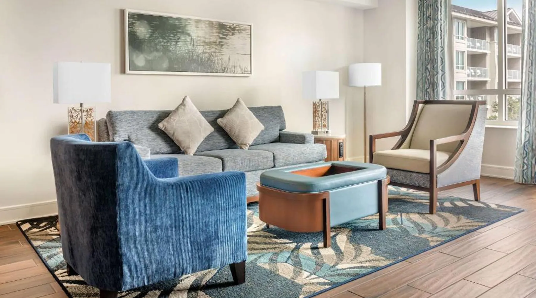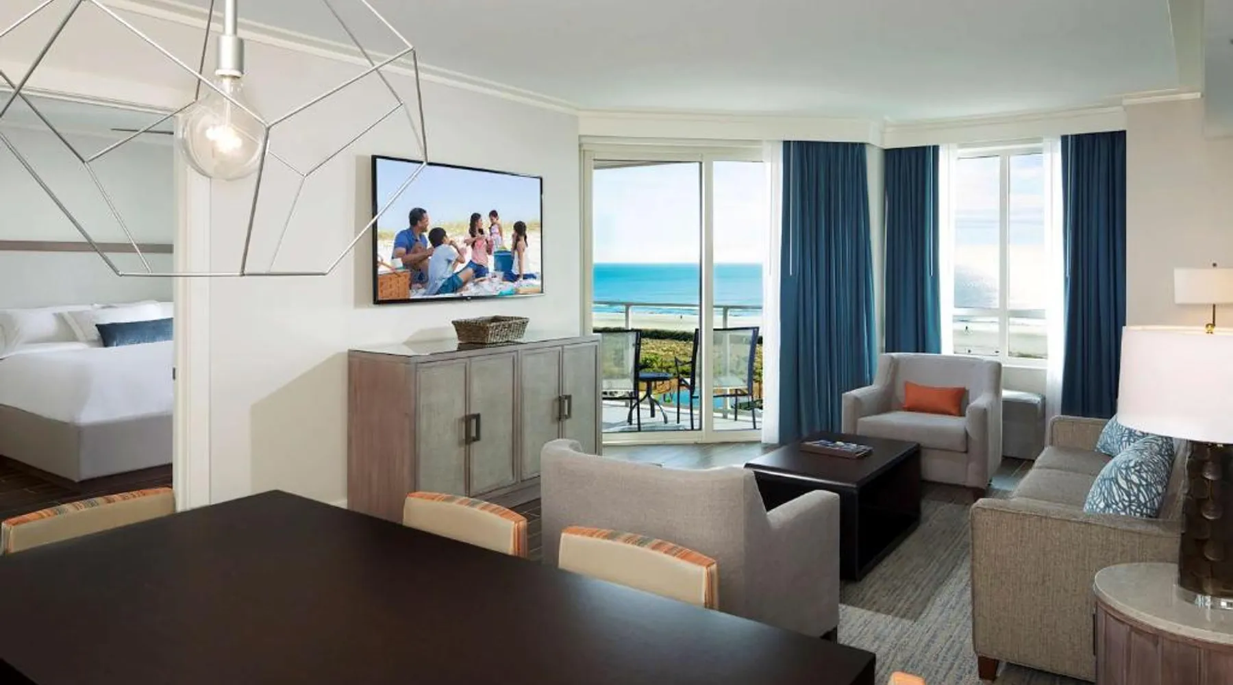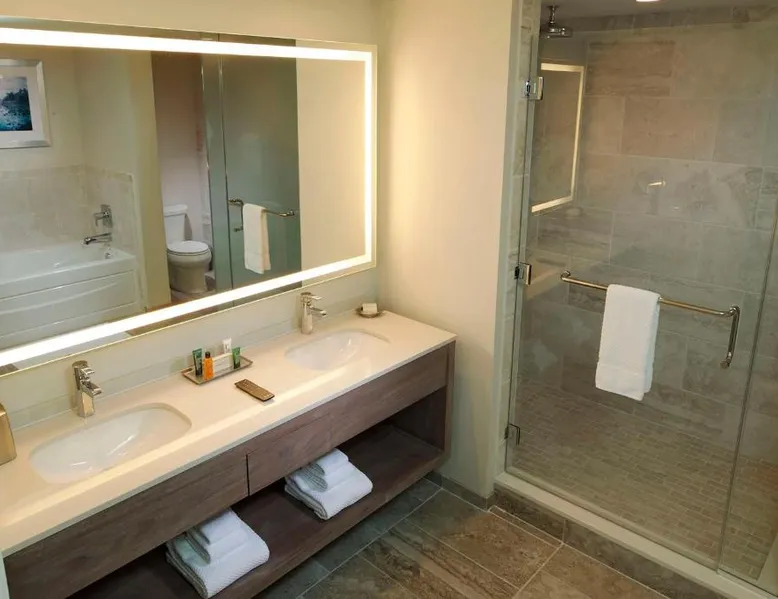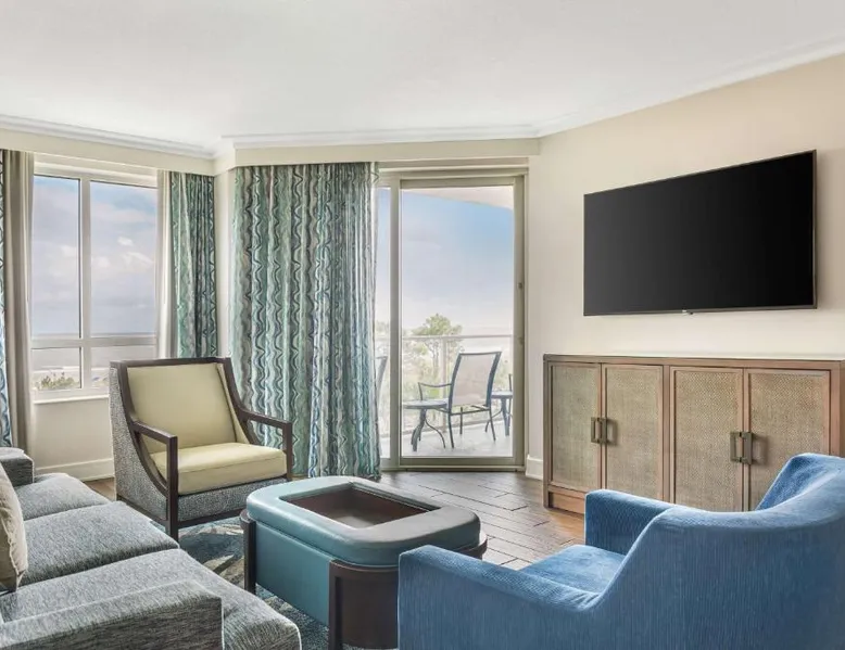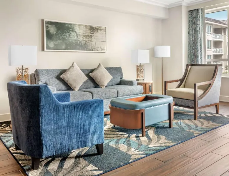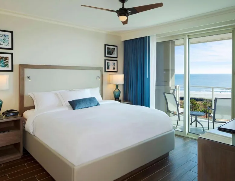 Beachfront Location: Hilton Grand Vacations Club Ocean Oak Resort Hilton Head in Hilton Head Island offers direct beachfront access with stunning sea views. Guests enjoy a sun terrace, lush gardens, and a year-round outdoor swimming pool. Comfortable Accommodations: Rooms feature balconies, kitchenettes, and private bathrooms. Amenities include air-conditioning, free toiletries, and modern conveniences such as a refrigerator and microwave. Family rooms and dining areas provide comfort for all guests. Dining and Leisure: The family-friendly restaurant serves American and seafood cuisines for lunch and dinner, complemented by a bar offering cocktails. Additional facilities include a fitness center, outdoor fireplace, and pool bar. Convenient Location: Located 8.1 mi from Hilton Head Airport, the resort is a few steps from Hilton Head Island Beach South. Nearby attractions include the Hilton Head Island Beach North and the Hilton Head Island Beach North. Guests appreciate the convenient location. This 2-bedroom suite includes a fully equipped kitchen, a living room with a sofa bed, and a washer and tumble dryer. The master bathroom includes a dual vanity and a separate shower and bath. A second full-size bathroom is also provided. This room sleeps 6 guests.