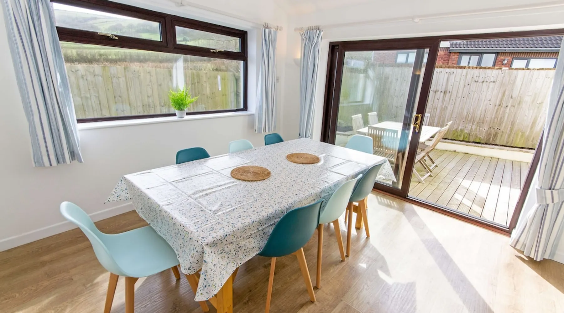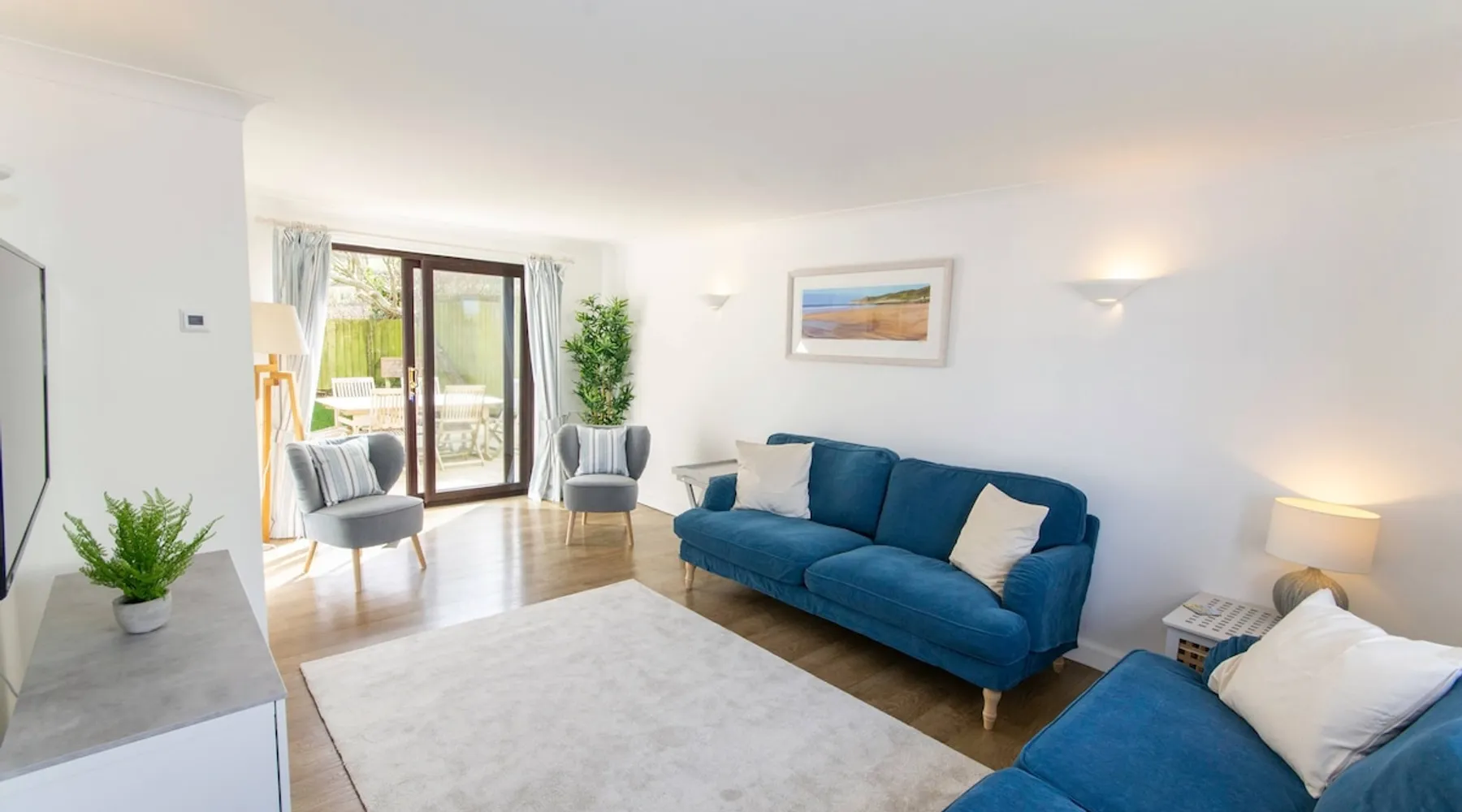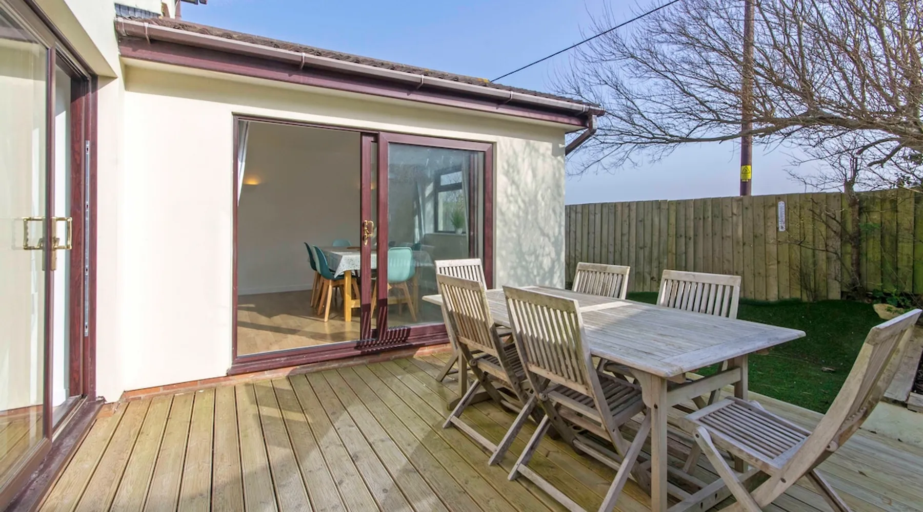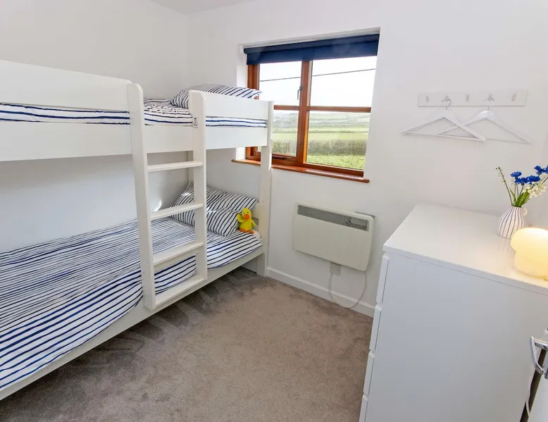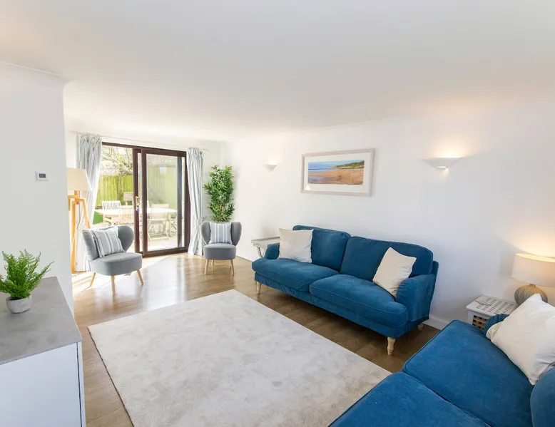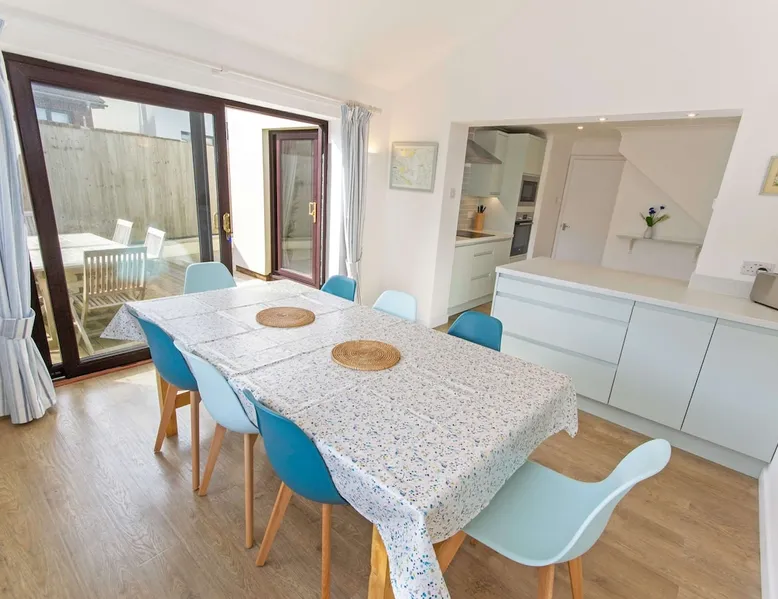 Rockpool offers a good standard of furnishing throughout, benefits from underfloor heating and is ideally positioned for a short walk to both Croyde Beach and to the thriving surf based village centre. 4 Bedrooms, one of which is En-suite provides plenty of room for the family. Externally, this property benefits from a terrace decking area to the rear, perfect for relaxing and enjoying a barbecue after a long day exploring the various attractions that North Devon has to offer. The space PROPERTY: Bright and airy lounge with laminate underfloor heating throughout, two beautiful rich blue sofas and occasional chairs with views out onto the front garden. Up lighters and wall mounted flat screen TV suitable for your Netflix/firestick. French doors onto the rear garden's decking. The kitchen has crisp clean newly installed modern pale green units and a white work surface. integrated hob, electric oven, dishwasher, fridge freezer, microwave oven, toaster, kettle as well as all the other essential kitchen utensils you would require. Dining area features a large dining table with seating for 8 that enjoys views through the large French doors out onto the rear decking. Downstairs bathroom with a W.C and washbasin. Hallway cupboard with washing machine and tumble dryer. 1ST FLOOR • Master bedroom- Double bed, views of the countryside towards Croyde beach with white bedside tables and an en-suite modern shower room with W.C, Double walk in shower and washbasin. • Bedroom two - Double bed, bedside tables, chest of drawers, full length mirror and hanging space. • Bedroom three - Bunk bed and chest of drawers. • Bedroom four - Twin beds with sea glimpses of Croyde and chest of drawers. The family bathroom comprises of a bath with shower over, pedestal washbasin and W.C. OUTSIDE SPACE Garden furniture and BBQ is provided for al fresco dining. Fully enclosed rear garden that wraps around the rear of the property comprising of a small rear terrace patio, outside shower, raised decking area and part garage storage with plenty of secure storage for surfboards, wetsuits or bikes. PROPERTY NOTES: • Driveway parking for 2 cars (1 large/medium and 1 small) INCLUDED: • Heating, Lighting and water • Bed linen (2 Doubles & 4 singles) • Bath Mats and Tea Towels • Bath Towel per guest (Max 8) • Wifi Internet BOOKING DETAILS: It is not possible to add extras when booking via an advertising channel like this one, therefore the costs of any extras will not be included within the price shown, these must be requested at the time of booking and paid for directly with Croyde Holidays Agency. By making a booking via this channel we will require some extra booking details from you, this will be requested via email at the time of booking in order for us to finalize your provisional booking request. HOLIDAY EXTRAS • One well behaved dog welcome at £40 (2 by strict prior arrangement only) (sorry, no puppies) • Late Departure (6pm) - £80 (short breaks departing on a Sunday)
