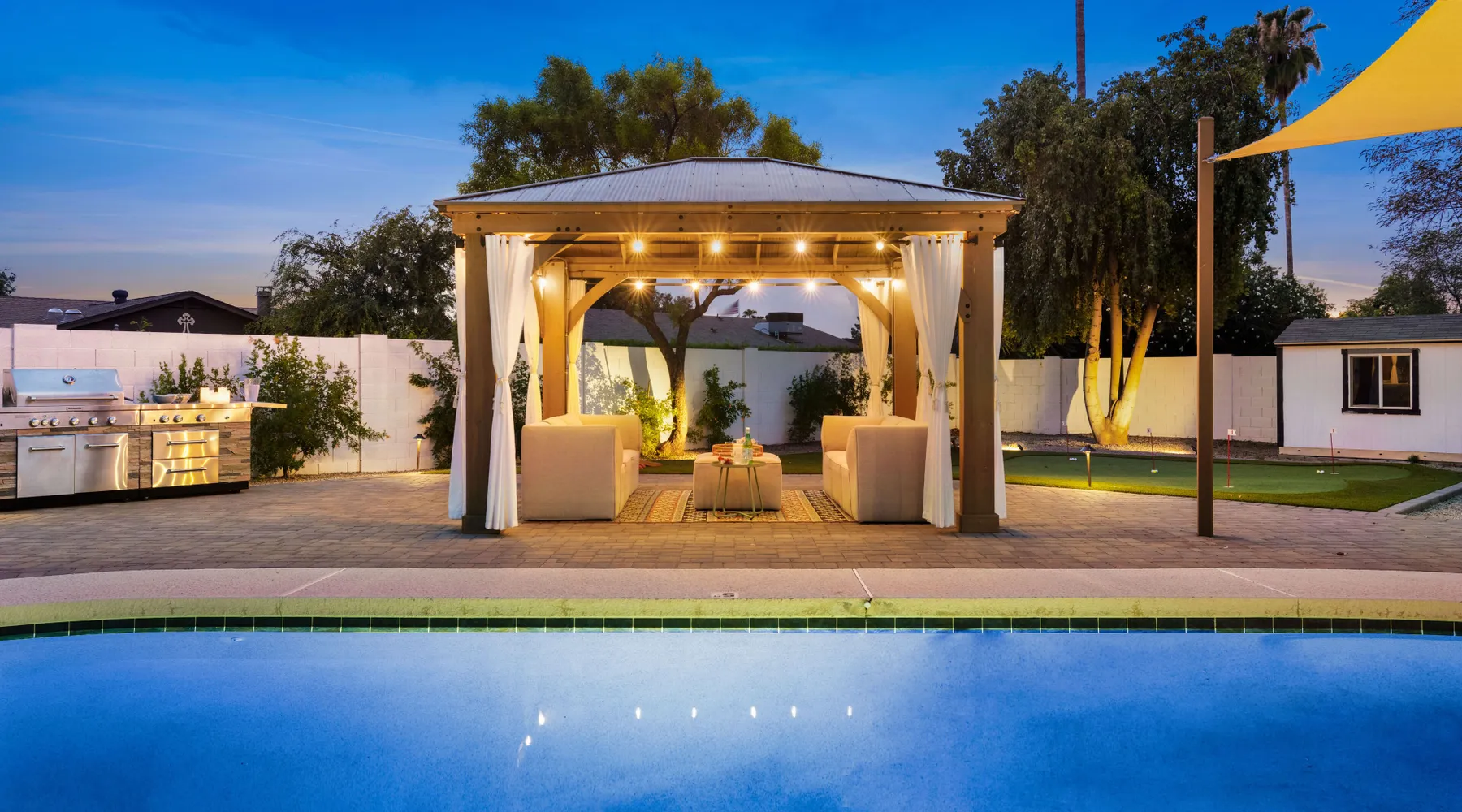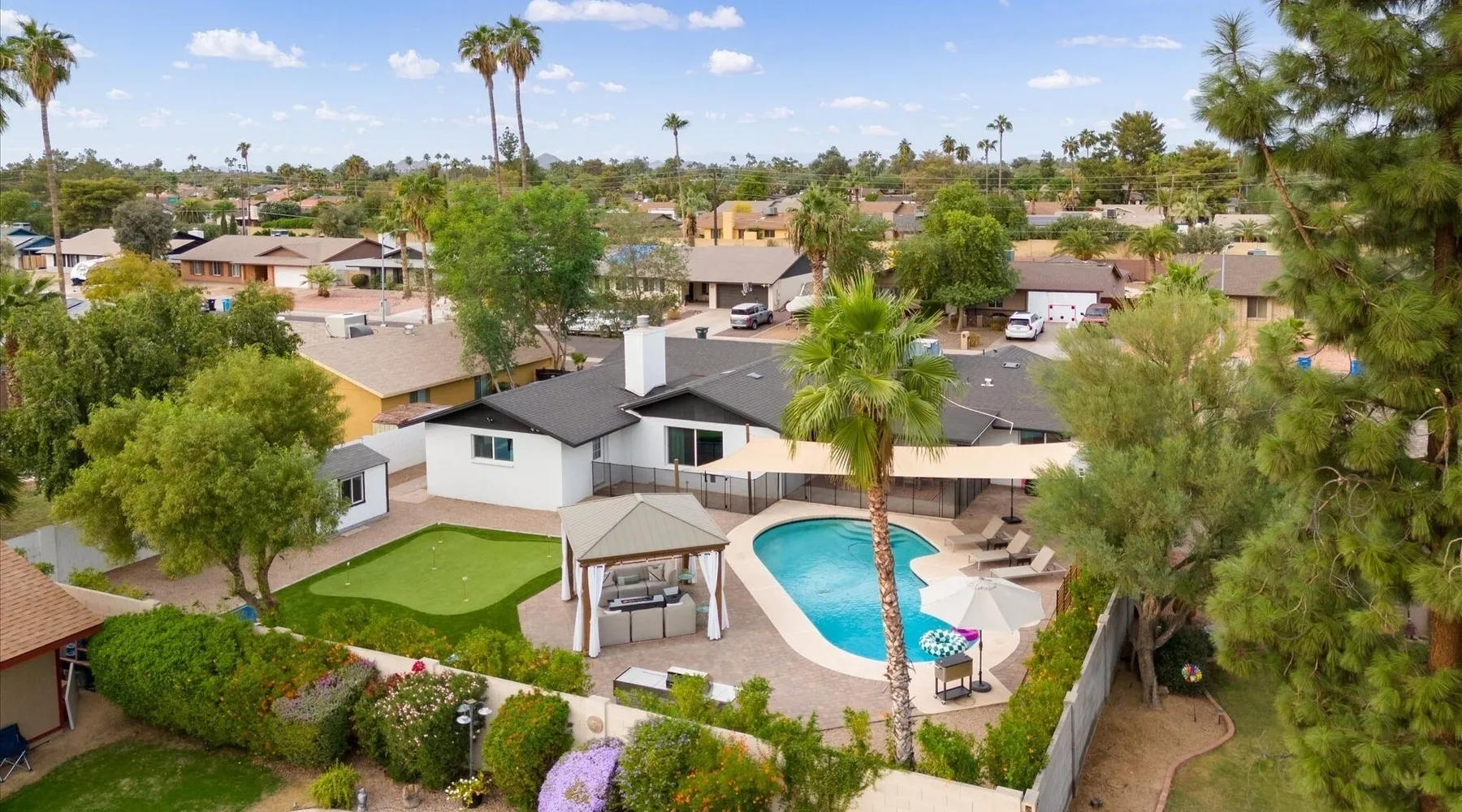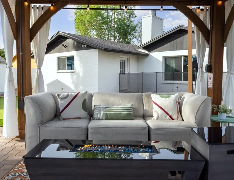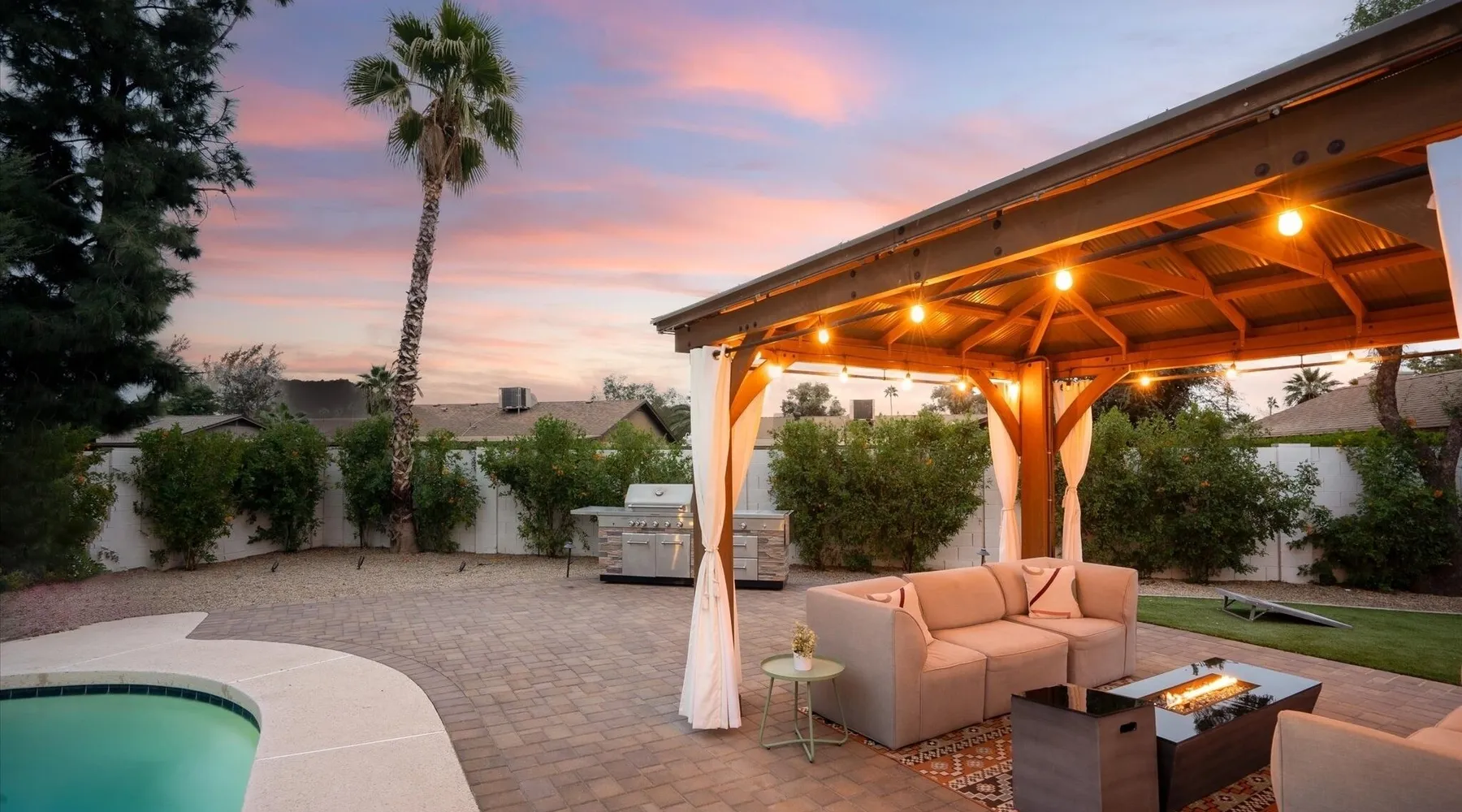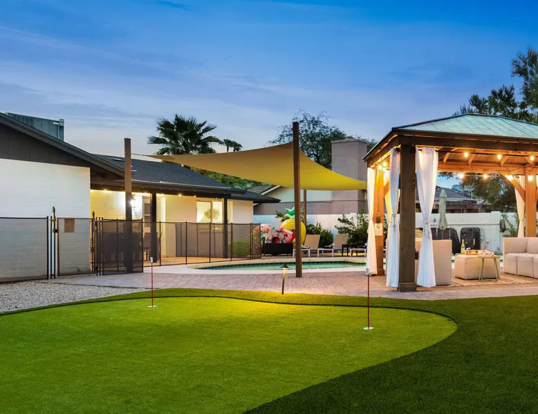 Casa Paradiso: Your Phoenix Oasis Awaits! Modern Comfort Meets Tranquility • Accommodates 10 guests • 5 Bedrooms (2 Master Suites) | 3 Bathrooms Outdoor Bliss • Sparkling Private Pool (Heating: $65/night, Oct-April) • Gazebo w/ Misters & Lighting • Putting Green & Cornhole Fun • 9-Burner BBQ & Firepit (propane provided) • Alfresco Dining under Arizona Skies Fully Equipped Inside • Chef’s Kitchen & Coffee Bar (Nespresso, Tea, Sugar) • Stocked Bar for Your Enjoyment (no alcohol) • Spacious Living Room for Relaxation Prime Location • Close to Dining, Shops, Golf, & Nature • Easy Access to Entertainment & Attractions What to Expect • High-Speed WiFi & Smart Entry System • Child Safety Pool Fence • Laundry Room & Free Parking House Rules Highlights • No parties or smoking ($500 fine applies) • Quiet hours: 10 PM - 8 AM • Registered guests only (max 10) Book Your Slice of Paradise Today! Relax, unwind, and create unforgettable memories at Casa Paradiso!