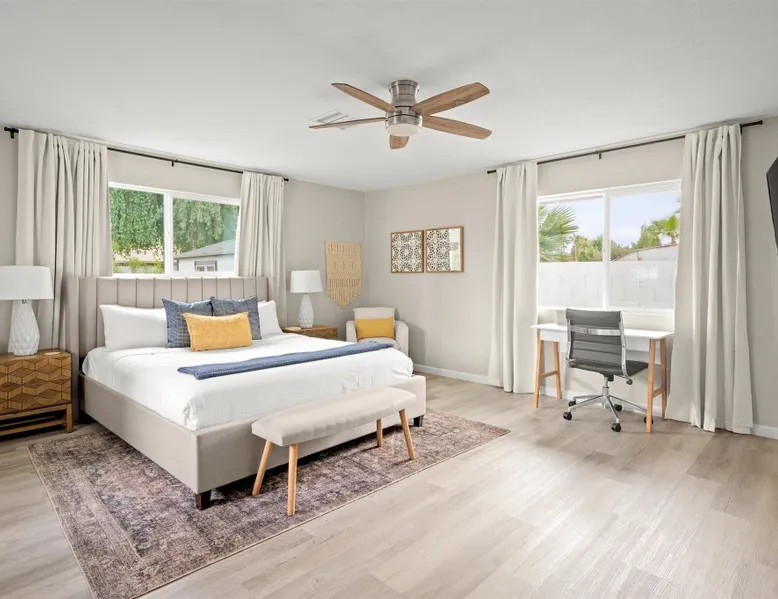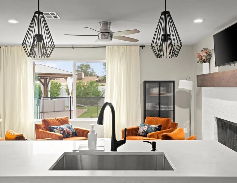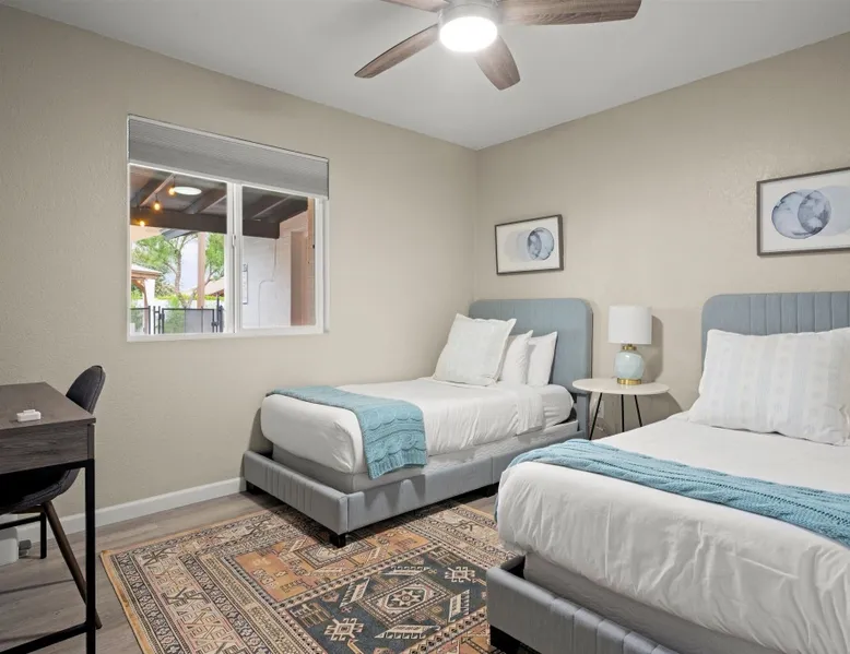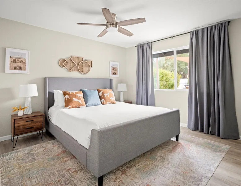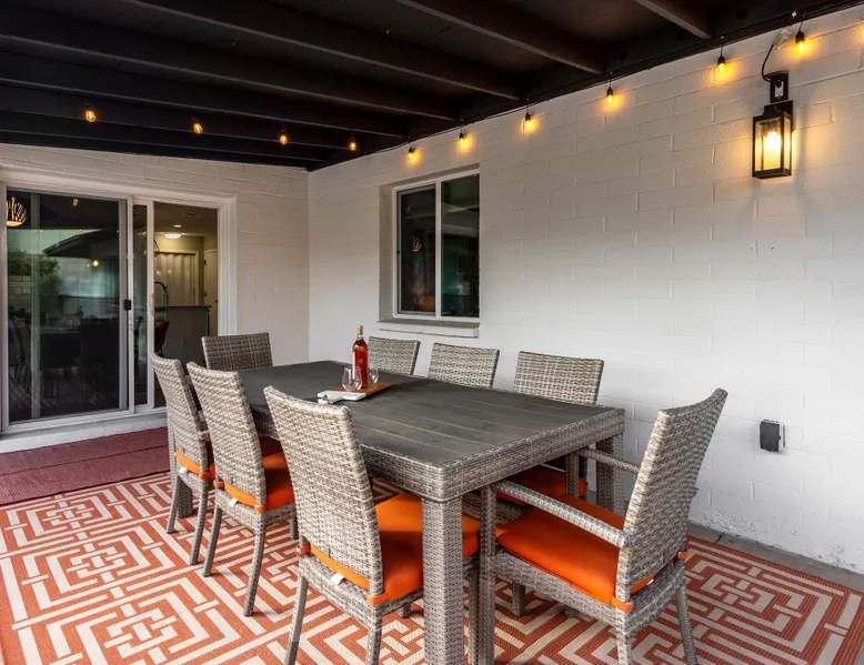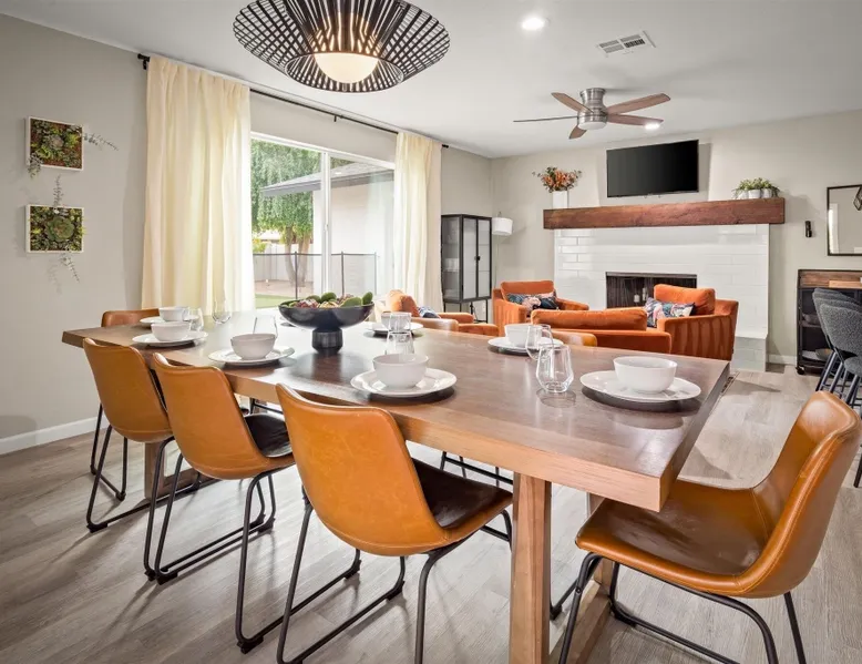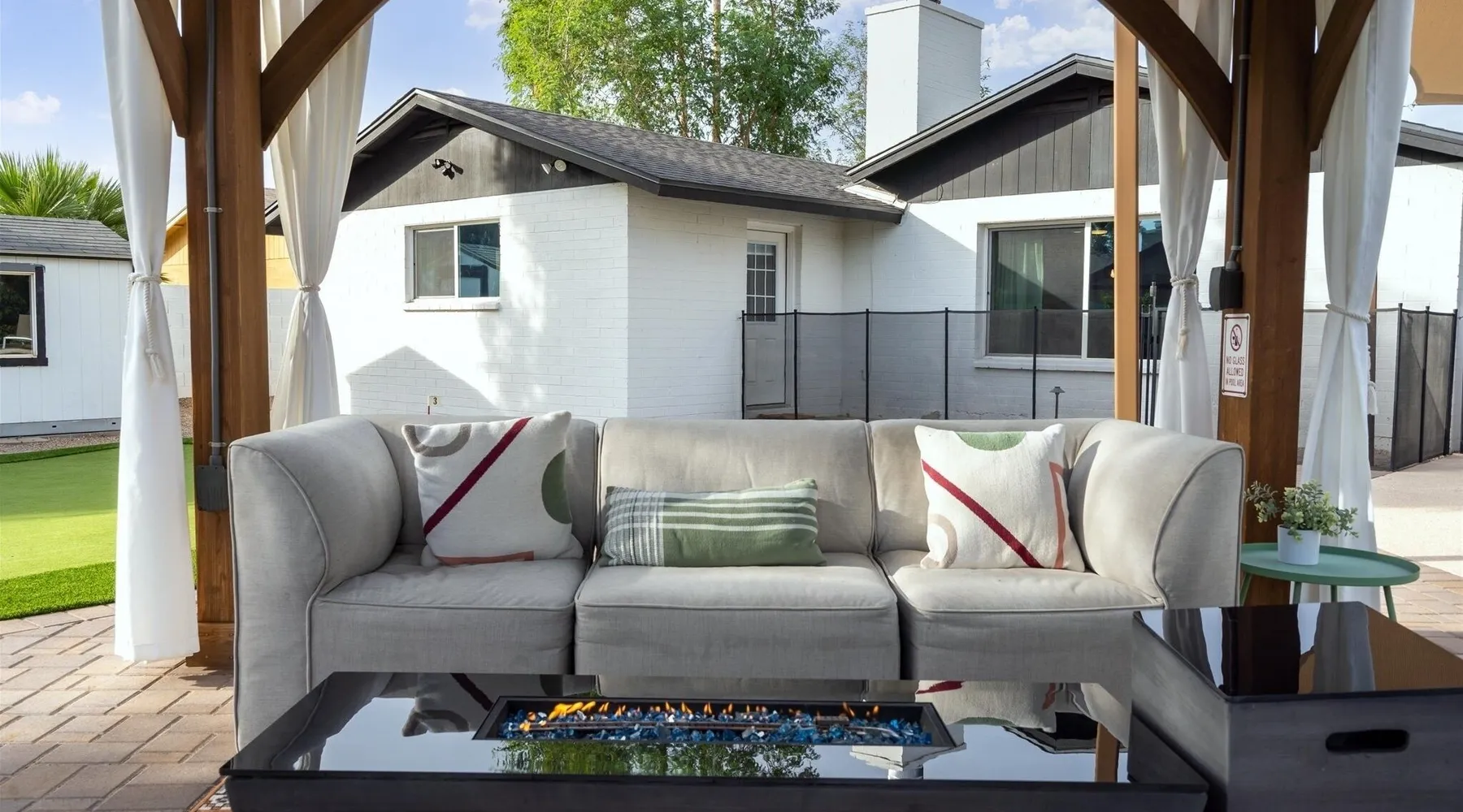 Casa Paradiso: Your Phoenix Oasis Awaits! Modern Comfort Meets Tranquility • Accommodates 10 guests • 5 Bedrooms (2 Master Suites) | 3 Bathrooms Outdoor Bliss • Sparkling Private Pool (Heating: $65/night, Oct-April) • Gazebo w/ Misters & Lighting • Putting Green & Cornhole Fun • 9-Burner BBQ & Firepit (propane provided) • Alfresco Dining under Arizona Skies Fully Equipped Inside • Chef’s Kitchen & Coffee Bar (Nespresso, Tea, Sugar) • Stocked Bar for Your Enjoyment (no alcohol) • Spacious Living Room for Relaxation Prime Location • Close to Dining, Shops, Golf, & Nature • Easy Access to Entertainment & Attractions What to Expect • High-Speed WiFi & Smart Entry System • Child Safety Pool Fence • Laundry Room & Free Parking House Rules Highlights • No parties or smoking ($500 fine applies) • Quiet hours: 10 PM - 8 AM • Registered guests only (max 10) Book Your Slice of Paradise Today! Relax, unwind, and create unforgettable memories at Casa Paradiso!