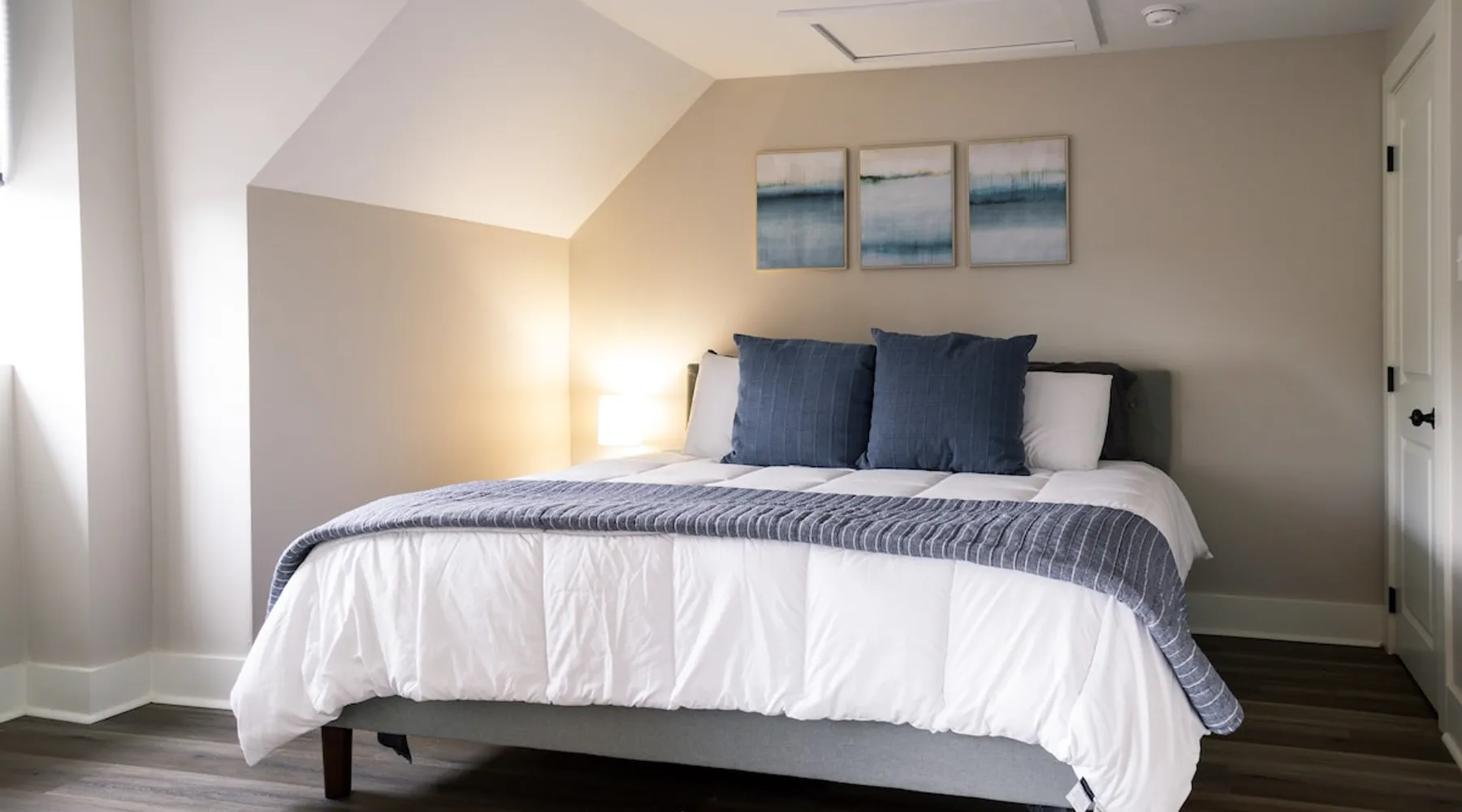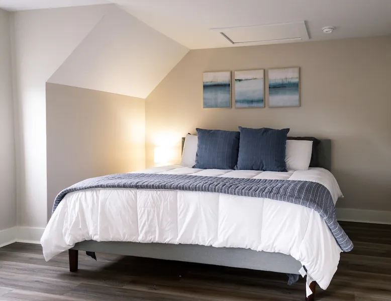 The Historical Hideaway is compiled of (4) newly remodeled suites in the wildly popular downtown neighborhood of 4th & Gill. Each suite is uniquely setup for the ideal overnight guest experience inspired by different landmarks that make Knoxville so special. The Hideaway is just minutes from downtown nightlife, breweries, restaurants, and venues making it ideal for smaller groups of 2-4 who want to be close to the Downtown, the Old City, and University of TN. Welcome to Knoxville! The space *Noise Advisory* Please note that this property is located near an active event space, train tracks, and interstate. While many guests enjoy peaceful stays, occasional noise may occur, especially on weekends. We recommend this property for guests who are comfortable with the possibility of external noise during their stay. Sound machines are provided, but lighter sleepers should consider bringing ear plugs. PLEASE BE ADVISED • There is a set of stairs to climb to the second floor where the listing is. This staircase does have railing. Unit B is a 2nd floor 1-bedroom apartment with a King Bed, fully equipped kitchen, bathroom, and upstairs porch. Artwork and decor inspired by downtown Knoxville and the TN River that flows through it! Amenities include: ✧ Fully equipped Kitchen ✧ Hi-Speed Internet ✧ Smart TV ✧ Air Mattress ✧ Access to Washer/Dryer in common laundry room Guest access Guests unit entry will be in the tan building up the front stairs. They will have keyless entry access to the unit, as well as free parking for 1 Vehicle in the shared parking lot. Free Street parking is also available. Other things to note IMPORTANT NOTICE: Do not try to enter the blue building beside the unit. Guests will be provided a link to our Guest Portal to complete within the first 48 hours after booking to verify booking details. For any questions regarding the Guest Portal feel free to send us a message. ALL RESERVATION CHANGES OR CANCELLATIONS are best completed within the FIRST 48 HOURS after confirmed booking. All guests please take into consideration our strict cancellation policy. If there is a chance you would need to cancel your reservation it may benefit you to purchase travel insurance to insure you receive your desires reimbursement. Halo Hospitality is NOT responsible for insuring our guests.