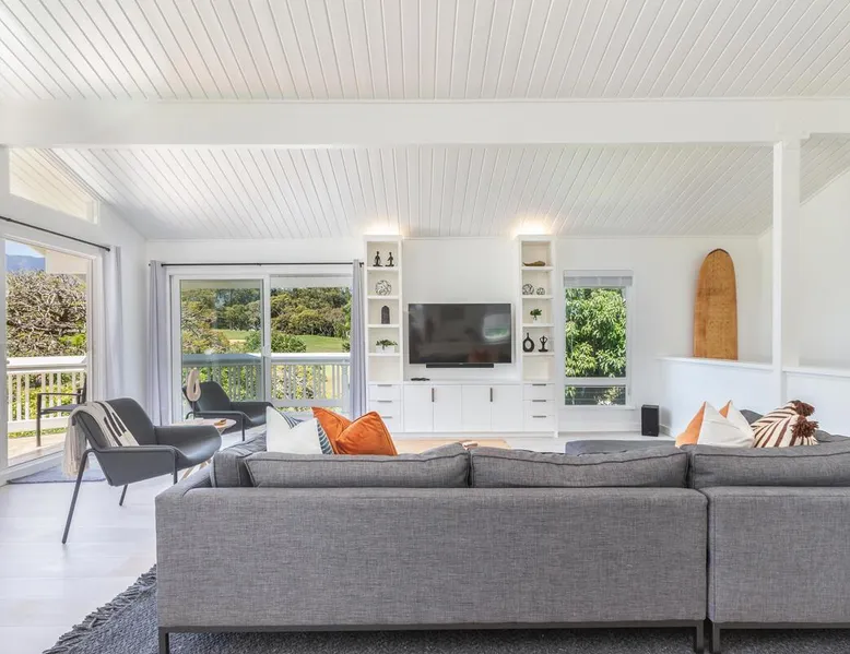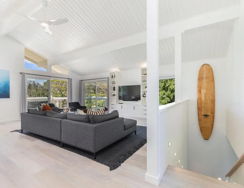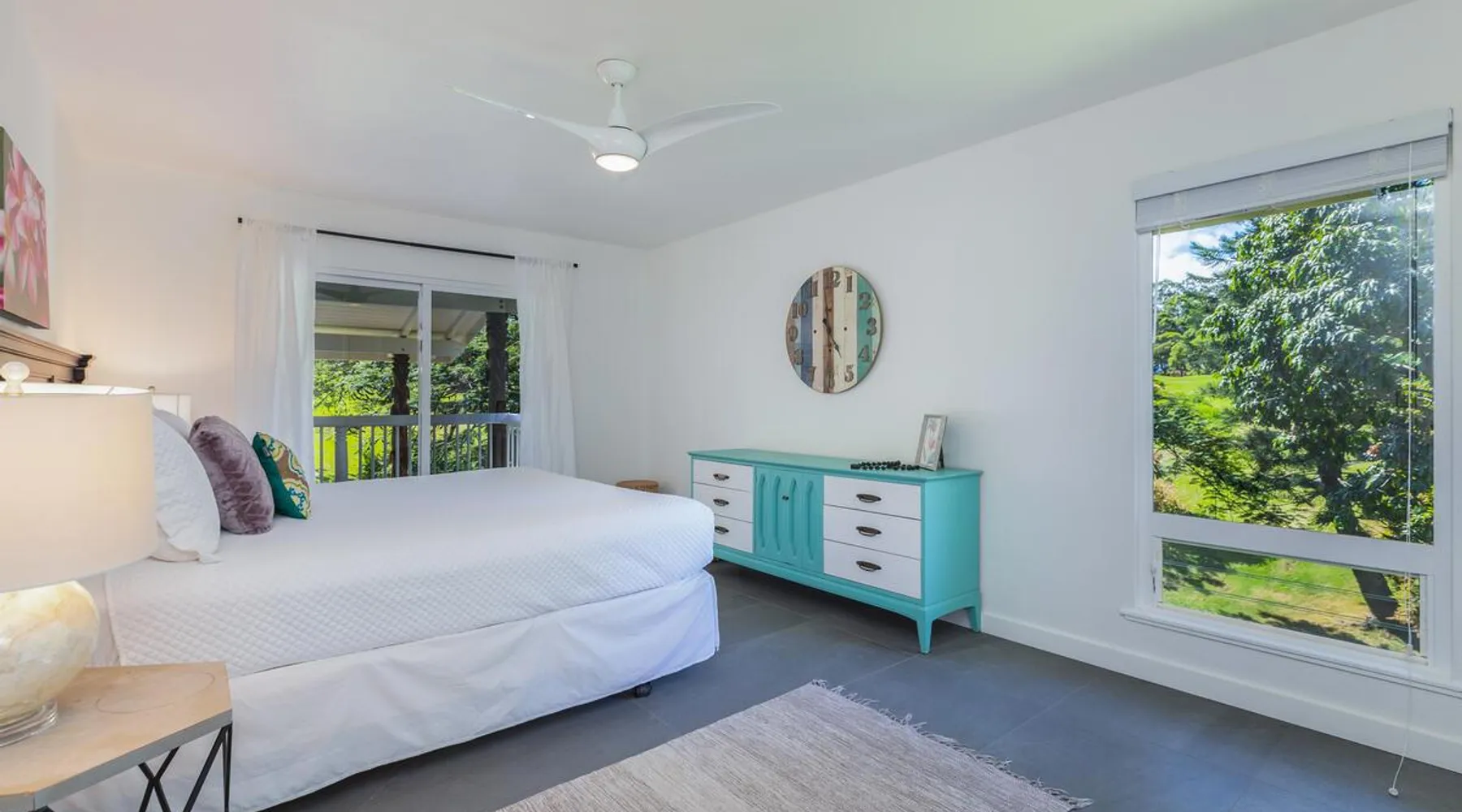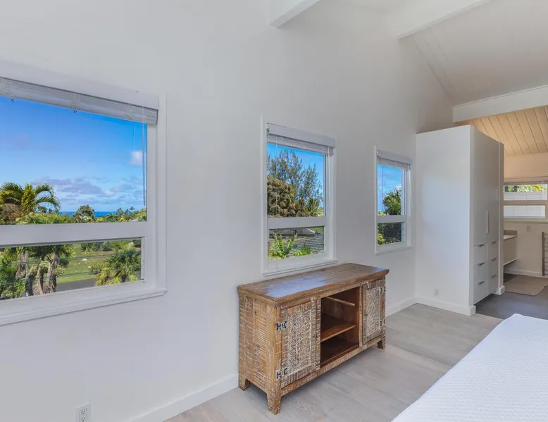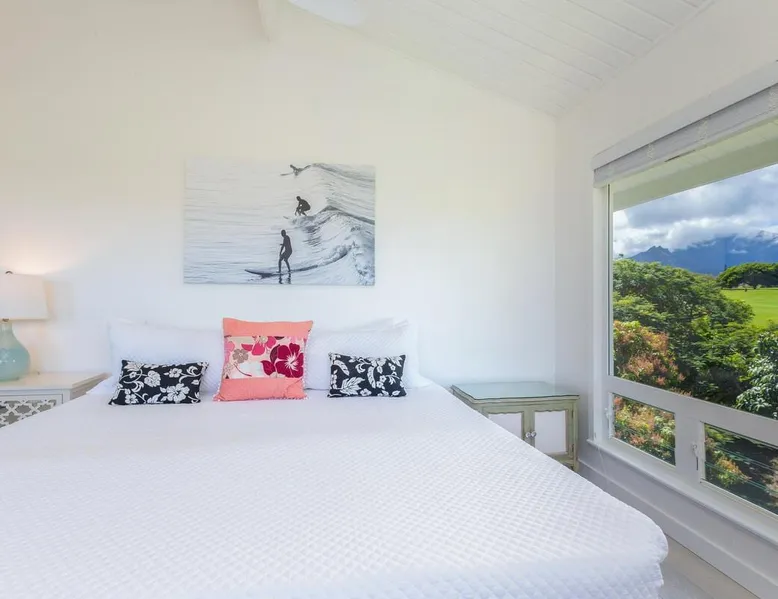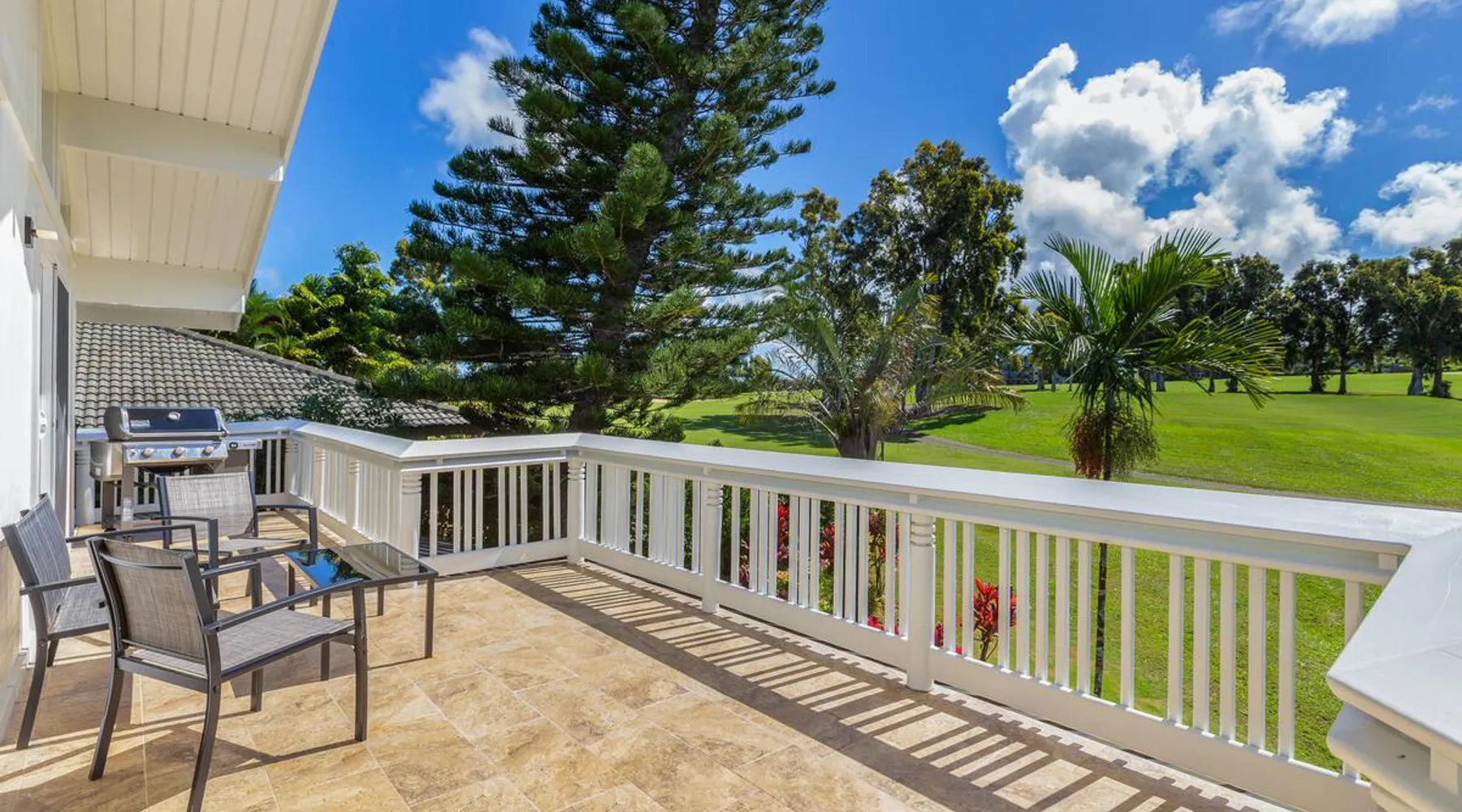 Hawaii Life Rentals Presents Hale Mauna Nui Beautiful beachy modern 4 bedroom 2.5 bath home on the Makai Golf course. The space This beautifully appointed four-bedroom home is tucked off a sleepy street in the resort community of Princeville. Featuring expansive outdoor living space and a private yard on an oversized lot, this is the perfect place to unwind after spending the day exploring this extraordinary island. Situated on the 12th hole of the Makai golf course, enjoy panoramic mountain and waterfall views from the comfort of your lanai. Walking distance to Sealodge beach, Hideaways, and Turtle Cove! Once inside, this home offers plenty of space for a large family or traveling couples. The kitchen has beautiful granite counters, high-end appliances, and a charming breakfast bar that opens to the main living and dining area. The upstairs master suite has ocean views from a luxurious king-sized bed and features plenty of windows to let in the cool, tropical cross-breeze. This home is designed and perfectly situated to maximize the natural cooling effect of the island’s trade winds. The spacious master suite also has a wonderful en-suite bathroom with dual vanities and a walk-in shower. All three downstairs bedrooms have an abundance of natural light, and open to an outdoor lanai. There are an additional one and half baths on the lower level. Air Conditioning in upstairs living room and master bedroom only. *King bedroom upstairs with en suite bathroom and air conditioning *King bedroom downstairs *Queen bedroom downstairs *Three twin beds room downstairs *Mini split AC in living room Come explore the wonder of Kauai’s north shore and stay in this exceptional vacation retreat. Princeville Center, restaurants, shops, and world-famous Hanalei Bay - just minutes away! GOLF BALLS: Home is on a golf course, which means there is always a risk of a ball flying into our property. We are not responsible for any damages, injuries caused by that. It is beyond our control. Hawaii Life Rentals is a locally owned, licensed real estate company with rentals on Kauai, Maui, Oahu, and Hawaii. We offer on-island personal assistance and Concierge services. Rates do not include taxes, cleaning and applicable fees. Hawaii Life/VRBO bookings: Guests must sign a rental contract within 48 hours of booking to confirm the reservation. TMK TA-032-338-5856-01 Registration Details 540140290000, TA-032-338-5856-01