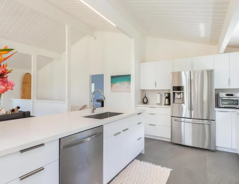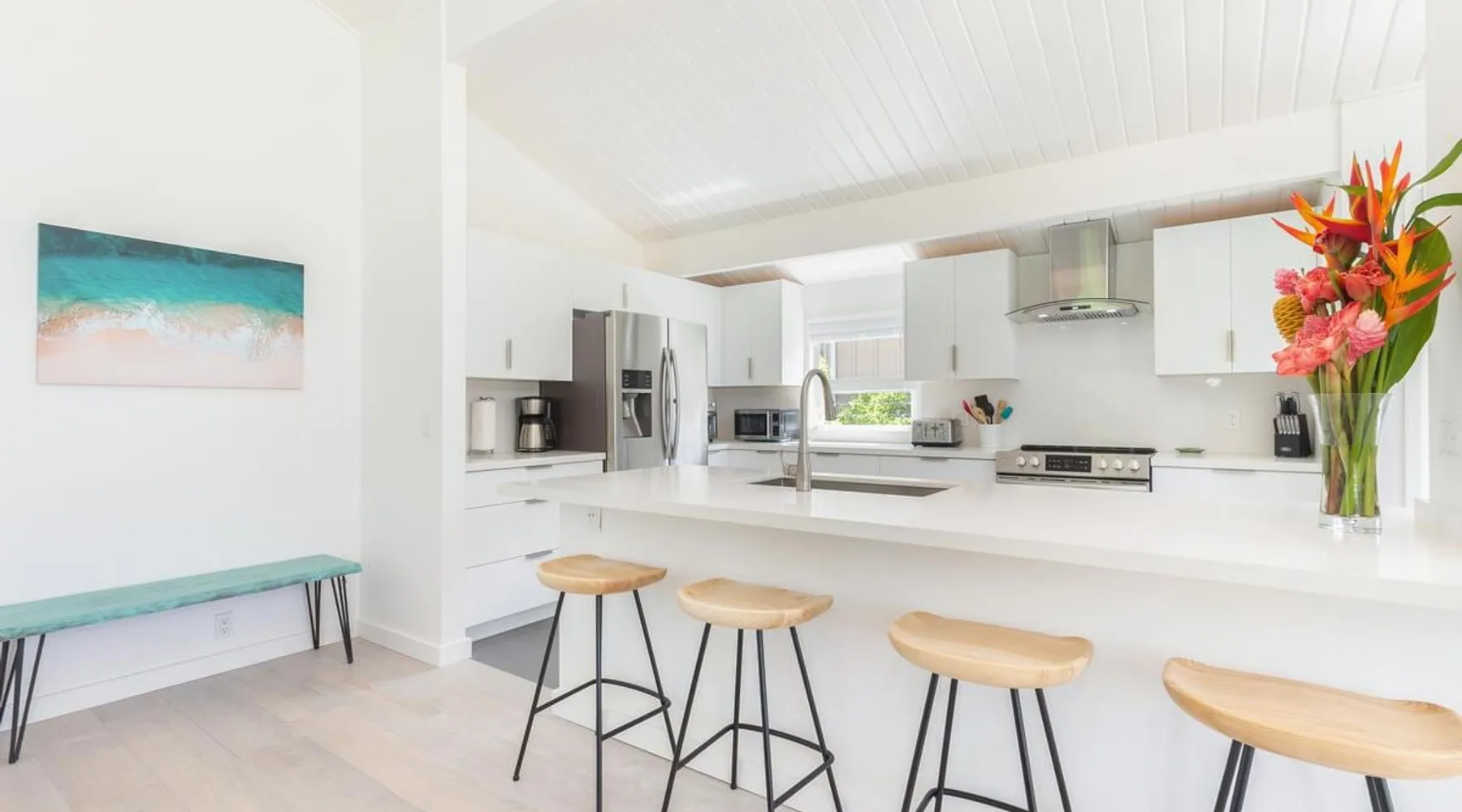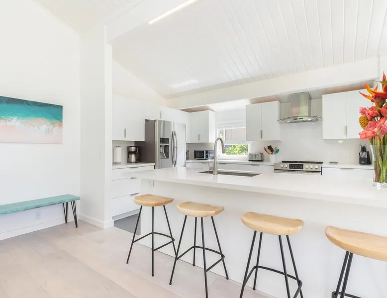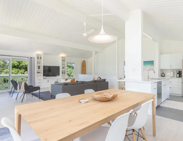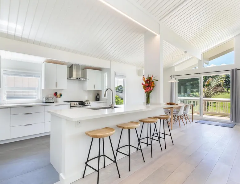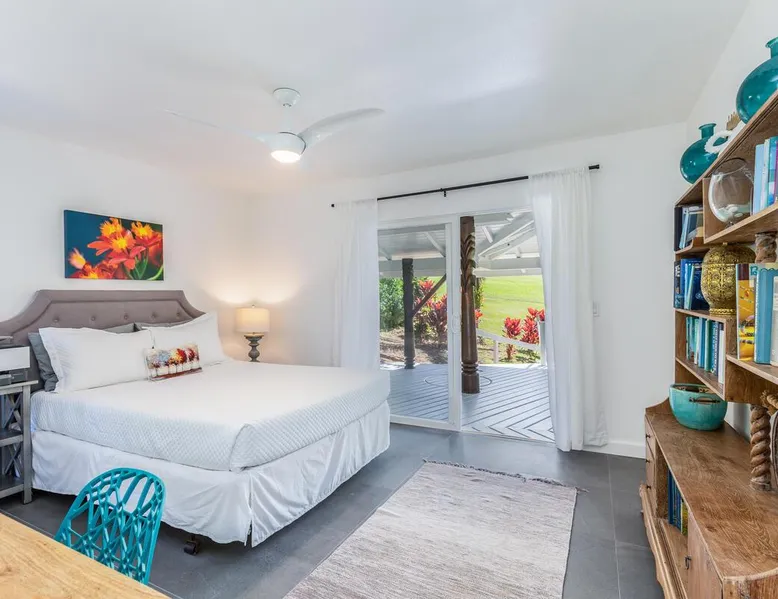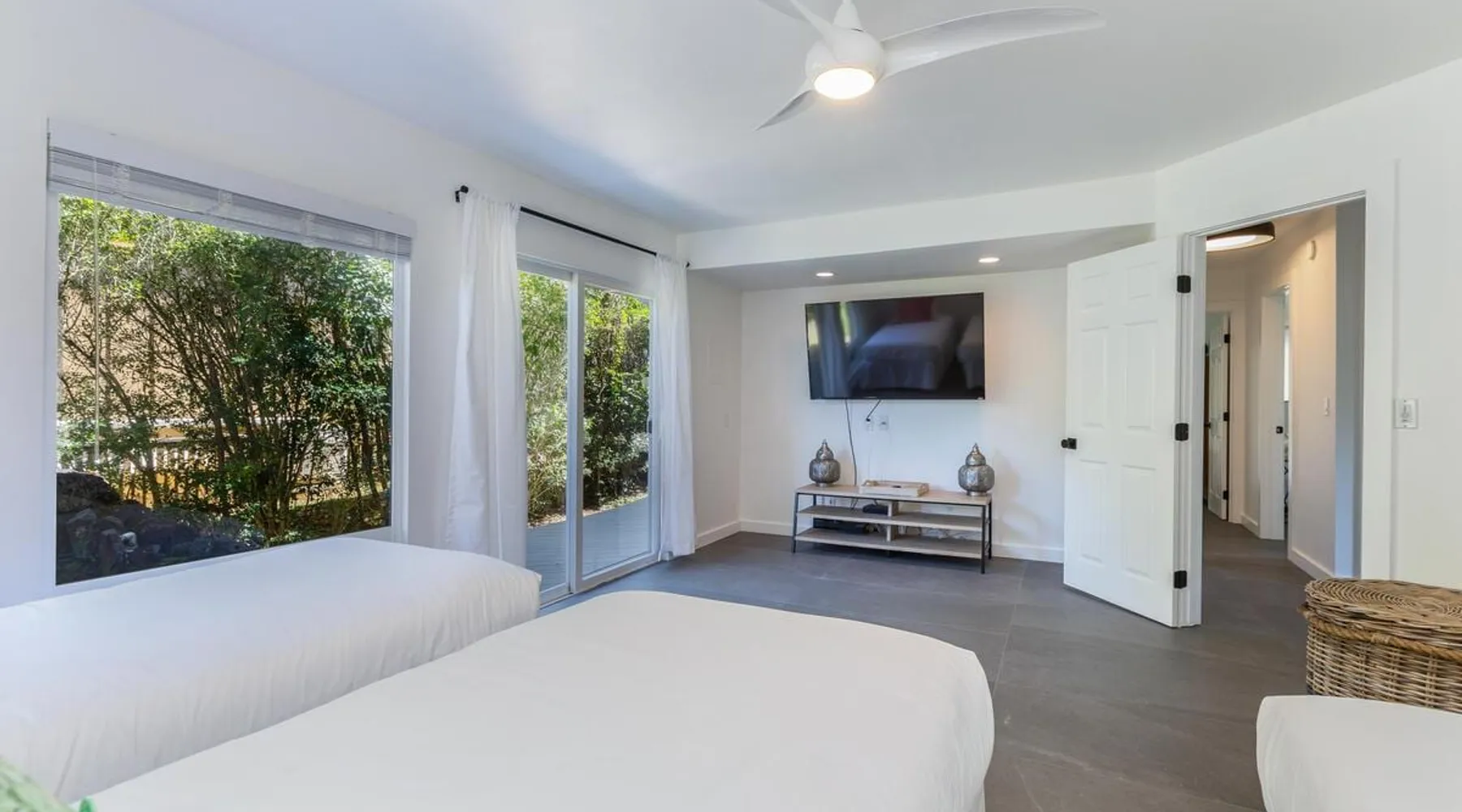 Hawaii Life Rentals Presents Hale Mauna Nui Beautiful beachy modern 4 bedroom 2.5 bath home on the Makai Golf course. The space This beautifully appointed four-bedroom home is tucked off a sleepy street in the resort community of Princeville. Featuring expansive outdoor living space and a private yard on an oversized lot, this is the perfect place to unwind after spending the day exploring this extraordinary island. Situated on the 12th hole of the Makai golf course, enjoy panoramic mountain and waterfall views from the comfort of your lanai. Walking distance to Sealodge beach, Hideaways, and Turtle Cove! Once inside, this home offers plenty of space for a large family or traveling couples. The kitchen has beautiful granite counters, high-end appliances, and a charming breakfast bar that opens to the main living and dining area. The upstairs master suite has ocean views from a luxurious king-sized bed and features plenty of windows to let in the cool, tropical cross-breeze. This home is designed and perfectly situated to maximize the natural cooling effect of the island’s trade winds. The spacious master suite also has a wonderful en-suite bathroom with dual vanities and a walk-in shower. All three downstairs bedrooms have an abundance of natural light, and open to an outdoor lanai. There are an additional one and half baths on the lower level. Air Conditioning in upstairs living room and master bedroom only. *King bedroom upstairs with en suite bathroom and air conditioning *King bedroom downstairs *Queen bedroom downstairs *Three twin beds room downstairs *Mini split AC in living room Come explore the wonder of Kauai’s north shore and stay in this exceptional vacation retreat. Princeville Center, restaurants, shops, and world-famous Hanalei Bay - just minutes away! GOLF BALLS: Home is on a golf course, which means there is always a risk of a ball flying into our property. We are not responsible for any damages, injuries caused by that. It is beyond our control. Hawaii Life Rentals is a locally owned, licensed real estate company with rentals on Kauai, Maui, Oahu, and Hawaii. We offer on-island personal assistance and Concierge services. Rates do not include taxes, cleaning and applicable fees. Hawaii Life/VRBO bookings: Guests must sign a rental contract within 48 hours of booking to confirm the reservation. TMK TA-032-338-5856-01 Registration Details 540140290000, TA-032-338-5856-01