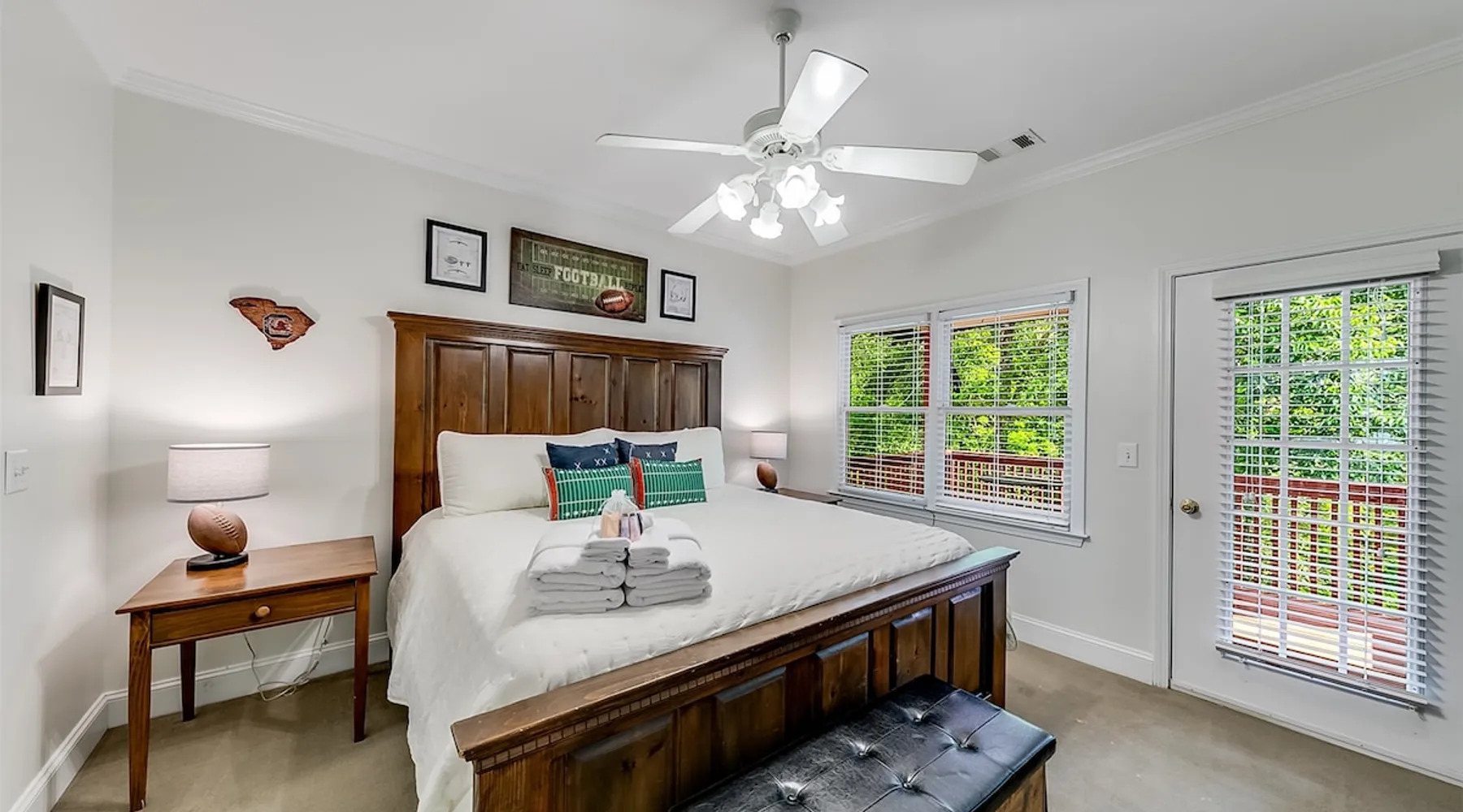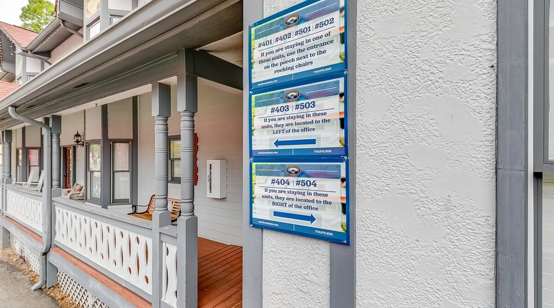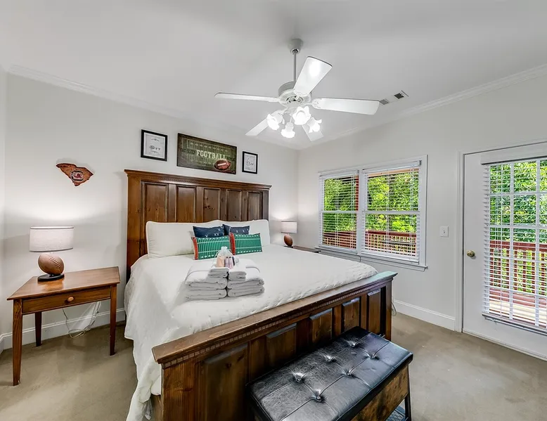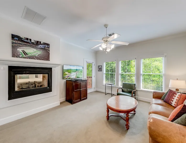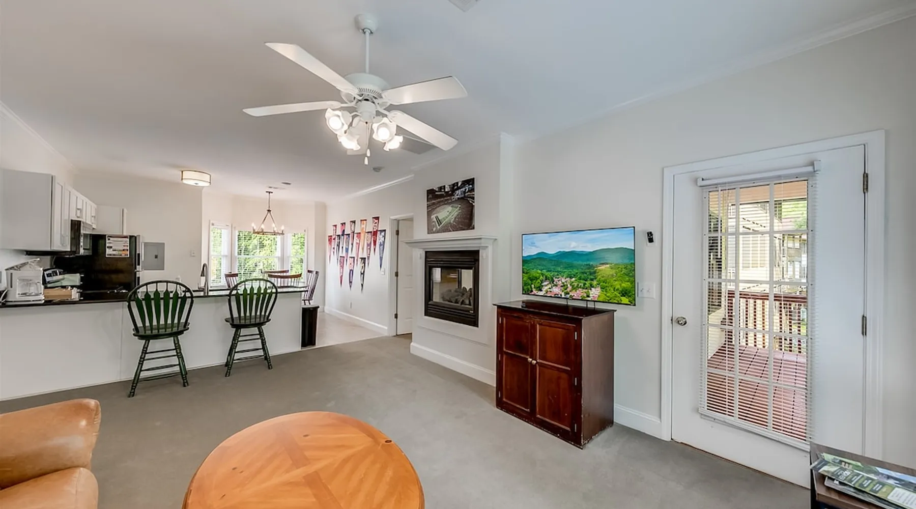 Enjoy this cozy riverside condo minutes away from everything Helen has to offer. You are in the heart of all Helen has to offer. In the summer, you can walk to the access location for the Chattahoochee River Tubing. When you get back from tubing, grab a bite at the North Georgia BBQ on your way back to the condo, or choose from one of the many other restaurants nearby. The space This is it: your perfect Helen vacation spot! Cozy SEC Football themed condo located near downtown Helen overlooking the beautiful Chattahoochee River, you are close to everything at this condo. You can easily walk to Downtown Helen as it's about 1 mile. You are in the heart of all Helen has to offer. In the summer, you can walk to the access location for the Chattahoochee River Tubing. When you get back from tubing, grab a bite at the North Georgia BBQ on your way back to the condo, or choose from one of the many other restaurants nearby. Sit out on the deck and enjoy the peacefulness as you watch the river flowing by. Grill out on the provided grill while you enjoy a glass of wine from one of our local wineries. There is so much to see and do in Helen. For the kids (and adults), there is the Alpine Coaster and several locations to play mini golf. Enjoy strolling the streets of Helen - whatever the season - and do some shopping or grab a funnel cake. Helen is a great location for family fun anytime of year. Come & visit during Oktoberfest where you can try German foods & beer, listen to authentic German music, and have the time of your life. If you prefer to enjoy nature and the more serene side of the area, there are some amazing hiking trails around Helen and outstanding waterfalls: Anna Ruby Falls near Unicoi State Park, Duke Creek Falls, or Raven Cliff Falls. There is something for everyone in Helen; make it your next vacation! Living Room - Double-Sided Fireplace with Gas Logs - Smart TV with Streaming Capability (sign-in with your own accounts) - Leather Couch - Recliner - Views of Chattahoochee River - Easy Access to Deck Kitchen & Dining Area - Essentials Provided - Refrigerator & Freezer - Microwave - Stove & Oven - Dishwasher - Drip Coffee Maker - Coffee Mugs - Glasses - Silverware - Dishware - Toaster - Dining Table Bedroom - King Bed - Double-Sided Fireplace with Gas Logs - Smart TV with Streaming Capability (sign-in with your own accounts) - Dresser - Easy Access to Deck Bathroom - En Suite - Essentials Provided - Stand In Shower - Stacked Washer / Dryer Deck - Overlooks Chattahoochee River - Patio Table - BBQ Grill (shared at the common area by the river) Guest access Guest has access to the entirety of the suite. Other things to note 25+ age requirement for lead guest. No exceptions. This property is not pet-friendly. No exceptions. Digital rental agreement will be required to sign and complete after property is booked. This is a 2nd-level unit. Parking available for 2 vehicles.