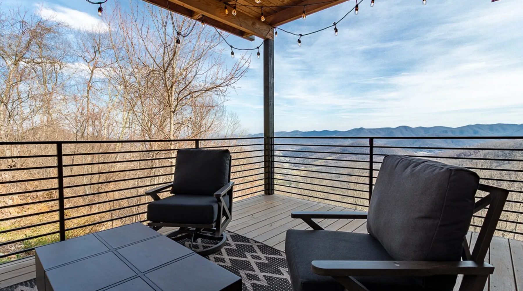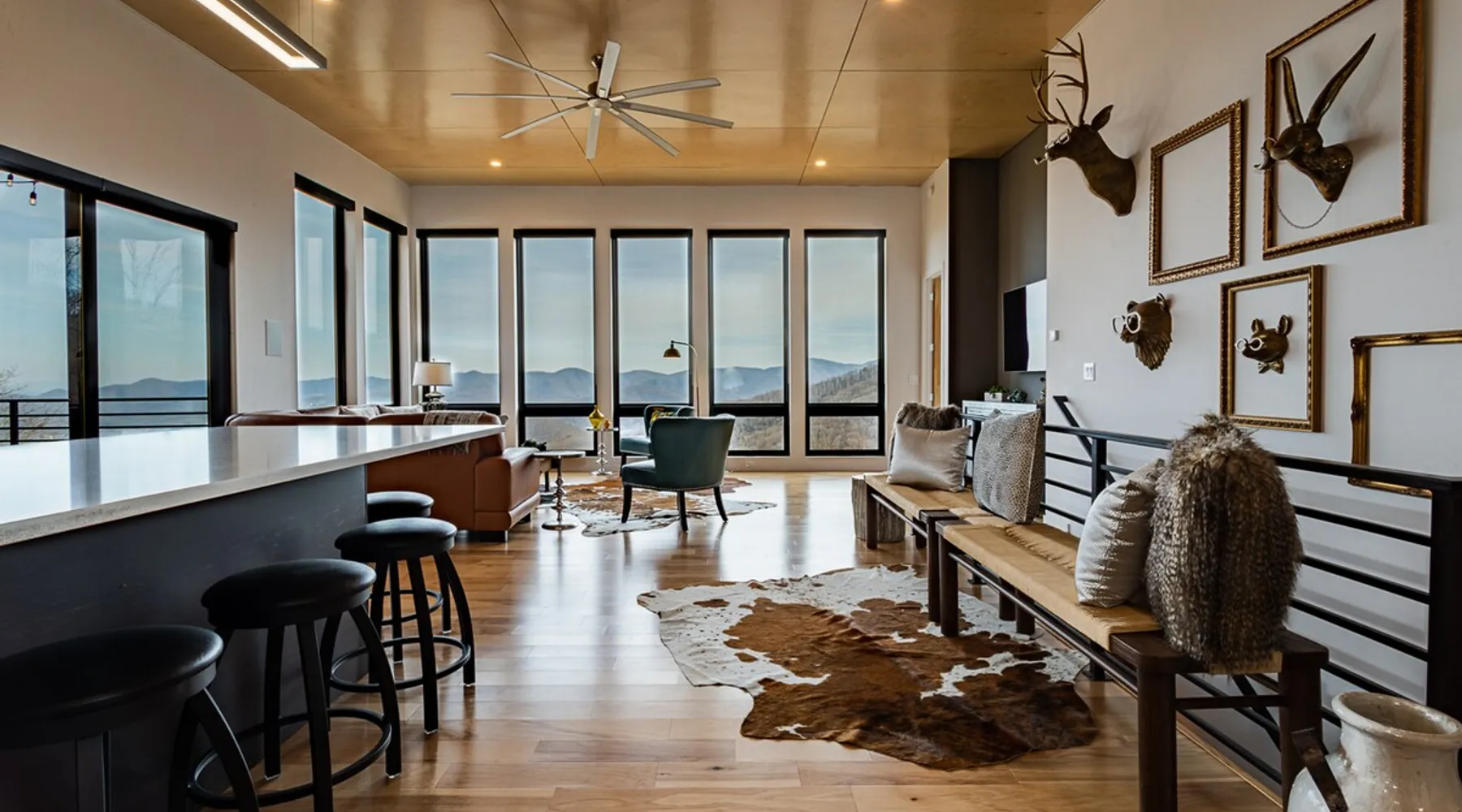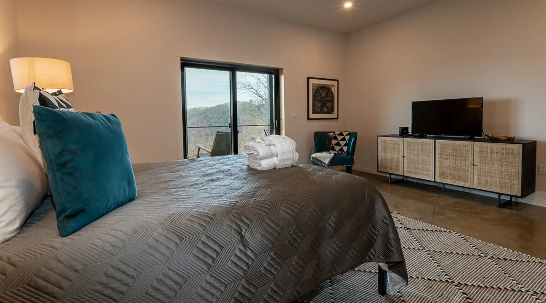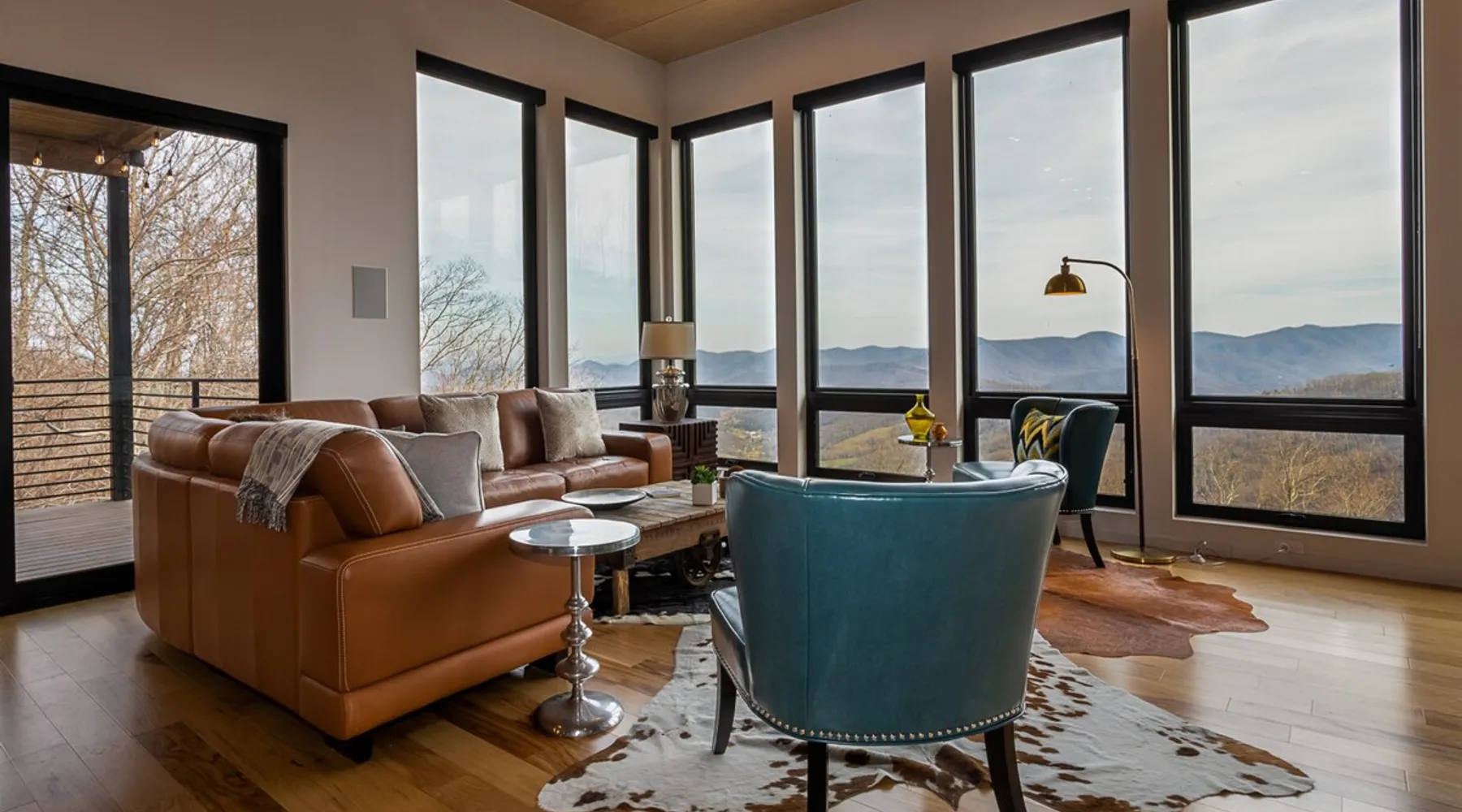 Introducing Blissful Bluff! This home is pristine and exudes modern architectural beauty. From the moment you walk in, the openness and the breathtaking mountain views will have you in awe! And it’s located only about 15 minutes from West Asheville! The space The beautiful wood floors and a kitchen equipped with high end finishes will have you wanting for nothing as you prepare your favorite dishes. With interiors that were decorated and designed by an internationally published designer Anil Kakar of Kakar House of Design , the main level living room is open and comfortable with a large TV and Wi-Fi throughout. Relax on the patio lounge area where you can relax and soak in the ever-changing views. With a main level ensuite bedroom and 2 more guest rooms on the lower level, you’ll have plenty of room for everyone. Each bedroom feels like a luxury hotel suite. You’ll wake up with breathtaking views each morning. And there’s plenty of outdoor dining and relaxing on two separate large outdoor balconies where you can sit and lounge, have your morning coffee or your evening cocktails while enjoying the magnificent view of the Blue Ridge Mountains. In addition to the rejuvenating privacy at Blissful Bluff, you're an easy drive to many popular activities and destinations: Rivers Arts District - The Asheville breweries, restaurants and the vibrant art scene Blue Ridge Parkway - Take a relaxing car ride on and pull off on one of the many trailheads for a hike on the mountain to sea trail Pisgah Inn - While on the Blue Ridge Parkway, you're only a couple of miles away from a fabulous spot for lunch Zen Tubing - Have a lazy float down the magnificent French Broad River in the summer Bent Creek Experimental Forest - For miles and miles of hiking or biking on single track or service road options with a pristine mountain lake to cool off in and is connected to the NC Arboretum Dupont Recreational State Forest - Multiple waterfalls that are enjoyed by an easy hike This home has significant privacy if you are looking for tranquility while sitting on your deck and taking in the amazing views, look no further! Exclusive Special: When you book Blissful Bluff you will receive a special code for discounted tickets to the Biltmore Estate! Contact us for more info. Home Truths: - Sleeps in beds: 6 - Max Occupancy: 8 - 2 Covered Parking spaces and room for 3 additional spaces - We provide linens for all beds; other occupancy will require guests providing their own linens - Internet Speed: Download - 25 Mbps, Upload - 3 Mbps - A full house generator for piece of mind We openly share our Cleaning Fees in a manner of full disclosure, as we think this is the most honest and forthright approach with respect to our guests. Our Cleaning Fees are backed by our Clean Guarantee, which reflects the highest level of standards, pristine environments for our guests, and a level of clean that surpasses any other vacation homes; we literally guarantee it! Quiet Policy: Please note that the home/estate property is located in a very private and quiet gated community. Parties, loud noise and unruly behavior are absolutely prohibited, and guests are expected to respect the neighbors and the peace this mountain retreat area affords. Pets: This home and property are very dog-friendly, and guests are welcome to bring their "best friends" with them. There is a non-refundable Pet Fee of $130 with a limit of 2 dogs per booking party. Early check-in and/or Late check-out may be possible, depending on cleaning schedules and other reservations. If possible, an additional fee may be applicable, determined by the time you wish to check in or out and the seasonal rates. Please inquire for details regarding payment, the cancellation policy, military discounts, and trip insurance. Note: Reservations over 30 days are subject to review before acceptance. A separate rental agreement will be required for 90+ day stays. Last Minute Bookings: Reservations made within 7 days of check-in require additional documentation before confirmation.