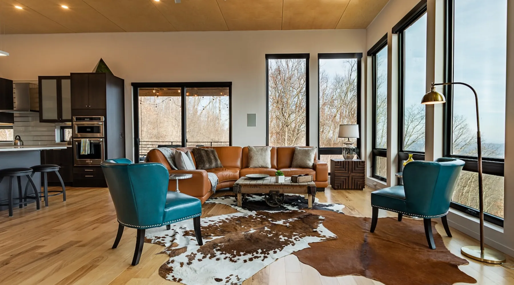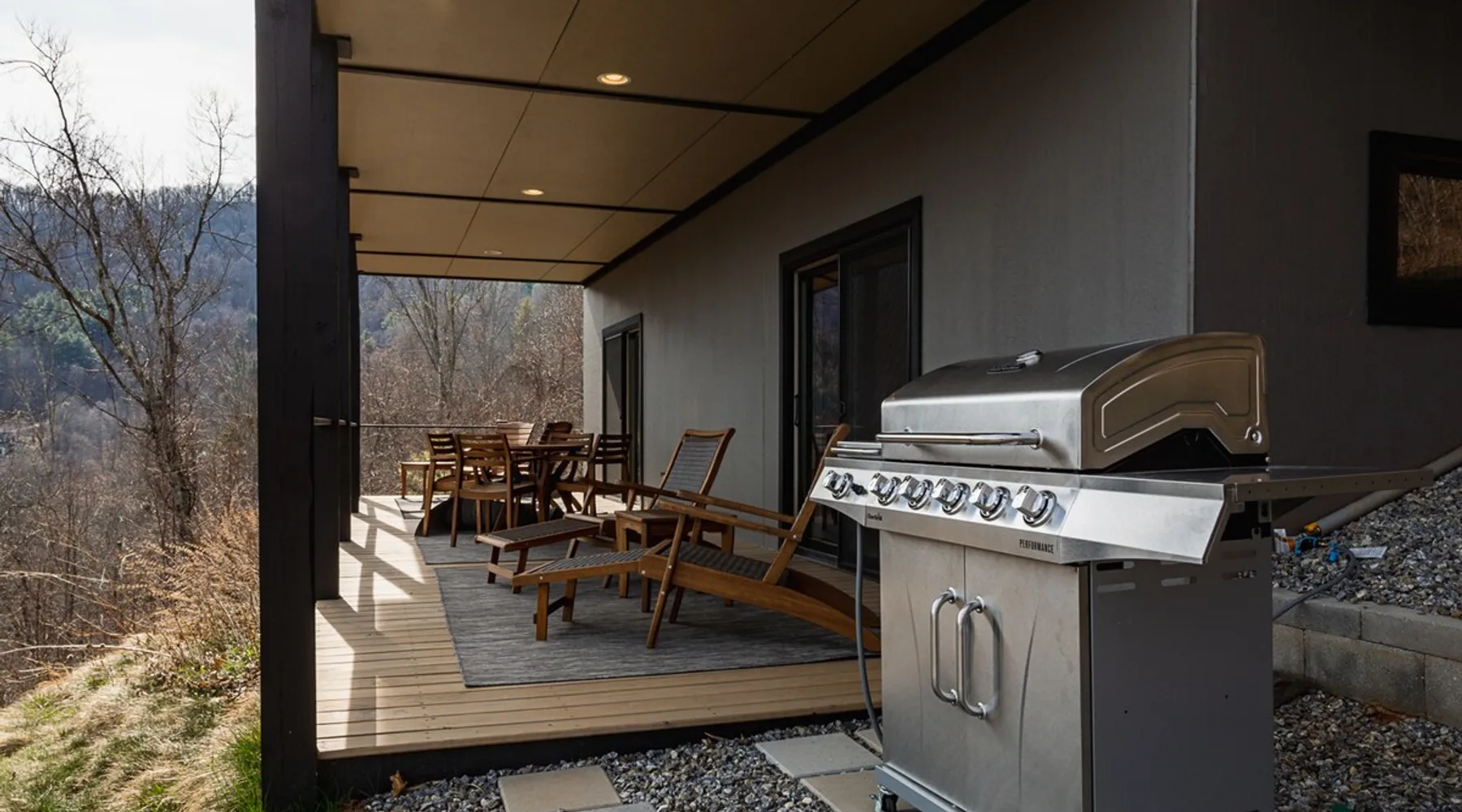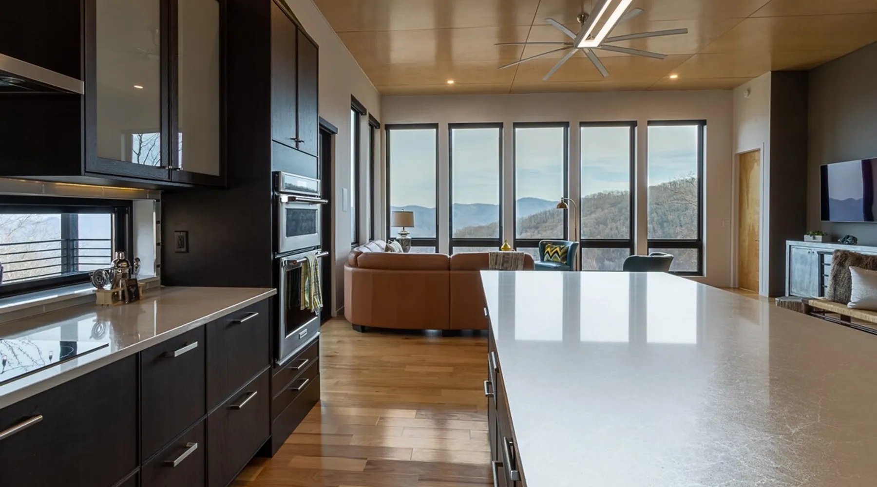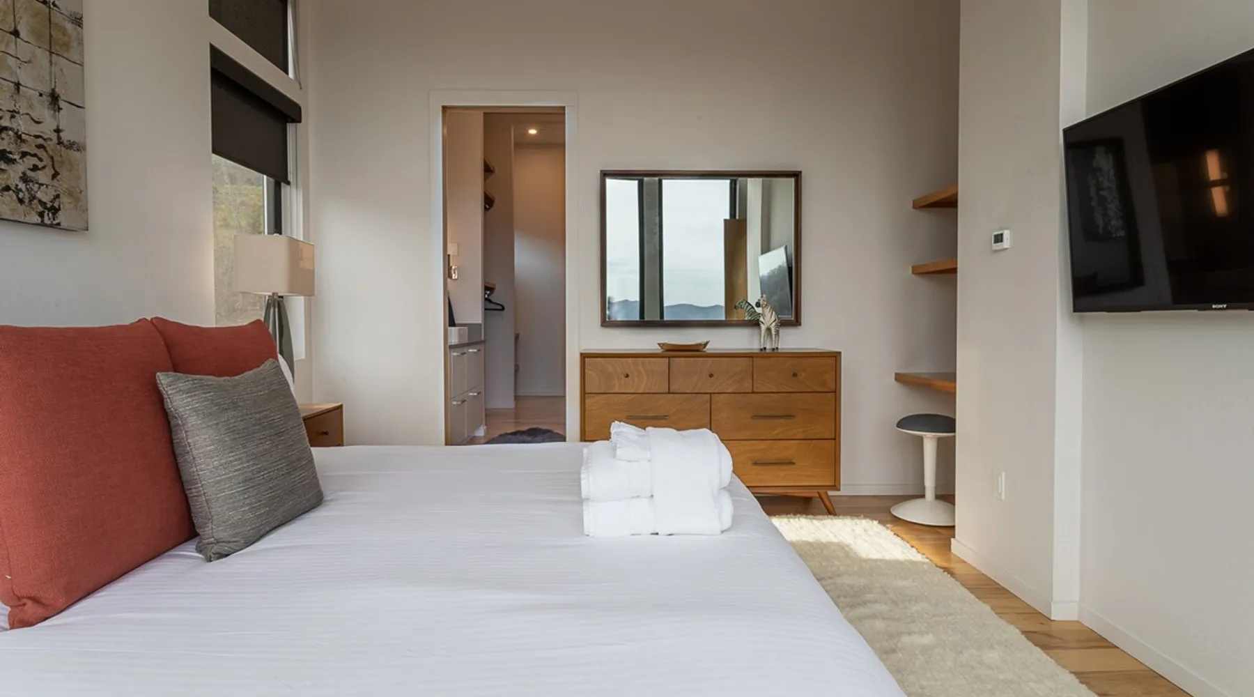 Introducing Blissful Bluff! This home is pristine and exudes modern architectural beauty. From the moment you walk in, the openness and the breathtaking mountain views will have you in awe! And it’s located only about 15 minutes from West Asheville! The space The beautiful wood floors and a kitchen equipped with high end finishes will have you wanting for nothing as you prepare your favorite dishes. With interiors that were decorated and designed by an internationally published designer Anil Kakar of Kakar House of Design , the main level living room is open and comfortable with a large TV and Wi-Fi throughout. Relax on the patio lounge area where you can relax and soak in the ever-changing views. With a main level ensuite bedroom and 2 more guest rooms on the lower level, you’ll have plenty of room for everyone. Each bedroom feels like a luxury hotel suite. You’ll wake up with breathtaking views each morning. And there’s plenty of outdoor dining and relaxing on two separate large outdoor balconies where you can sit and lounge, have your morning coffee or your evening cocktails while enjoying the magnificent view of the Blue Ridge Mountains. In addition to the rejuvenating privacy at Blissful Bluff, you're an easy drive to many popular activities and destinations: Rivers Arts District - The Asheville breweries, restaurants and the vibrant art scene Blue Ridge Parkway - Take a relaxing car ride on and pull off on one of the many trailheads for a hike on the mountain to sea trail Pisgah Inn - While on the Blue Ridge Parkway, you're only a couple of miles away from a fabulous spot for lunch Zen Tubing - Have a lazy float down the magnificent French Broad River in the summer Bent Creek Experimental Forest - For miles and miles of hiking or biking on single track or service road options with a pristine mountain lake to cool off in and is connected to the NC Arboretum Dupont Recreational State Forest - Multiple waterfalls that are enjoyed by an easy hike This home has significant privacy if you are looking for tranquility while sitting on your deck and taking in the amazing views, look no further! Exclusive Special: When you book Blissful Bluff you will receive a special code for discounted tickets to the Biltmore Estate! Contact us for more info. Home Truths: - Sleeps in beds: 6 - Max Occupancy: 8 - 2 Covered Parking spaces and room for 3 additional spaces - We provide linens for all beds; other occupancy will require guests providing their own linens - Internet Speed: Download - 25 Mbps, Upload - 3 Mbps - A full house generator for piece of mind We openly share our Cleaning Fees in a manner of full disclosure, as we think this is the most honest and forthright approach with respect to our guests. Our Cleaning Fees are backed by our Clean Guarantee, which reflects the highest level of standards, pristine environments for our guests, and a level of clean that surpasses any other vacation homes; we literally guarantee it! Quiet Policy: Please note that the home/estate property is located in a very private and quiet gated community. Parties, loud noise and unruly behavior are absolutely prohibited, and guests are expected to respect the neighbors and the peace this mountain retreat area affords. Pets: This home and property are very dog-friendly, and guests are welcome to bring their "best friends" with them. There is a non-refundable Pet Fee of $130 with a limit of 2 dogs per booking party. Early check-in and/or Late check-out may be possible, depending on cleaning schedules and other reservations. If possible, an additional fee may be applicable, determined by the time you wish to check in or out and the seasonal rates. Please inquire for details regarding payment, the cancellation policy, military discounts, and trip insurance. Note: Reservations over 30 days are subject to review before acceptance. A separate rental agreement will be required for 90+ day stays. Last Minute Bookings: Reservations made within 7 days of check-in require additional documentation before confirmation.