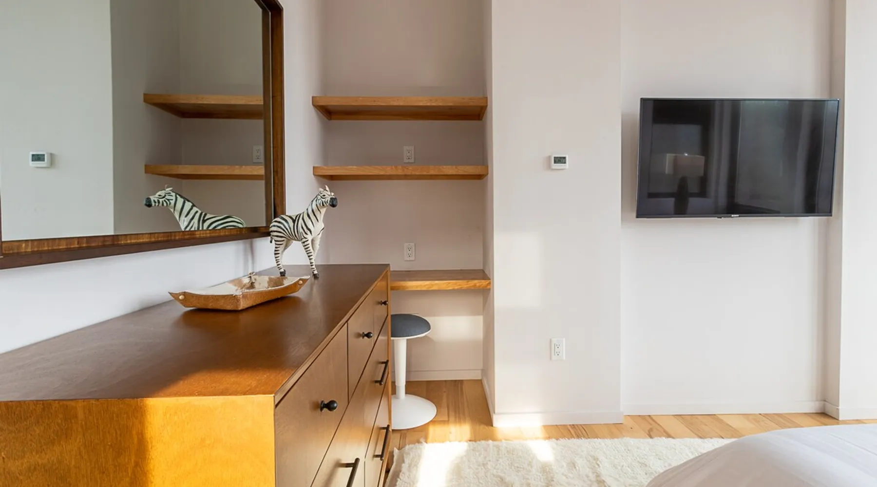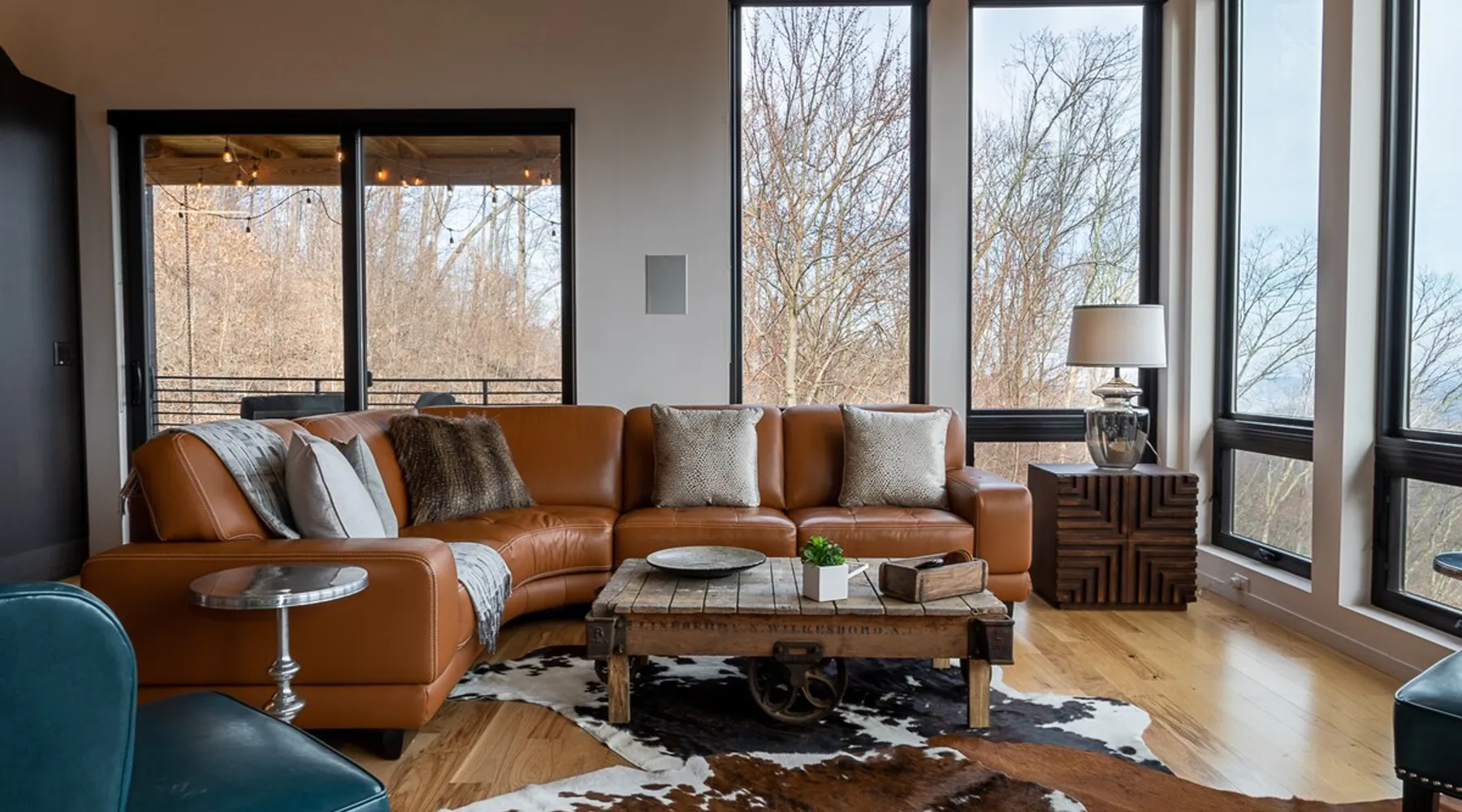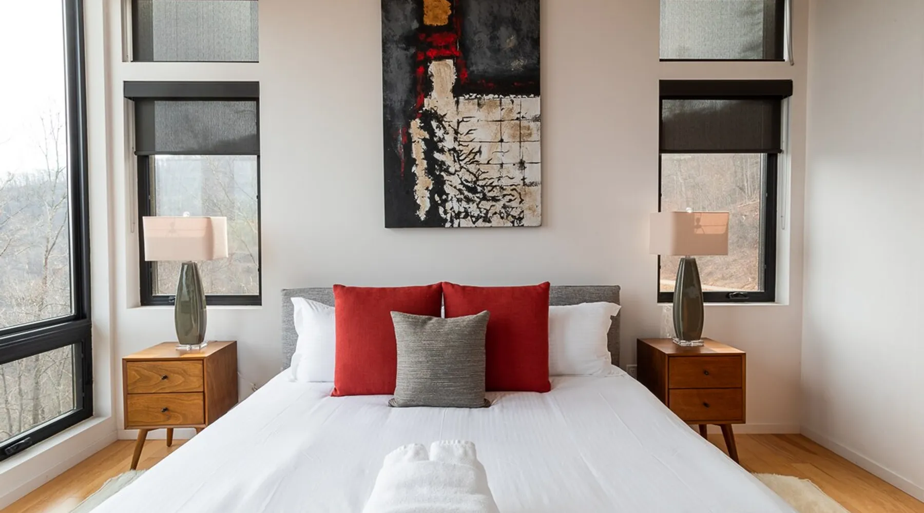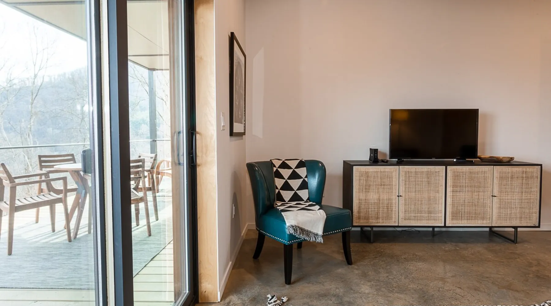 Introducing Blissful Bluff! This home is pristine and exudes modern architectural beauty. From the moment you walk in, the openness and the breathtaking mountain views will have you in awe! And it’s located only about 15 minutes from West Asheville! The space The beautiful wood floors and a kitchen equipped with high end finishes will have you wanting for nothing as you prepare your favorite dishes. With interiors that were decorated and designed by an internationally published designer Anil Kakar of Kakar House of Design , the main level living room is open and comfortable with a large TV and Wi-Fi throughout. Relax on the patio lounge area where you can relax and soak in the ever-changing views. With a main level ensuite bedroom and 2 more guest rooms on the lower level, you’ll have plenty of room for everyone. Each bedroom feels like a luxury hotel suite. You’ll wake up with breathtaking views each morning. And there’s plenty of outdoor dining and relaxing on two separate large outdoor balconies where you can sit and lounge, have your morning coffee or your evening cocktails while enjoying the magnificent view of the Blue Ridge Mountains. In addition to the rejuvenating privacy at Blissful Bluff, you're an easy drive to many popular activities and destinations: Rivers Arts District - The Asheville breweries, restaurants and the vibrant art scene Blue Ridge Parkway - Take a relaxing car ride on and pull off on one of the many trailheads for a hike on the mountain to sea trail Pisgah Inn - While on the Blue Ridge Parkway, you're only a couple of miles away from a fabulous spot for lunch Zen Tubing - Have a lazy float down the magnificent French Broad River in the summer Bent Creek Experimental Forest - For miles and miles of hiking or biking on single track or service road options with a pristine mountain lake to cool off in and is connected to the NC Arboretum Dupont Recreational State Forest - Multiple waterfalls that are enjoyed by an easy hike This home has significant privacy if you are looking for tranquility while sitting on your deck and taking in the amazing views, look no further! Exclusive Special: When you book Blissful Bluff you will receive a special code for discounted tickets to the Biltmore Estate! Contact us for more info. Home Truths: - Sleeps in beds: 6 - Max Occupancy: 8 - 2 Covered Parking spaces and room for 3 additional spaces - We provide linens for all beds; other occupancy will require guests providing their own linens - Internet Speed: Download - 25 Mbps, Upload - 3 Mbps - A full house generator for piece of mind We openly share our Cleaning Fees in a manner of full disclosure, as we think this is the most honest and forthright approach with respect to our guests. Our Cleaning Fees are backed by our Clean Guarantee, which reflects the highest level of standards, pristine environments for our guests, and a level of clean that surpasses any other vacation homes; we literally guarantee it! Quiet Policy: Please note that the home/estate property is located in a very private and quiet gated community. Parties, loud noise and unruly behavior are absolutely prohibited, and guests are expected to respect the neighbors and the peace this mountain retreat area affords. Pets: This home and property are very dog-friendly, and guests are welcome to bring their "best friends" with them. There is a non-refundable Pet Fee of $130 with a limit of 2 dogs per booking party. Early check-in and/or Late check-out may be possible, depending on cleaning schedules and other reservations. If possible, an additional fee may be applicable, determined by the time you wish to check in or out and the seasonal rates. Please inquire for details regarding payment, the cancellation policy, military discounts, and trip insurance. Note: Reservations over 30 days are subject to review before acceptance. A separate rental agreement will be required for 90+ day stays. Last Minute Bookings: Reservations made within 7 days of check-in require additional documentation before confirmation.