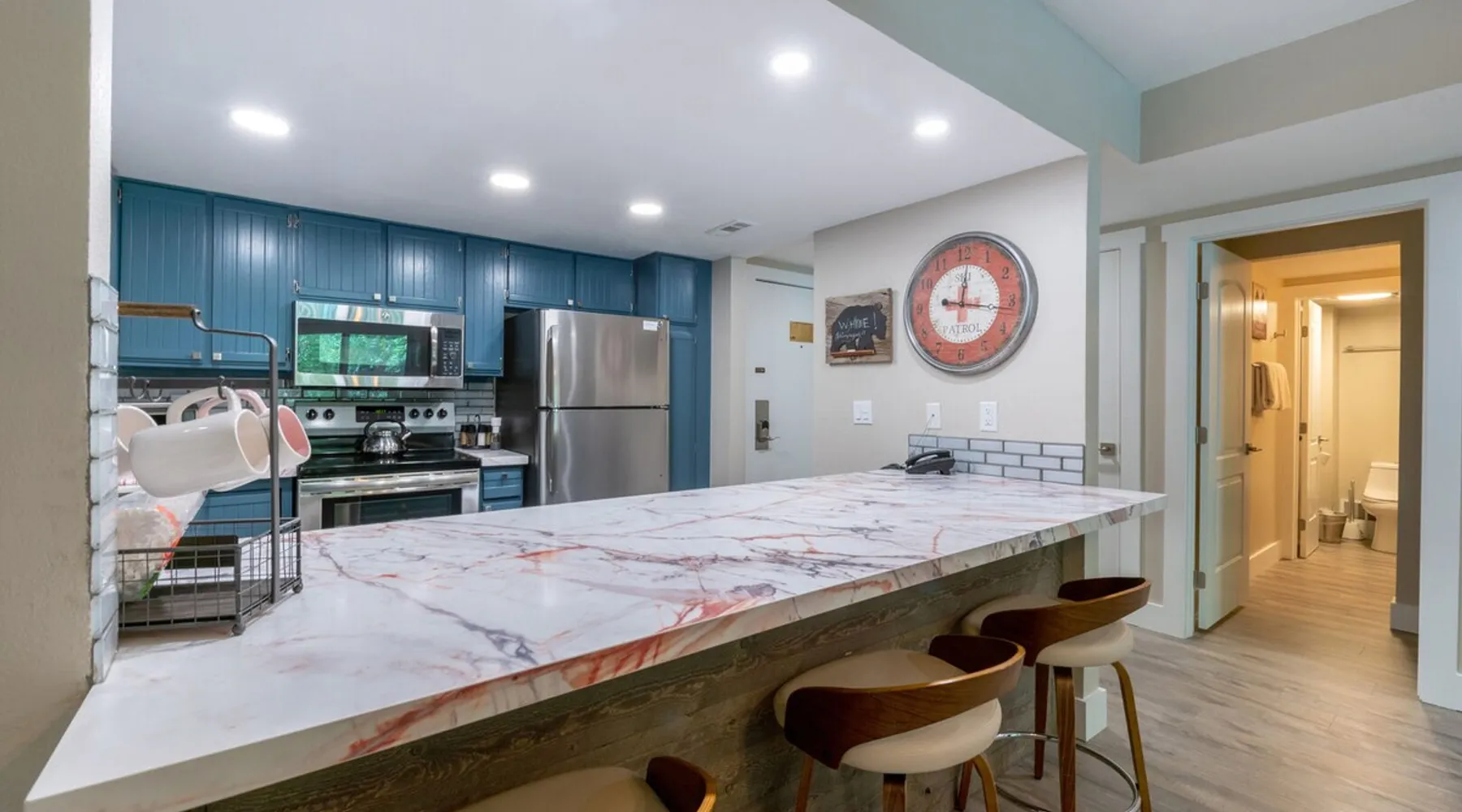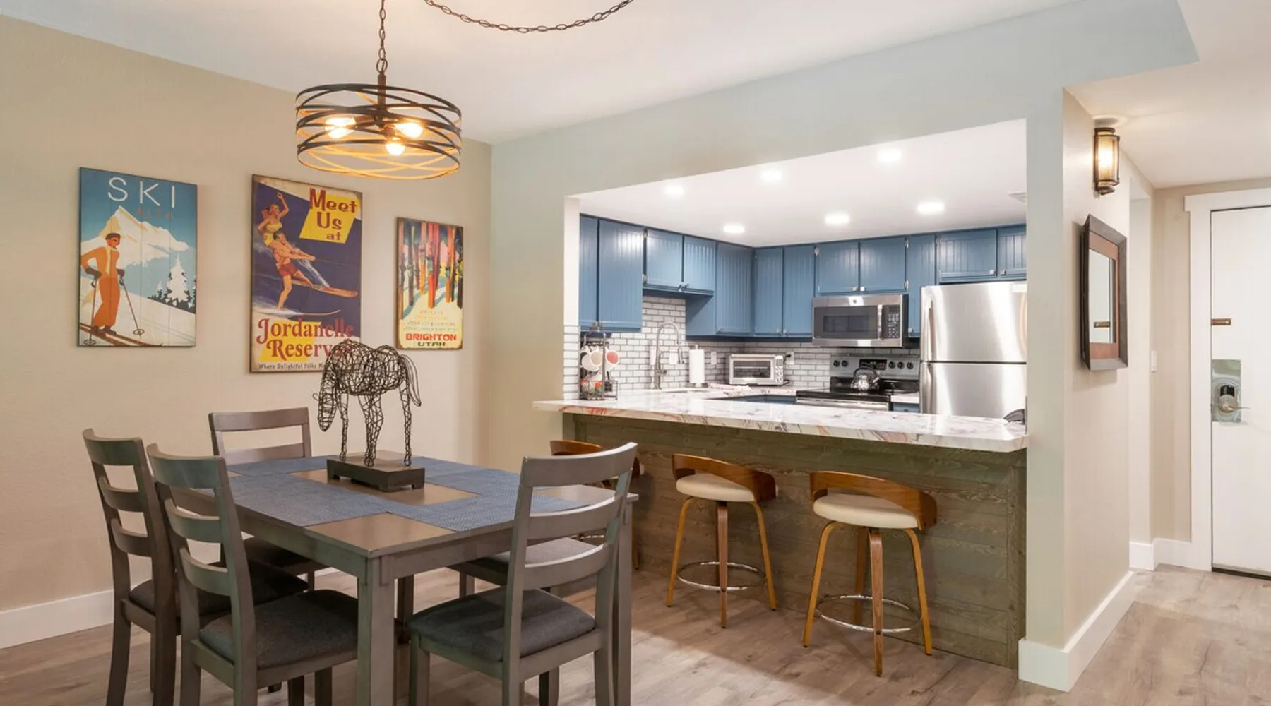 Occupying a prime location at the bottom of Main Street (walk to restaurants, shops, and more), this centrally located condo is fully renovated as of summer 2022. Enjoy modern decor with sleek finishes including new floors, kitchen counters, appliances, and updated furniture. With two queen beds plus a sleeper sofa, the unit sleeps up to six. Full kitchen is provided and one full bath. Walk out patio with bistro set to enjoy Park City's bluebird days and mountain air. The space Occupying a prime location at the bottom of Main Street (walk to restaurants, shops, and more), just around the corner from Park City Mountain's Town Lift (0.1 mile / 3-minute walk), our Park Station one-bedroom offers a modern space to enjoy everything Park City has to offer just steps from your door. This centrally located condo is fully renovated as of summer 2022. Enjoy modern decor with sleek finishes including new floors, kitchen counters, appliances, and updated furniture. With two queen beds plus a sleeper sofa, the unit sleeps up to six. Full kitchen is provided and one full bath. Walk out patio with bistro set to enjoy Park City's bluebird days and mountain air. The property features both indoor and outdoor hot tubs and sauna. The outdoor pool is only open during the summer. ***Long term (28 night or longer) stays are only accepted April through November. Guest access Door codes will be provided with pre-arrival information (sent 5 days prior to arrival) providing 24x7 access to the unit. Other things to note > Resort property, guests responsible for conducting themselves in a professional manner, complying with all property rules > No smoking, minimum $2000 charge for violation > No pets, minimum $2000 charge for violation > Failure to follow resort rules, smoking and/or pet policy can result in immediate removal from the property without refund > Optional housekeeping available during stay, to be arranged a minimum of two weeks in advance, additional charges apply