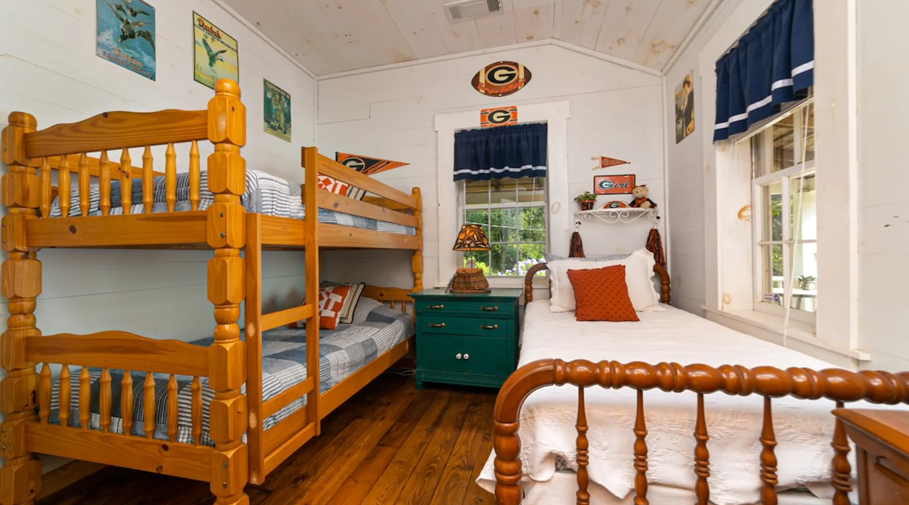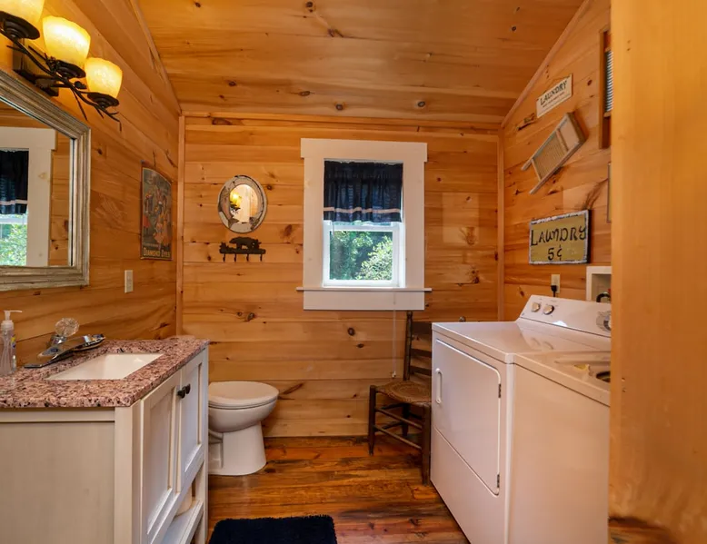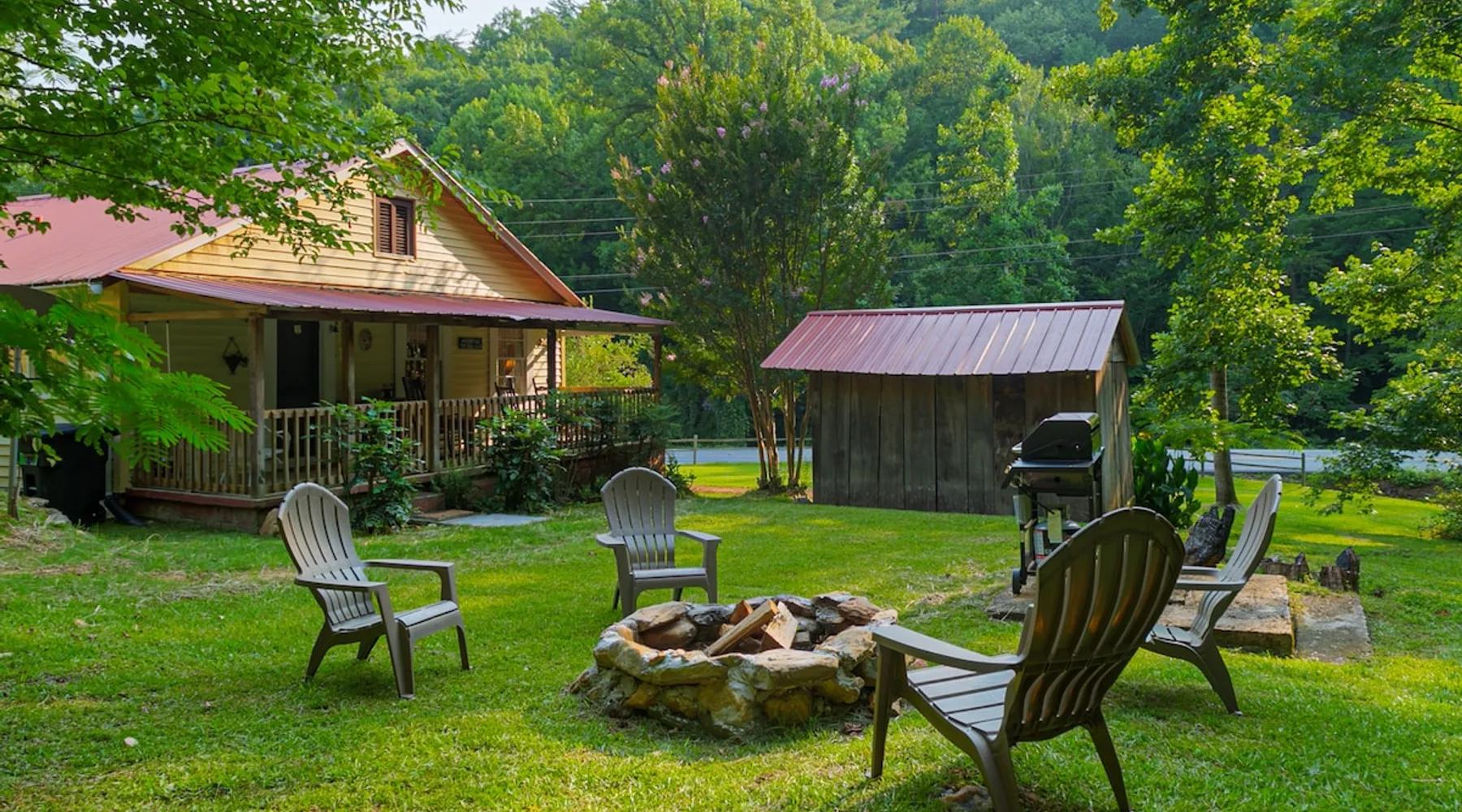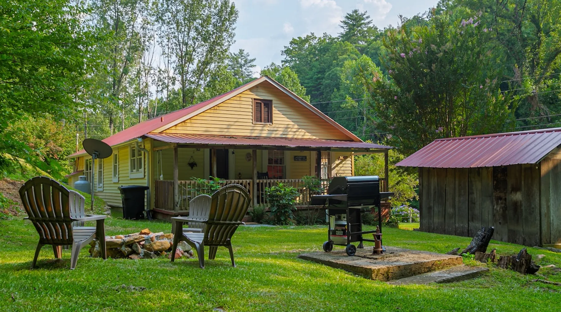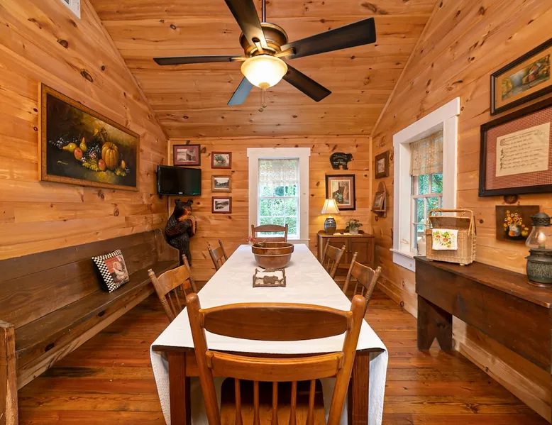 Discover the epitome of southern charm at this vintage ranch-style farmhouse conveniently situated just 1.5 miles from Helen's attractions. Inside, you'll find stunning tongue-and-groove pine walls, vaulted ceilings, wide-plank pine floors, and antique accents. Outside, relax on the 3/4 wrap-around porch or the back porch overlooking the fire pit and grilling area. Charming southern stay with antique furnishings The space Experience the timeless allure of "Georgia Bell's," a vintage ranch-style farmhouse that epitomizes the quintessential southern charm you've been longing for. Situated just 1.5 miles from the bustling attractions of Helen, this meticulously curated abode beckons with its rich history and inviting ambiance. Step inside to discover a treasure trove of southern elegance, where beautiful tongue-and-groove pine walls, vaulted ceilings, and wide-plank pine floors create a warm and welcoming atmosphere. Antique accents adorn every corner, weaving a tapestry of nostalgia and comfort throughout the home. Venture outside onto the expansive 3/4 wrap-around porch, where rocking chairs invite you to unwind and soak in the tranquility of the surrounding landscape. A second back porch overlooks the charming firepit and grilling area, providing the perfect setting for al fresco gatherings with loved ones. But the allure of "Georgia Bell's" extends beyond its charming interior and picturesque surroundings. Positioned just across the street from the Chattahoochee River, this rustic retreat offers easy access to the water, where tubers embark on their journey into town—a testament to its prime location in the heart of the NE Georgia mountains. Whether you're seeking a peaceful escape or an adventure-filled getaway, "Georgia Bell's" promises an unforgettable experience for the whole family. Embrace the timeless allure of southern hospitality and create cherished memories that will last a lifetime at this enchanting mountain retreat. Other things to note 25+ age requirement for lead guest. No exceptions. This property is not pet-friendly. No exceptions. Digital rental agreement will be required to sign and complete after property is booked. Firewood not provided for fireplace and fire pit. Parking for 3 medium-sized vehicles.