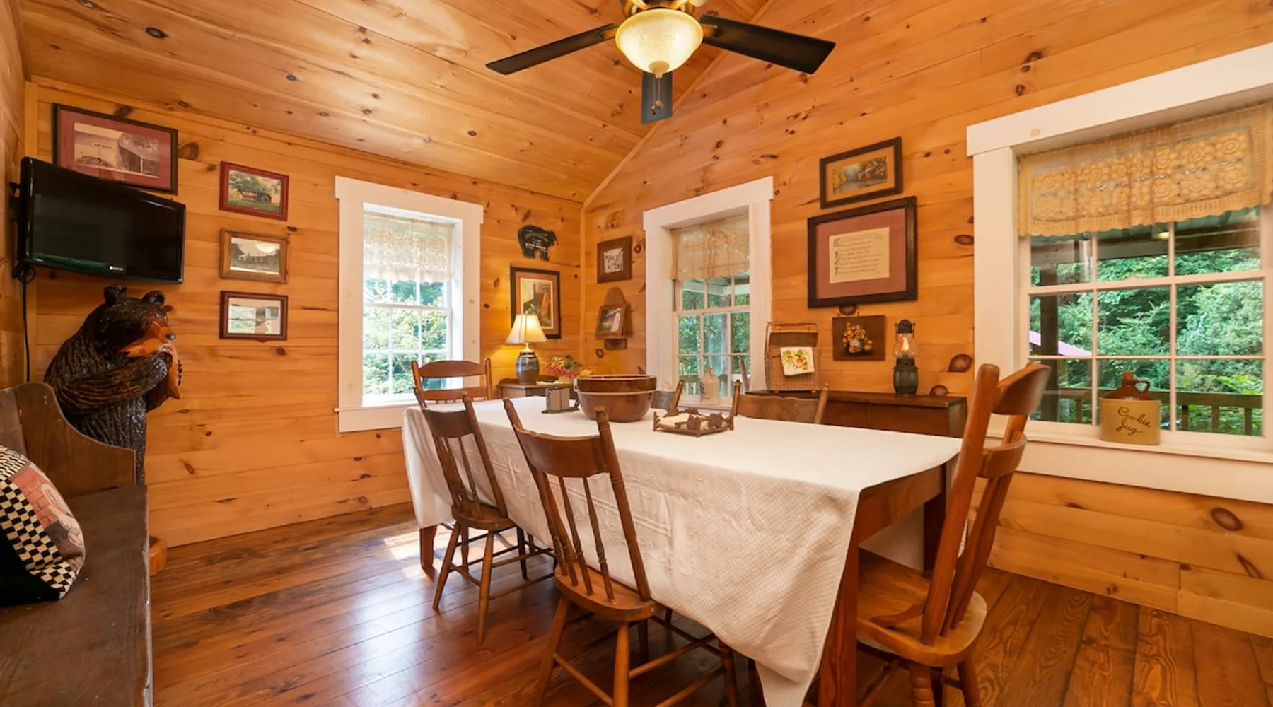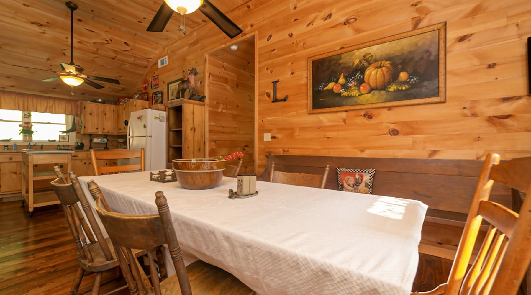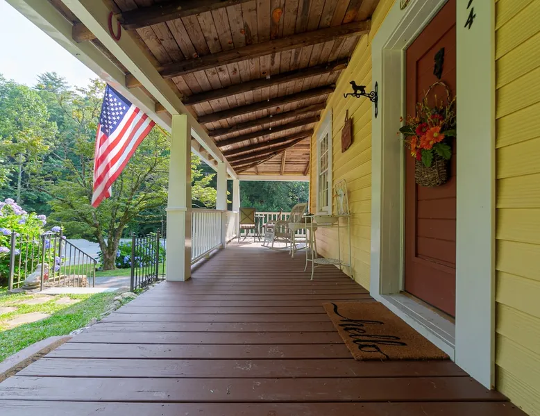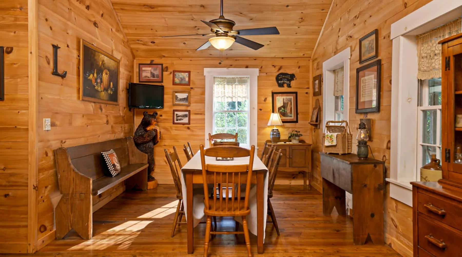 Discover the epitome of southern charm at this vintage ranch-style farmhouse conveniently situated just 1.5 miles from Helen's attractions. Inside, you'll find stunning tongue-and-groove pine walls, vaulted ceilings, wide-plank pine floors, and antique accents. Outside, relax on the 3/4 wrap-around porch or the back porch overlooking the fire pit and grilling area. Charming southern stay with antique furnishings The space Experience the timeless allure of "Georgia Bell's," a vintage ranch-style farmhouse that epitomizes the quintessential southern charm you've been longing for. Situated just 1.5 miles from the bustling attractions of Helen, this meticulously curated abode beckons with its rich history and inviting ambiance. Step inside to discover a treasure trove of southern elegance, where beautiful tongue-and-groove pine walls, vaulted ceilings, and wide-plank pine floors create a warm and welcoming atmosphere. Antique accents adorn every corner, weaving a tapestry of nostalgia and comfort throughout the home. Venture outside onto the expansive 3/4 wrap-around porch, where rocking chairs invite you to unwind and soak in the tranquility of the surrounding landscape. A second back porch overlooks the charming firepit and grilling area, providing the perfect setting for al fresco gatherings with loved ones. But the allure of "Georgia Bell's" extends beyond its charming interior and picturesque surroundings. Positioned just across the street from the Chattahoochee River, this rustic retreat offers easy access to the water, where tubers embark on their journey into town—a testament to its prime location in the heart of the NE Georgia mountains. Whether you're seeking a peaceful escape or an adventure-filled getaway, "Georgia Bell's" promises an unforgettable experience for the whole family. Embrace the timeless allure of southern hospitality and create cherished memories that will last a lifetime at this enchanting mountain retreat. Other things to note 25+ age requirement for lead guest. No exceptions. This property is not pet-friendly. No exceptions. Digital rental agreement will be required to sign and complete after property is booked. Firewood not provided for fireplace and fire pit. Parking for 3 medium-sized vehicles.