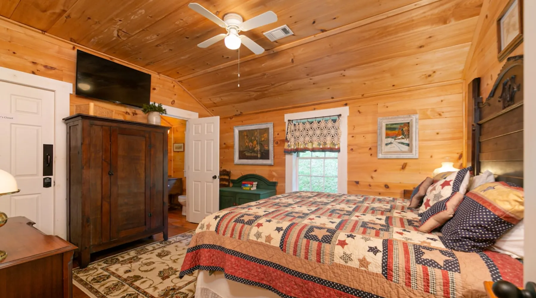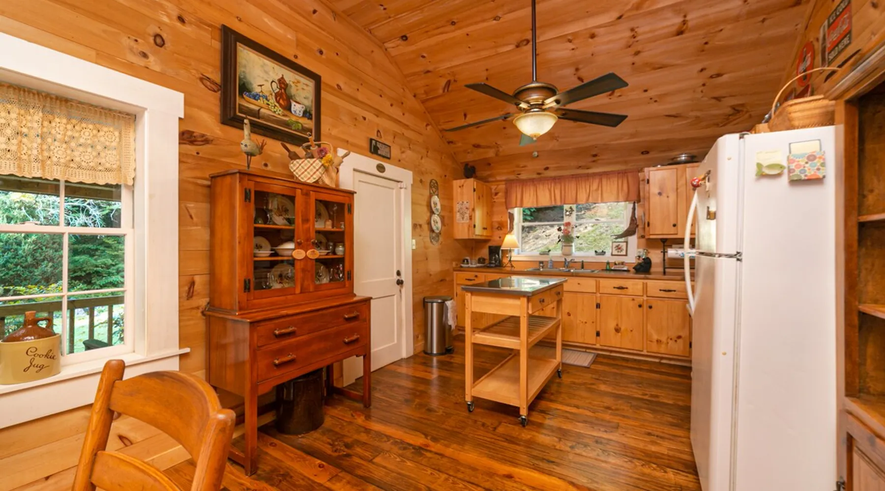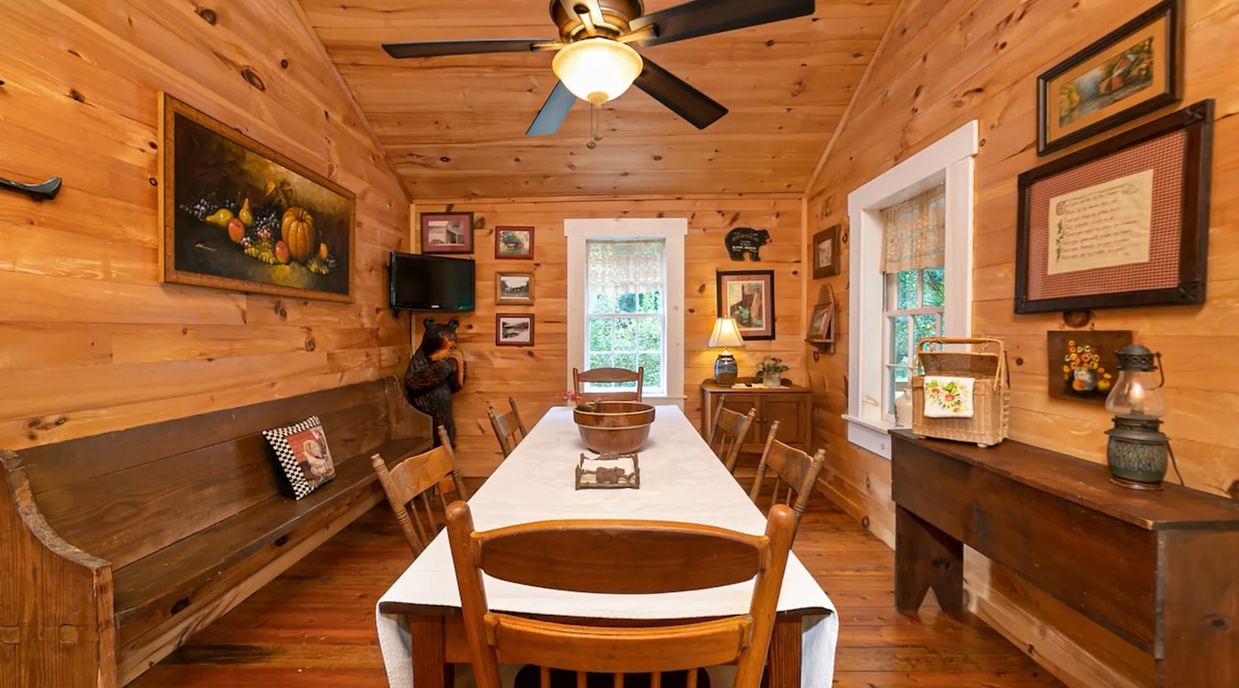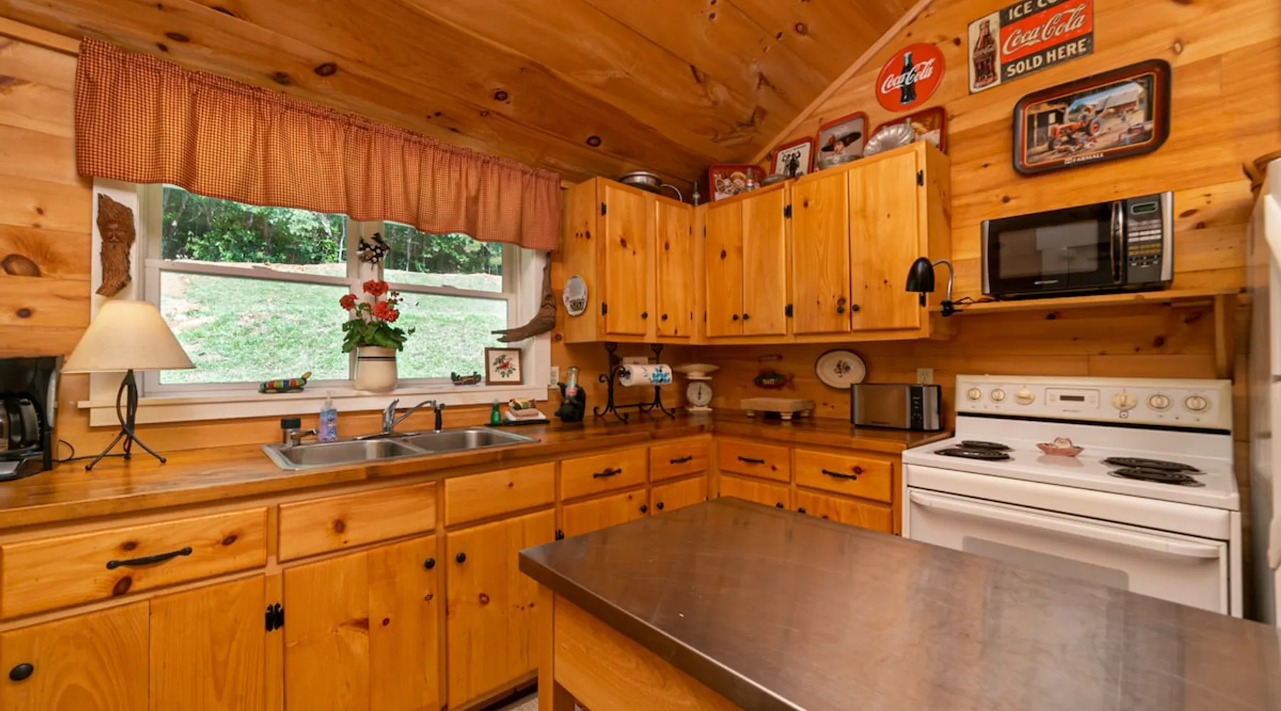 Discover the epitome of southern charm at this vintage ranch-style farmhouse conveniently situated just 1.5 miles from Helen's attractions. Inside, you'll find stunning tongue-and-groove pine walls, vaulted ceilings, wide-plank pine floors, and antique accents. Outside, relax on the 3/4 wrap-around porch or the back porch overlooking the fire pit and grilling area. Charming southern stay with antique furnishings The space Experience the timeless allure of "Georgia Bell's," a vintage ranch-style farmhouse that epitomizes the quintessential southern charm you've been longing for. Situated just 1.5 miles from the bustling attractions of Helen, this meticulously curated abode beckons with its rich history and inviting ambiance. Step inside to discover a treasure trove of southern elegance, where beautiful tongue-and-groove pine walls, vaulted ceilings, and wide-plank pine floors create a warm and welcoming atmosphere. Antique accents adorn every corner, weaving a tapestry of nostalgia and comfort throughout the home. Venture outside onto the expansive 3/4 wrap-around porch, where rocking chairs invite you to unwind and soak in the tranquility of the surrounding landscape. A second back porch overlooks the charming firepit and grilling area, providing the perfect setting for al fresco gatherings with loved ones. But the allure of "Georgia Bell's" extends beyond its charming interior and picturesque surroundings. Positioned just across the street from the Chattahoochee River, this rustic retreat offers easy access to the water, where tubers embark on their journey into town—a testament to its prime location in the heart of the NE Georgia mountains. Whether you're seeking a peaceful escape or an adventure-filled getaway, "Georgia Bell's" promises an unforgettable experience for the whole family. Embrace the timeless allure of southern hospitality and create cherished memories that will last a lifetime at this enchanting mountain retreat. Other things to note 25+ age requirement for lead guest. No exceptions. This property is not pet-friendly. No exceptions. Digital rental agreement will be required to sign and complete after property is booked. Firewood not provided for fireplace and fire pit. Parking for 3 medium-sized vehicles.