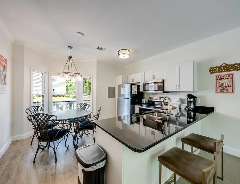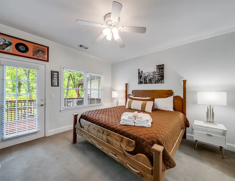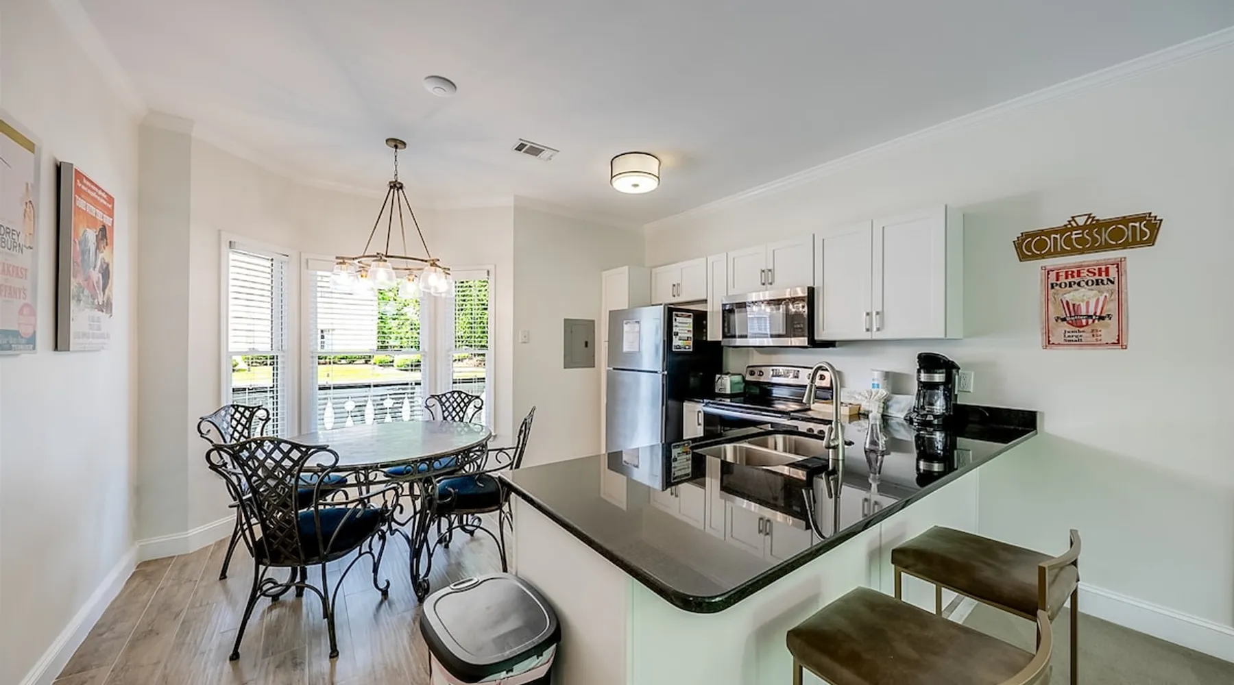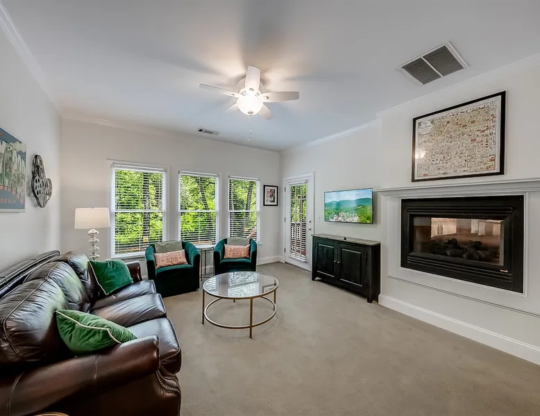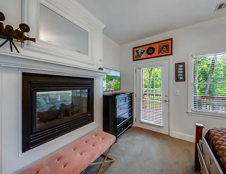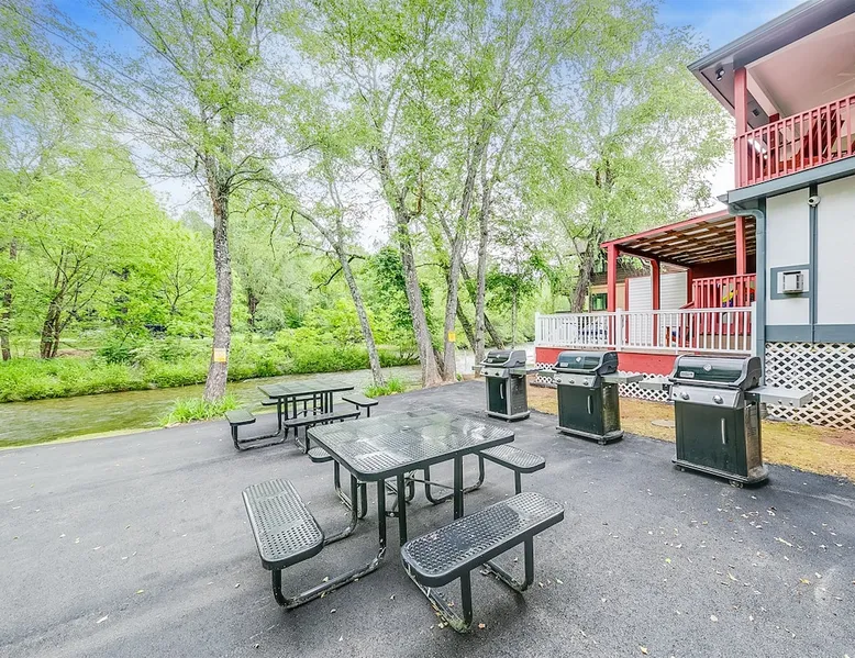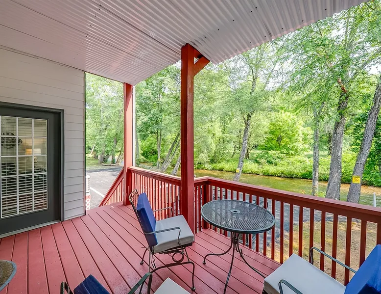 Enjoy this cozy Hollywood themed riverside condo minutes away from everything Helen has to offer.You are in the heart of all Helen has to offer. In the summer, you can walk to the access location for the Chattahoochee River Tubing. When you get back from tubing, grab a bite at the North Georgia BBQ on your way back to the condo, or choose from one of the many other restaurants nearby. The space You are in the heart of all Helen has to offer. In the summer, you can walk to the access location for the Chattahoochee River Tubing. When you get back from tubing, grab a bite at the North Georgia BBQ on your way back to the condo, or choose from one of the many other restaurants nearby. Sit out on the deck and enjoy the peacefulness as you watch the river flowing by. Grill out on the provided grill while you enjoy a glass of wine from one of our local wineries. There is so much to see and do in Helen. For the kids (and adults), there is the Alpine Coaster and several locations to play mini golf. Enjoy strolling the streets of Helen - whatever the season - and do some shopping or grab a funnel cake. Helen is a great location for family fun anytime of year. Come & visit during Oktoberfest where you can try German foods & beer, listen to authentic German music, and have the time of your life. If you prefer to enjoy nature and the more serene side of the area, there are some amazing hiking trails around Helen and outstanding waterfalls: Anna Ruby Falls near Unicoi State Park, Duke Creek Falls, or Raven Cliff Falls. There is something for everyone in Helen; make it your next vacation! Living Room - Double-Sided Fireplace with Gas Logs - Smart TV with Streaming Capability (sign-in with your own accounts) - Leather Couch - Views of Chattahoochee River - Easy Access to Deck Kitchen & Dining Area - Essentials Provided - Refrigerator & Freezer - Microwave - Stove & Oven - Dishwasher - Drip Coffee Maker - Coffee Mugs - Glasses - Silverware - Dishware - Toaster - Dining Table Bedroom - Queen Bed - Double-Sided Fireplace with Gas Logs - Smart TV with Streaming Capability (sign-in with your own accounts) - Dresser - Easy Access to Deck Bathroom - En Suite - Essentials Provided - Stand In Shower - Stacked Washer / Dryer Deck - Overlooks Chattahoochee River - Patio Table - Stairs leading down to common area & river - BBQ Grill (shared at the common area by the river) Guest access Guest has access to the entirety of the suite. Other things to note 25+ age requirement for lead guest. No exceptions. This property is not pet-friendly. No exceptions. Digital rental agreement will be required to sign and complete after property is booked. This is a ground level unit. Parking available for 2 vehicles.