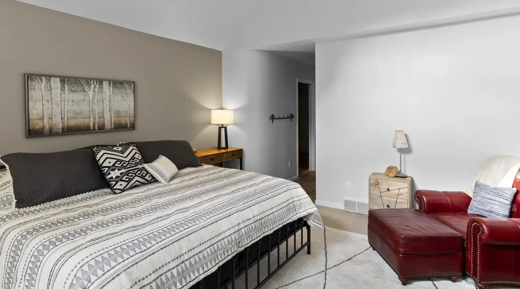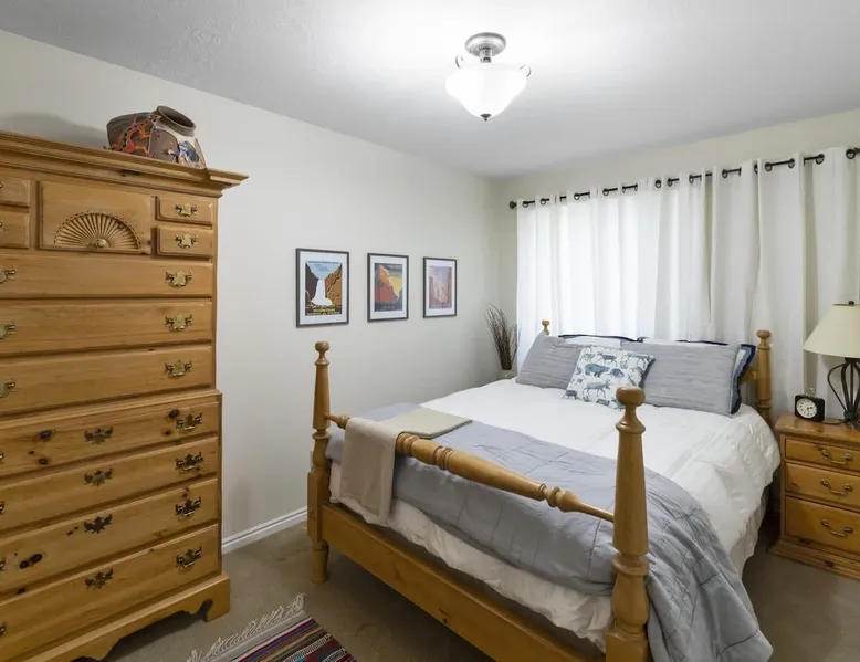Experience incredible adventures with this well-appointed multi-story vacation home that is the ideal gateway for your one-of-a-kind Utah getaway. Situated between spectacular mountains and cityscapes, you and your group will be spoiled for choice with unlimited entertainment options. This spacious 4 bedroom home is perfect for those wanting to surround themselves with mountains that aren’t just beautiful and have miles of skiable terrain but are gorgeous even without the snow. The space Exciting adventures await with this well-appointed 4 bedroom, 3.5 bathroom home that your family or friends are sure to fall in love with. After a fun day of exploration, stretch out in the family room with a large sectional sofa and comfortable armchair seating. Enjoy the company of your loved ones while watching your favorite movie or show on the flat-screen TV. The chef in your group will adore the fully-equipped kitchen with plenty of countertop space and modern appliances, where they can whip up a delicious homemade meal. Enjoy your dinner in the dining area as you exchange stories of your adventurous day in Utah. Afterward, enjoy a nightcap on the private outdoor deck, where you can take in fresh air while gazing at the gorgeous night sky. For a truly relaxing experience, soak your aching muscles in the deluxe outdoor hot tub that is sure to melt your stress away. For a night of peaceful rest, head upstairs to the upper-level floor of the home. The master suite features a lovely king-size bed, armchair seating, a flat-screen TV, as well as an en suite bathroom with a vanity table and a modern walk-in shower. The second bedroom, on this floor, has a queen-size bed, ample storage space, and a flat-screen TV. The third bedroom also has a queen-size bed and plenty of closet space. There is a shared full bathroom with single vanity and a shower/tub combo around the corner from both rooms. Additional guests can make their way to the lower-level floor of the condo, where you will have access to a bedroom with two full-size beds, a twin over queen size bunk bed, a flat-screen TV, and an en suite bathroom with double vanity and a walk-in shower. A laundry room with a washer/dryer combo, and a half bathroom, on the main floor of the home, are available during your stay. Guest access Guest will have access to the entire home, outdoor deck, and the private hot tub. You will also have access to two parking spots in the in the driveway. There is also a neighborhood overflow lot located at the East end of the entry street. Please note that parking in the garage is not allowed and the fireplace is not accessible to guests, we apologize. Other things to note Please note that parking in the garage is not allowed and that the fireplace is not accessible to guests, we apologize. Please note that the tub is serviced between guests. Sometimes the tub is just chemically treated, but sometimes it has to be drained and refilled. Because of this, please note that the tub may be cold on your arrival and may not be hot on the first night of your stay. As such, if you wish to use it, please ensure you turn it on and turn up the temperature when you arrive. Be sure to keep the cover closed at all times when the tub is not in use! Please keep in mind that if you plan to ski, you are responsible for verifying the ski resorts' opening and closing dates.
