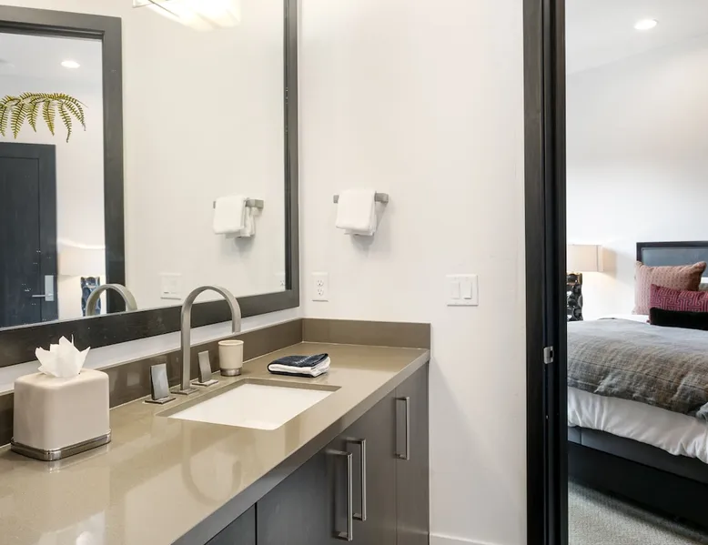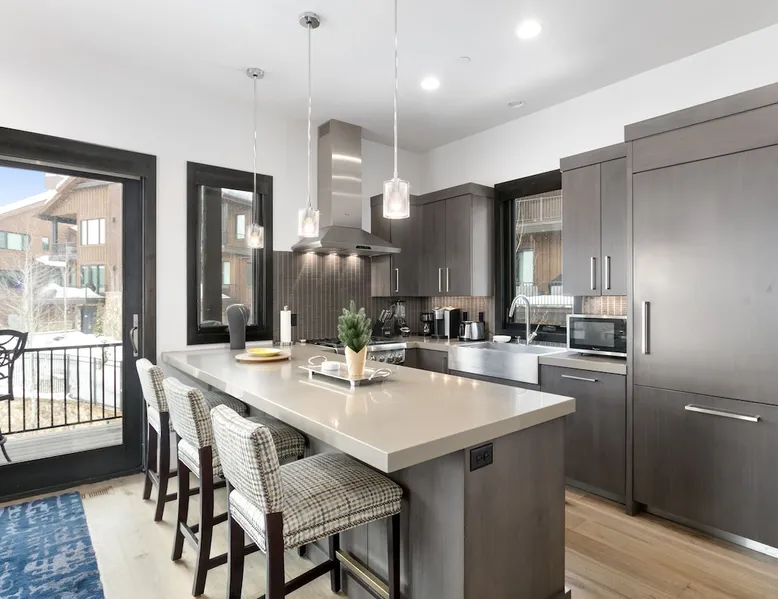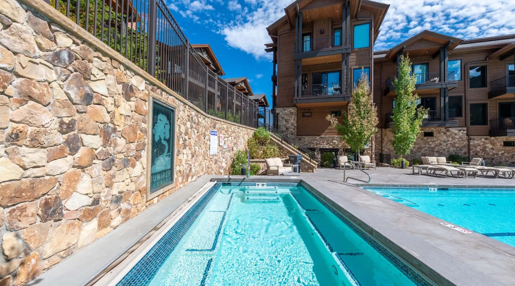 Located in the exclusive community of Juniper Landing this contemporary townhome offers an elegant home away in an ideal location. The community is located on the Canyons Golf course and a very short (0.1 miles, 3 minutes) walk to the Frostwood Gondola (your gateway to Park City Mountain). The personal development has a gorgeous, uncrowded year-round outdoor heated pool and hot tub and a fully equipped fitness room. The perfect place to enjoy all the best Park City has to offer. The space Located in the exclusive community of Juniper Landing this contemporary townhome offers an elegant home away in an ideal location. The community is located on the Canyons Golf course and a very short (0.1 miles, 3 minutes) walk to the Frostwood Gondola (your gateway to Park City Mountains’ 7300 skiable acres). The luxury residence offers an ideal space, wonderful for gatherings of family and friends with plenty of room for everyone to spread out in ultimate comfort. You’ll appreciate the superb craftsmanship of the deluxe home, including multiple decks, patios, and views. The heart of the three-level home is the second level, relax in the living room, prepare feasts in the sumptuous kitchen and play games around the dining table. The fully equipped gourmet kitchen is appointed with high-end appliances. There is also a half bath situated on this floor. Enjoy relaxing in the afternoon sun on the balcony year-round, and summer dining al-fresco. The views from the room open up to the large patio outside with relaxing seating and views of the pool, perfect for sharing stories after a day of adventuring in the resort or around town. The master bedroom on the top floor is spacious and elegant. The king bed is provided with a private exit to the upper balcony. The modern ensuite bathroom is designed to lavish you with a beautiful bathing area and luxurious design. The second upper bedroom comprises one queen with its own ensuite. The third bedroom is situated on the main level and features a twin bunk with a trundle bed. There are flat-panel TVs in all bedrooms with cable and internet streaming service options. The intimate development has a gorgeous, uncrowded year-round outdoor heated pool (one of the best in the area), hot tub, and a fully equipped fitness room. And you will enjoy luxury touches that are the hallmark of Luxury Mountain Destinations / Canyons Village Rentals, including luxury L'Occitane amenities, real down comforters (please let us know should you have allergies and we will substitute down alternative), high thread count luxury linens, robes, and more. This stunning unit, ideally located, is guaranteed to rejuvenate and pamper you in your private mountain retreat. Book it now and enjoy. Please note: > Property is non-smoking, no pets > Staff may enter garage to collect and return trash cans ***Long term (28 night or longer) stays are only accepted April through November. Guest access You will be provided with a four digit code unique to your dates of stay Other things to note > Complimentary parking limited to one vehicle during summer > Optional housekeeping available during stay, must be arranged a minimum of two weeks in advance, additional charges apply > Personel may enter the garage to collect and return trash receptacles.