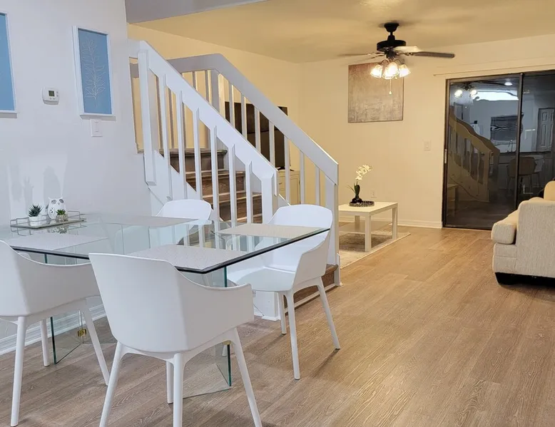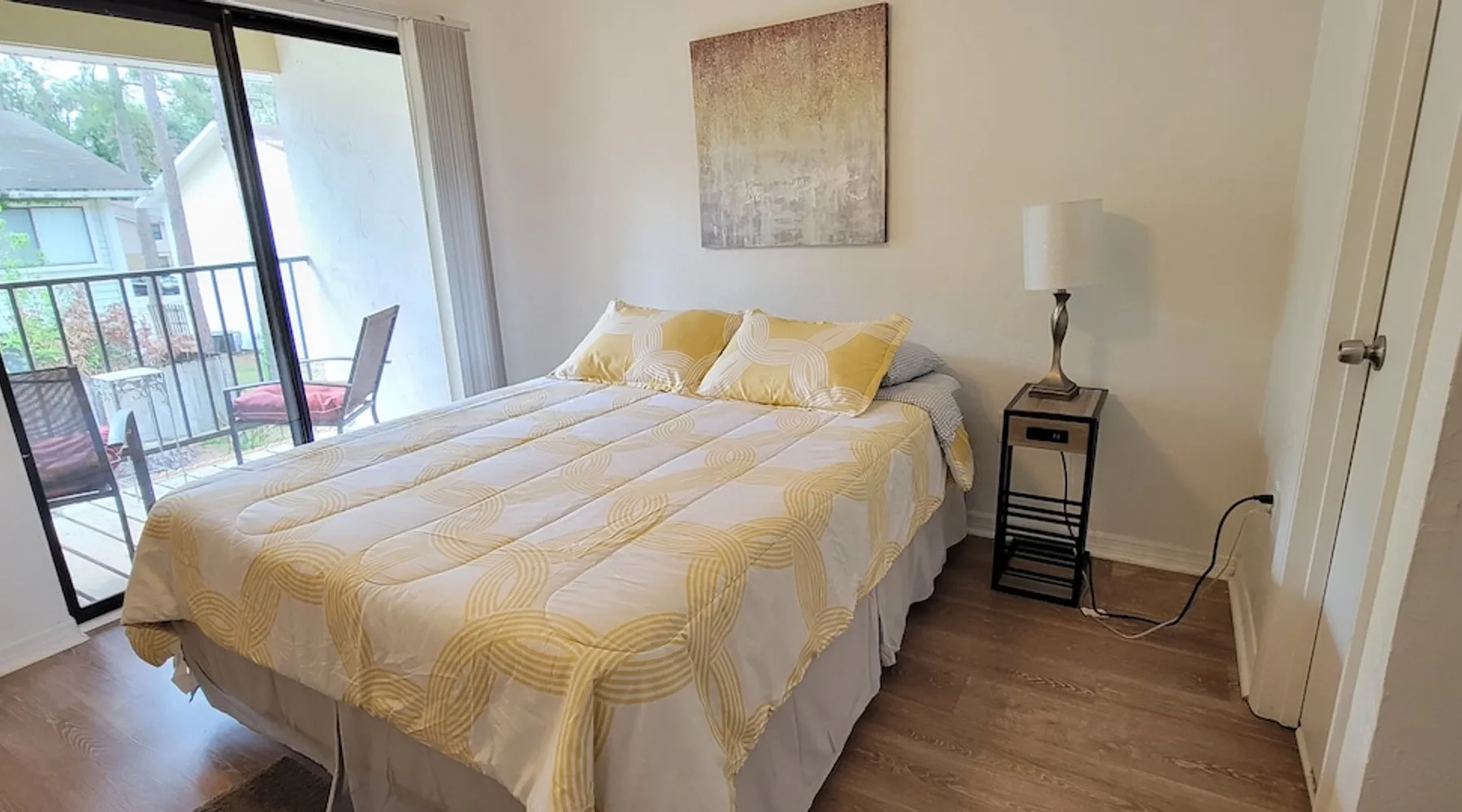 🌟Comfort in Gainesville, FL🌟Discover comfort at our 2-bedroom, 1.5-bathroom townhouse just 1 mile from the University of Florida! The master bedroom has a Queen bed, while the second bedroom features a Queen and a Full bed. Enjoy a fully equipped kitchen, a cozy living room, and a dining area for meals. Step outside to a private fenced patio, perfect for relaxing. Ideal for families, friends, or work trips, this home has everything you need for a convenient and comfortable stay in Gainesville! The space Welcome to Your Home Away from Home in Gainesville! Our renovated 2-bedroom, 1.5-bathroom townhouse is thoughtfully designed for guests seeking comfort, convenience, and a cozy stay. Located just minutes from the University of Florida, it’s perfect for game days, visiting families, and long-term residents. 🌟 Property Highlights: Bedrooms: Master bedroom: Queen-sized bed with cozy linens for restful nights. Second bedroom: Queen-sized bed and a Full-size bed, offering versatile sleeping arrangements for families or groups. Bathrooms: 1.5 bathrooms, including a full bathroom upstairs for convenience. Fully Equipped Kitchen: Everything you need to whip up meals, from cookware to modern appliances. Living & Dining Areas: A comfortable living room for relaxing and a dining table for shared meals or work-from-home needs. Private Fenced Patio: Enjoy the outdoors with a lovely patio, complete with a washer/dryer for added convenience and space to unwind. 🏠 Why Choose This Townhouse? Whether you're here for a quick visit, a family gathering, or an extended stay, this home is designed to meet all your needs. Its location near UF and local attractions makes it the ideal spot to explore Gainesville while enjoying a relaxing retreat. ✨ Book now and make this townhouse your perfect Gainesville getaway! ✨ Guest access Enjoy seamless self-check-in any time after 3 PM using our contactless Yale smart lock, designed for your convenience. Each guest is provided with a unique and personalized 4-digit code, ensuring security and ease of access throughout your stay. As our guest, you'll have full access to the entire renovated 2-bedroom, 1.5-bathroom townhouse: Bedrooms: Master bedroom: Queen-sized bed with cozy linens and access to a full bathroom. Second bedroom: Queen-sized bed and a Full-size bed for versatile sleeping options. Living Spaces: A fully equipped kitchen for preparing meals. A cozy living room to relax after a day of exploring. A convenient dining table for meals or work. Outdoor Patio: Fenced private patio with a small BBQ, perfect for outdoor dining or unwinding. This townhouse is tailored for game-day visitors, traveling families, and students or residents looking for a convenient and comfortable stay in Gainesville. Other things to note 🏡 About the Townhouse: This 2-bedroom, 1.5-bathroom townhouse is conveniently located just 1 mile from the University of Florida (UF). Fully equipped with amenities for a comfortable stay, including: A kitchen stocked with everything you need to cook. A cozy living room and dining area. A fenced patio with a washer, dryer, and BBQ grill for outdoor relaxation. Sleeping Arrangements: Master bedroom: Queen-sized bed. Second bedroom: Two Queen-sized beds and a sofa for flexible sleeping options. Perfect for game days, visiting families, or students and residents of UF. 🌟 About Gainesville and UF: Gainesville: A vibrant college town with a thriving arts scene, outdoor recreation, and a bustling downtown full of dining, shopping, and entertainment. University of Florida: A top public research university known for academic excellence and cultural attractions. Home to museums, research centers, and a top-ranked athletic program. Local highlights include parks, lakes, natural springs, and plenty of outdoor adventures. ✨ Whether you're here for a Gators game, a family visit, or to explore the charm of Gainesville, this townhouse offers the perfect home base! ✨