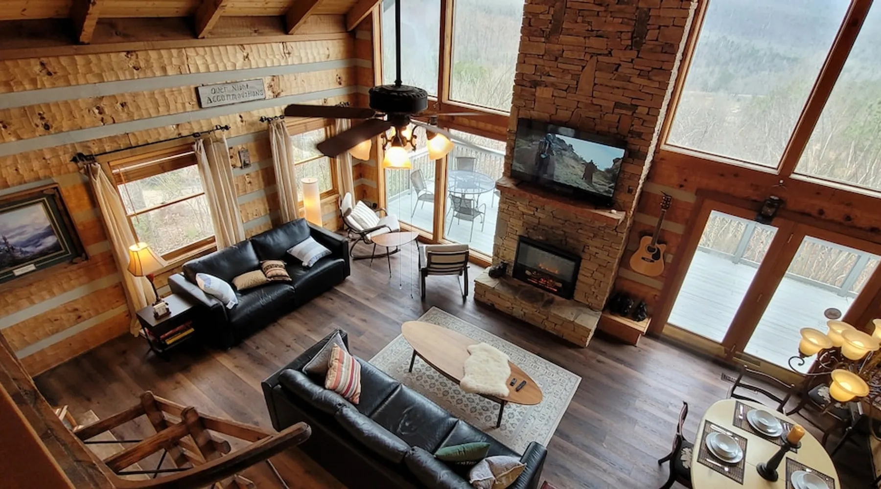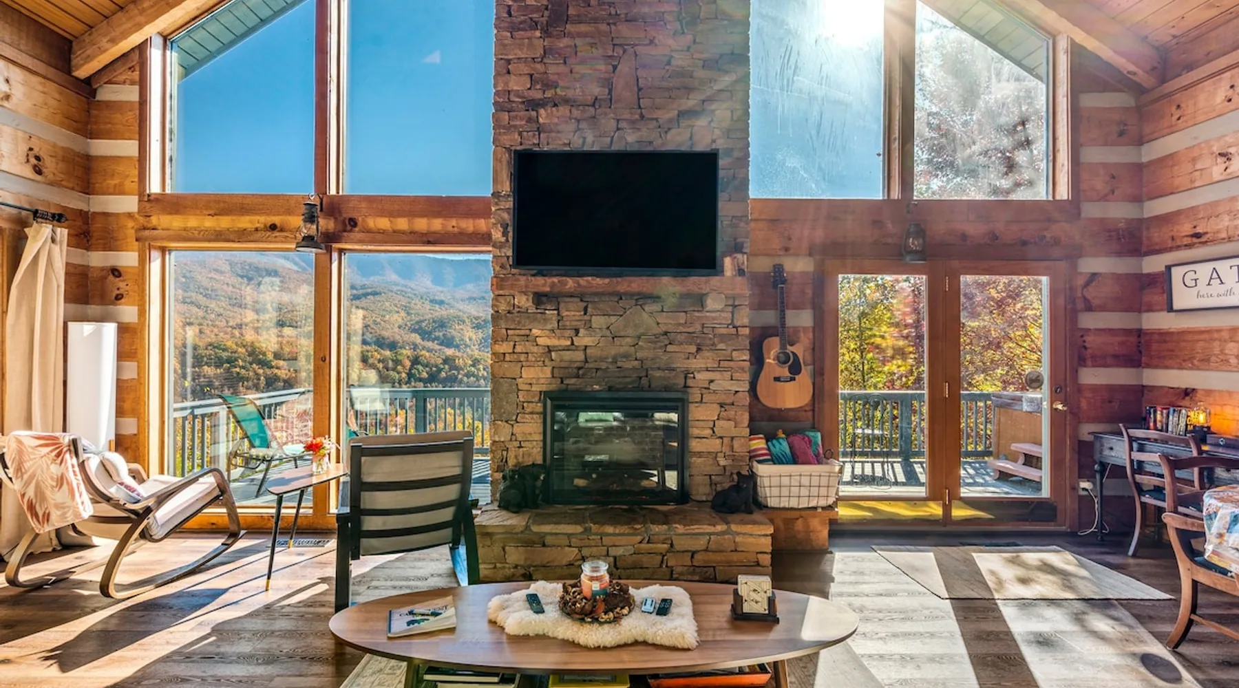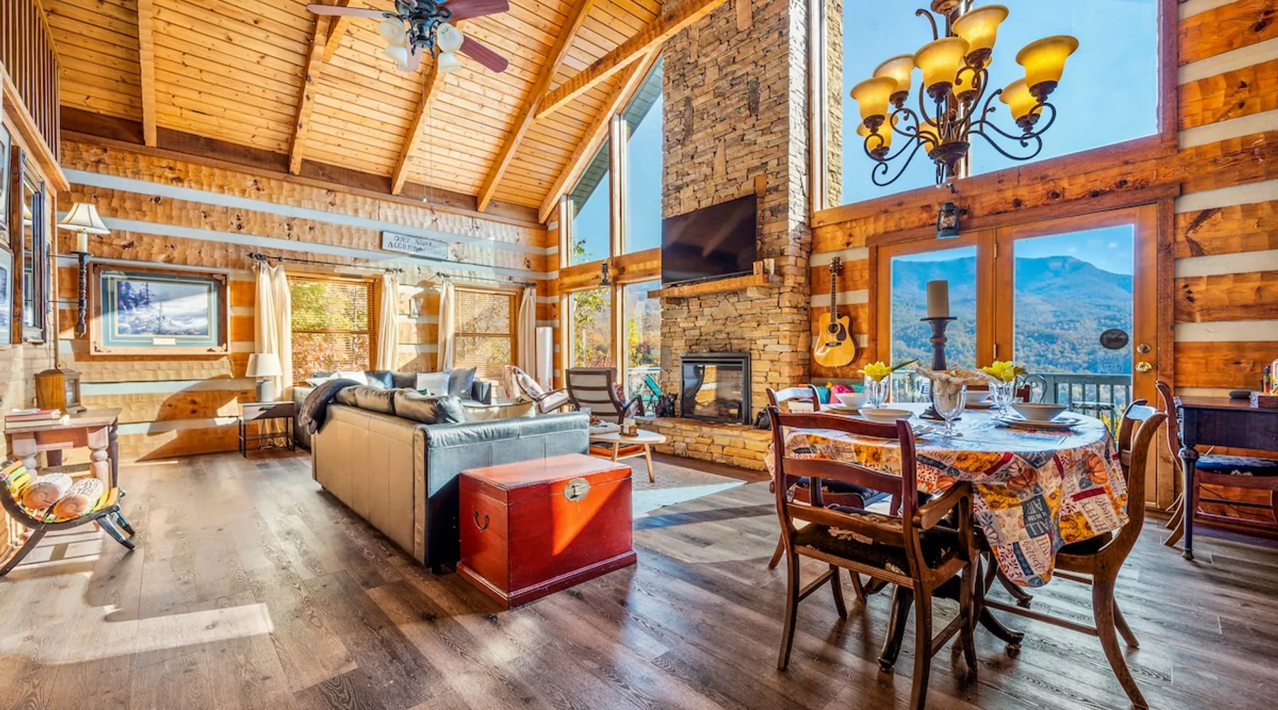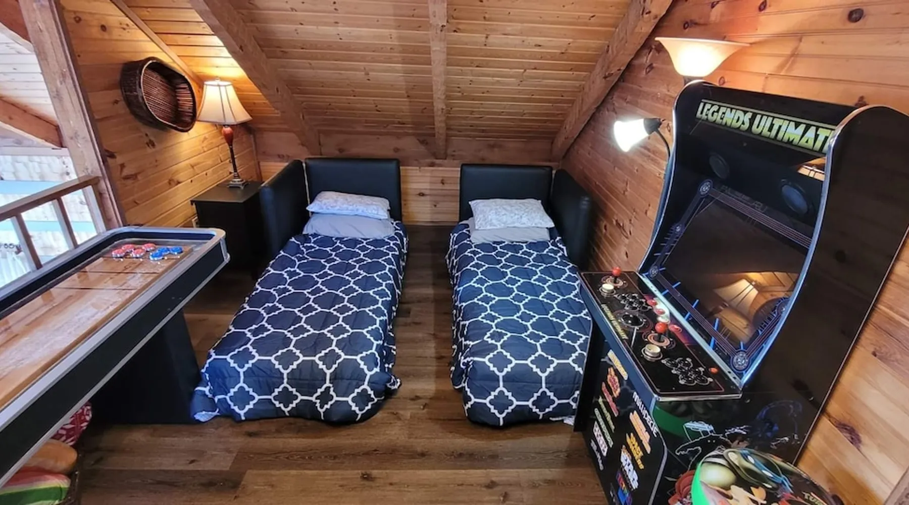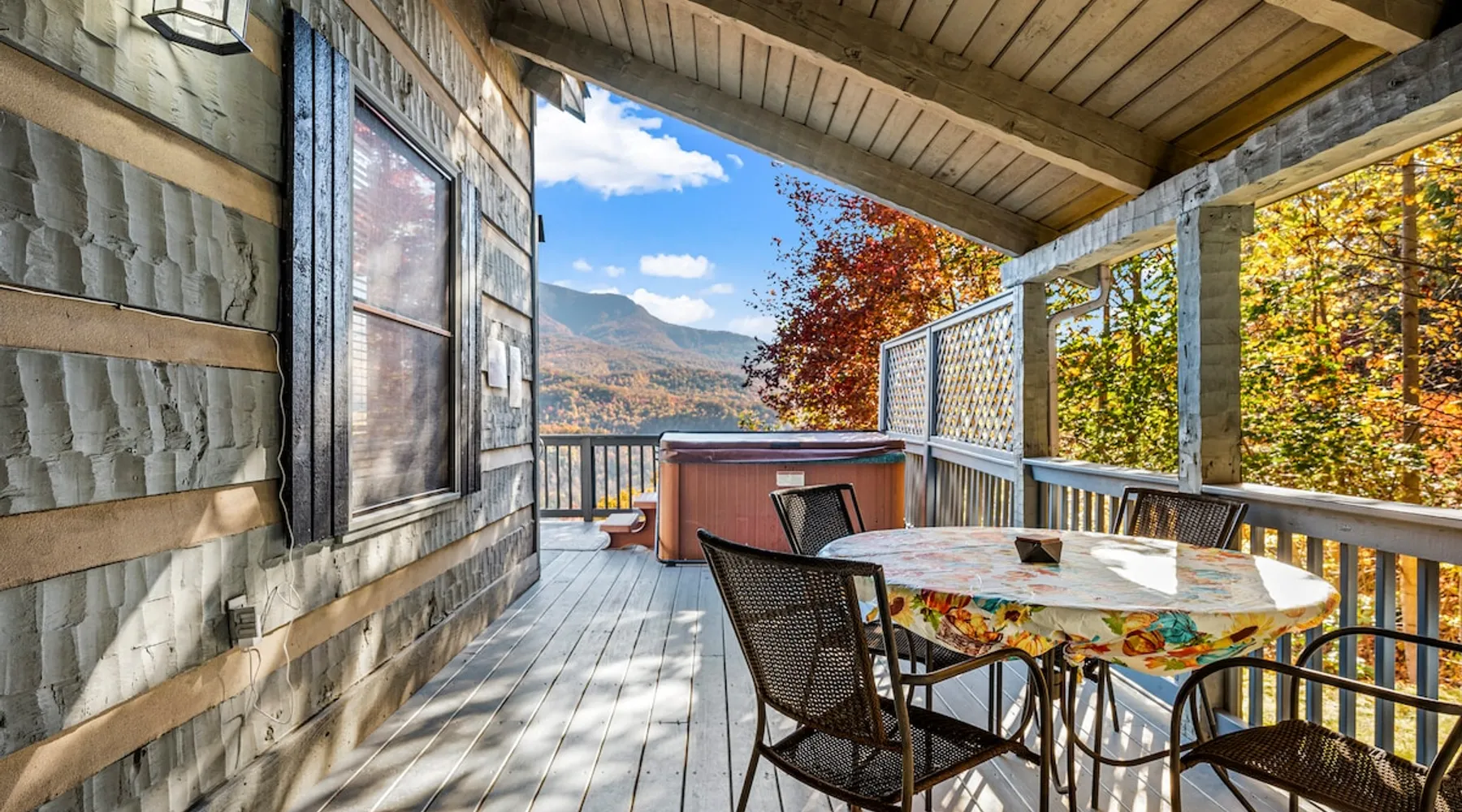 Escape the noise of Gatlinburg and find yourself relaxing on the deck at Barenberg Cabin, an updated 2BR/2.5BA dual-suite retreat. 10 miles from Gatlinburg and 20 miles to Pigeon Forge/Dollywood, enjoy it all without all the traffic. During the day savor the uninterrupted views of The Great Smoky Mountains. Dine al fresco while watching the sun sink behind the mountains and then retreat to the hot tub and soak while staring at the brilliant stars shining above. Catch a view of the local bears!. The space Barenberg's amenities include a private hot tub, game area, and awe-inspiring Smoky Mountain views. High speed internet up to 600 mbps allows you to work remotely with video conference calls. Extra perks include a sleek kitchen, Great Room and smart TVs in the suites. The game area offers shuffleboard, a 500+ multi-game arcade, several of your favorite board games and puzzles. Guest access Cobbly Nob is a secured community with 24/7 security. Parking is limited to three cars and no street parking is allowed. The road to the cabin has 2 switchbacks on paved road. No RVs are allowed. Other things to note Sleeping: There are two dual master suites (1 king, 1 queen), each with its own full bathroom. For additional sleeping beds, there is a pull-out queen size sofa in the living room and 2 pull-out twin size beds in the loft area that you can combine them together becoming a queen size bed.
