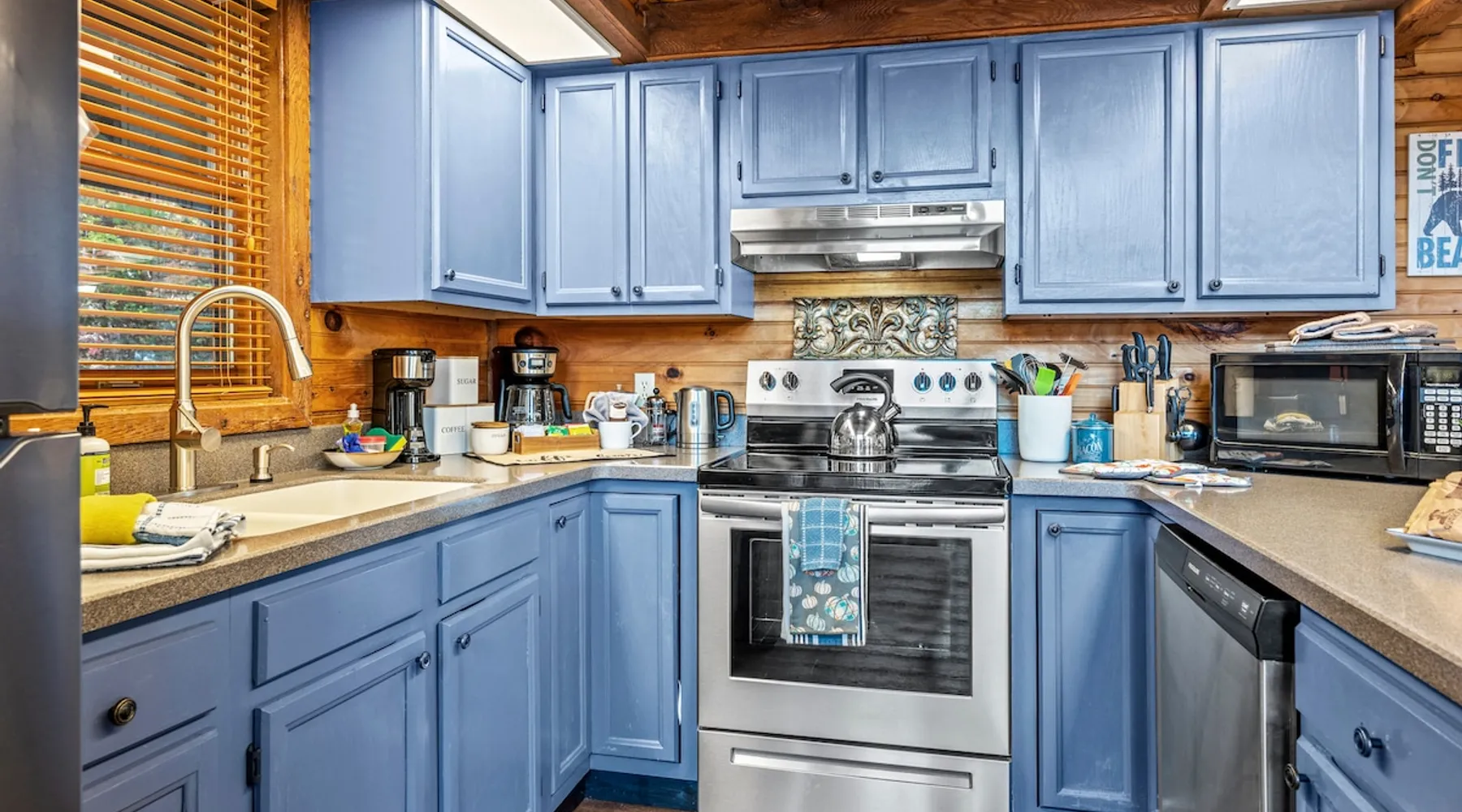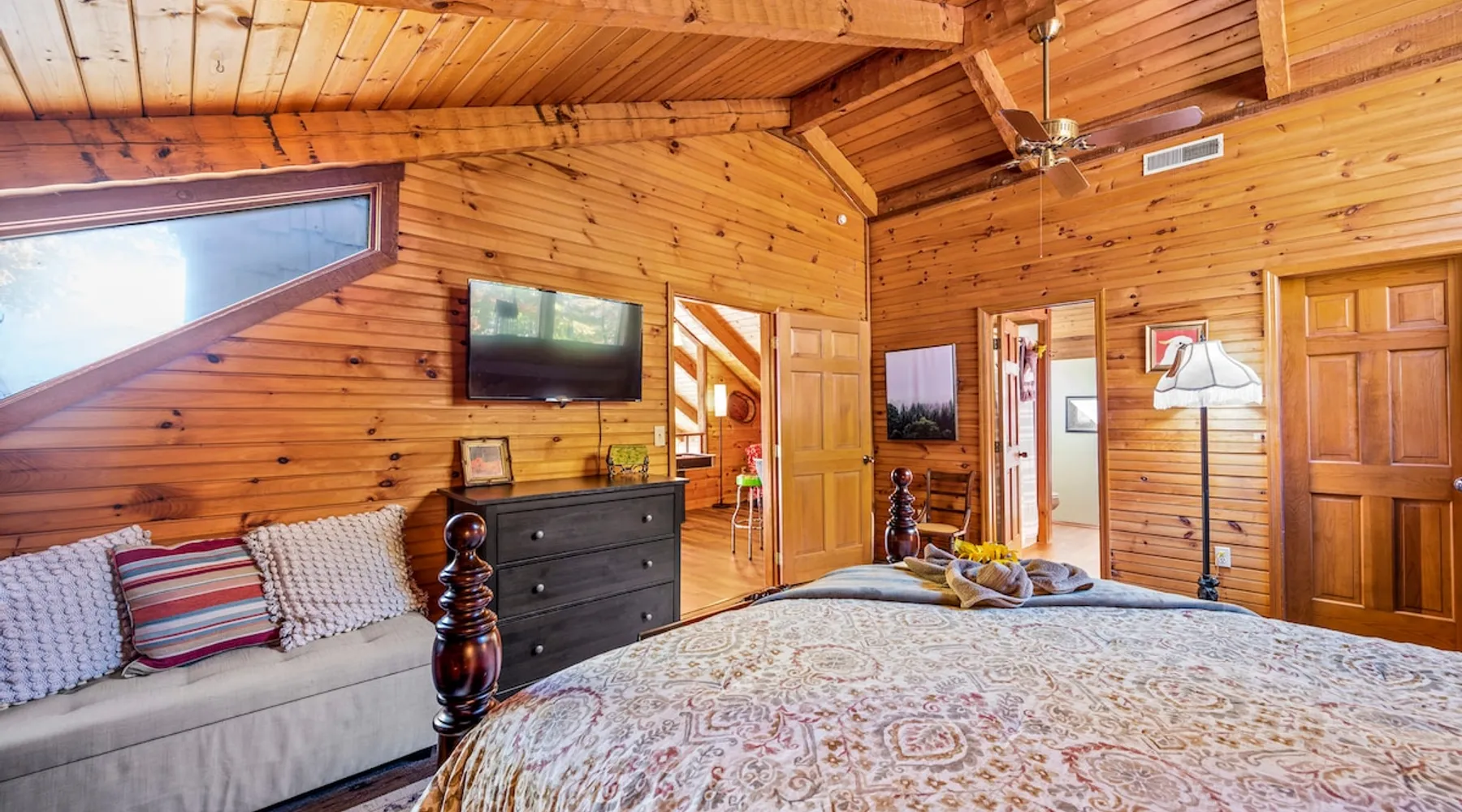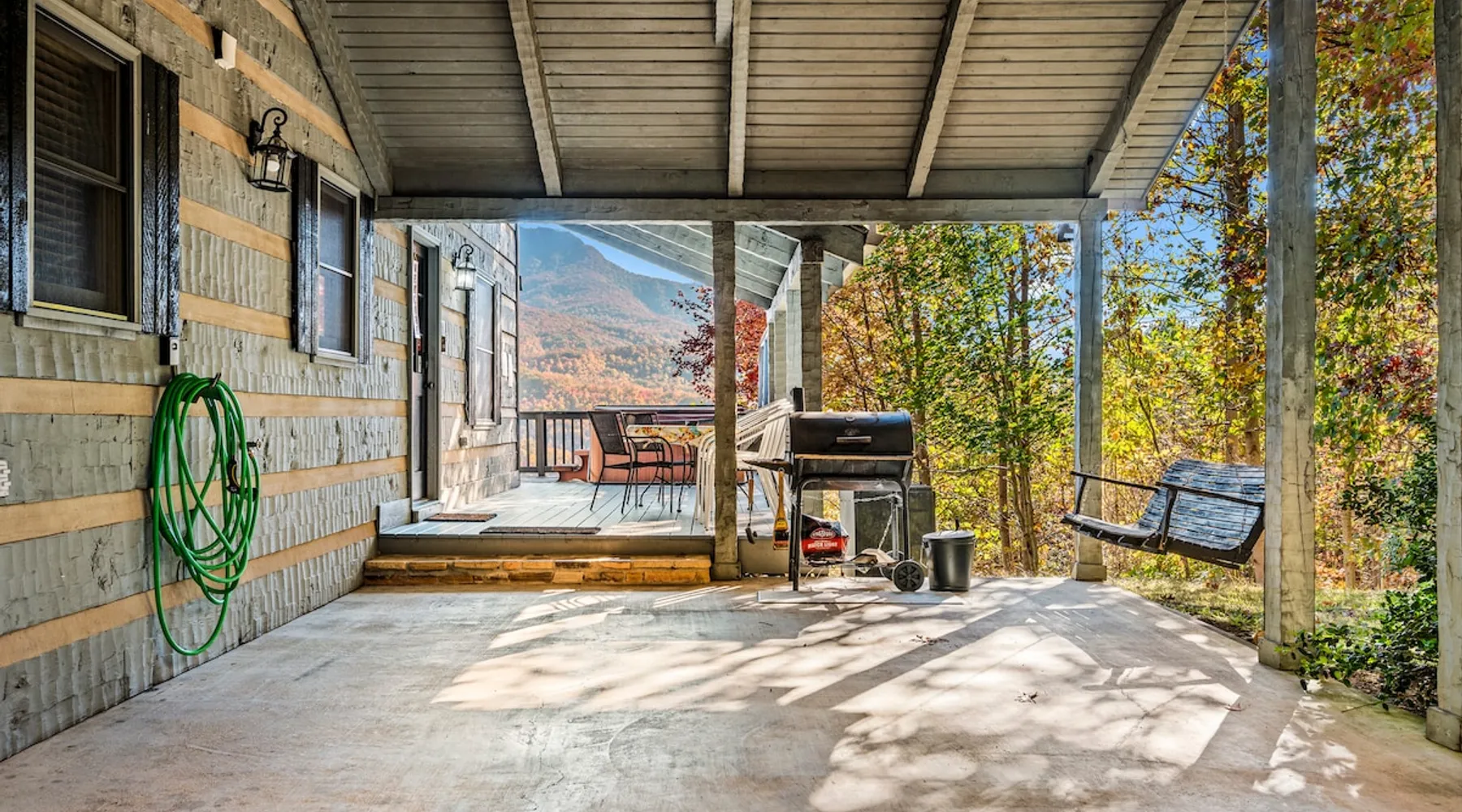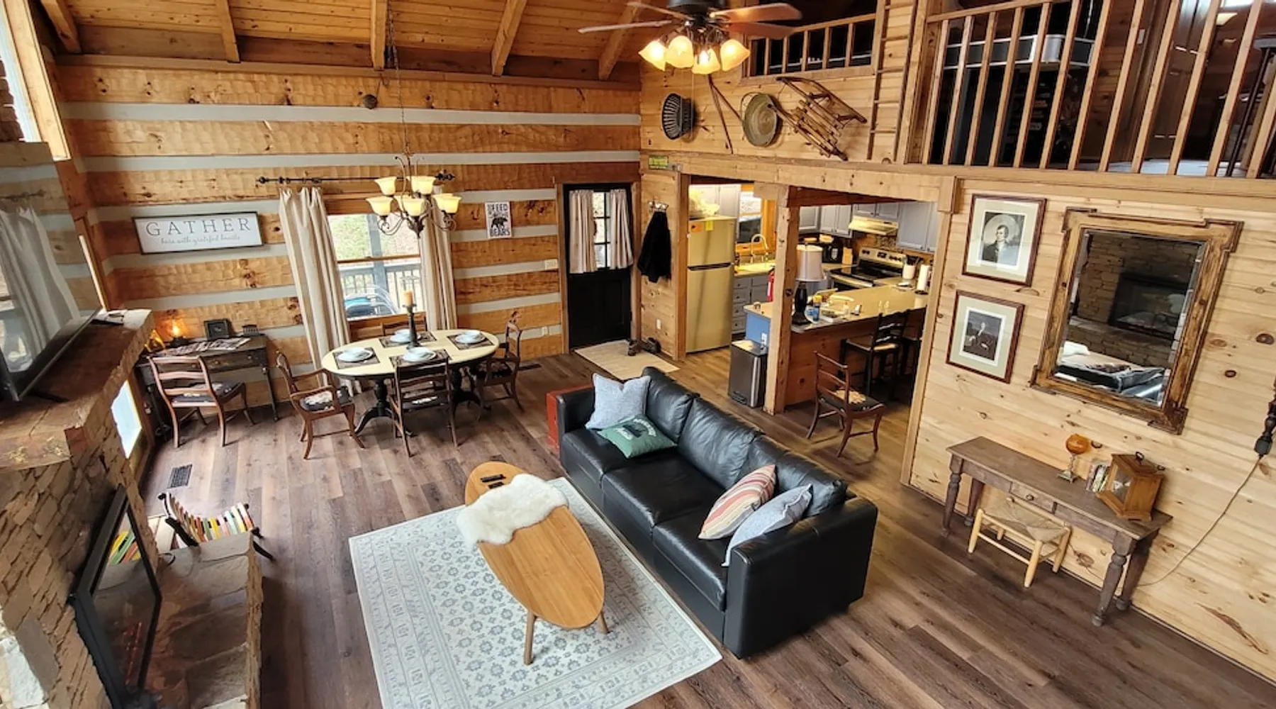 Escape the noise of Gatlinburg and find yourself relaxing on the deck at Barenberg Cabin, an updated 2BR/2.5BA dual-suite retreat. 10 miles from Gatlinburg and 20 miles to Pigeon Forge/Dollywood, enjoy it all without all the traffic. During the day savor the uninterrupted views of The Great Smoky Mountains. Dine al fresco while watching the sun sink behind the mountains and then retreat to the hot tub and soak while staring at the brilliant stars shining above. Catch a view of the local bears!. The space Barenberg's amenities include a private hot tub, game area, and awe-inspiring Smoky Mountain views. High speed internet up to 600 mbps allows you to work remotely with video conference calls. Extra perks include a sleek kitchen, Great Room and smart TVs in the suites. The game area offers shuffleboard, a 500+ multi-game arcade, several of your favorite board games and puzzles. Guest access Cobbly Nob is a secured community with 24/7 security. Parking is limited to three cars and no street parking is allowed. The road to the cabin has 2 switchbacks on paved road. No RVs are allowed. Other things to note Sleeping: There are two dual master suites (1 king, 1 queen), each with its own full bathroom. For additional sleeping beds, there is a pull-out queen size sofa in the living room and 2 pull-out twin size beds in the loft area that you can combine them together becoming a queen size bed.