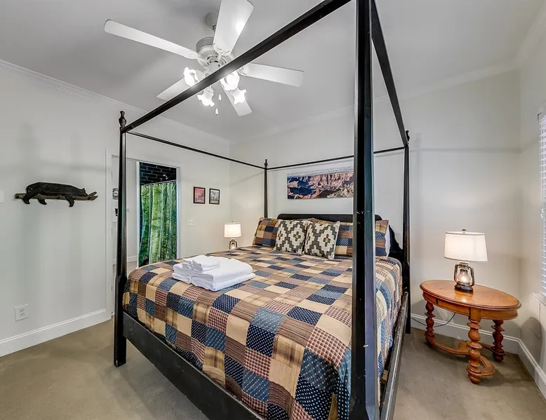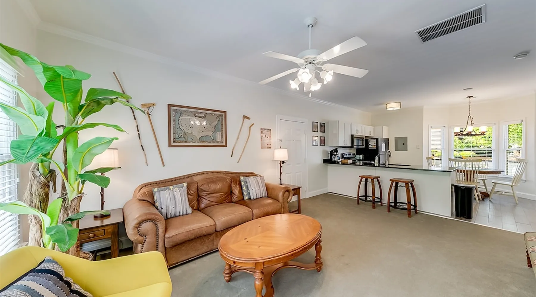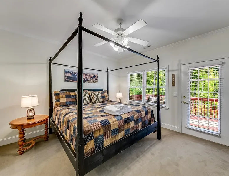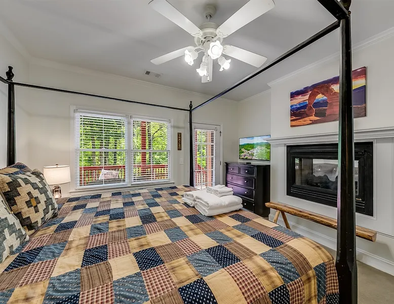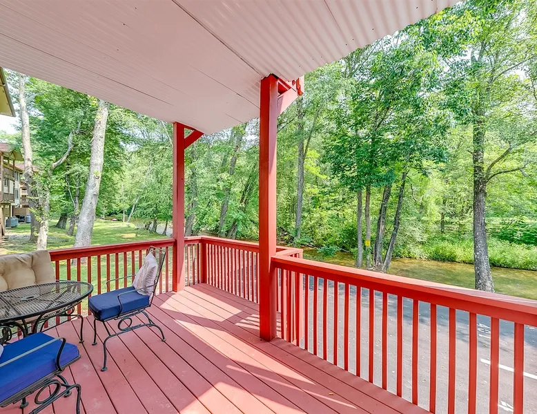 Enjoy this cozy riverside condo with a National Park theme - just minutes away from everything Helen has to offer.You are in the heart of all Helen has to offer. In the summer, you can walk to the access location for the Chattahoochee River Tubing. When you get back from tubing, grab a bite at the North Georgia BBQ on your way back to the condo, or choose from one of the many other restaurants nearby. The space You are in the heart of all Helen has to offer. In the summer, you can walk to the access location for the Chattahoochee River Tubing. When you get back from tubing, grab a bite at the North Georgia BBQ on your way back to the condo, or choose from one of the many other restaurants nearby. Sit out on the deck and enjoy the peacefulness as you watch the river flowing by. Grill out on the provided grill while you enjoy a glass of wine from one of our local wineries. There is so much to see and do in Helen. For the kids (and adults), there is the Alpine Coaster and several locations to play mini golf. Enjoy strolling the streets of Helen - whatever the season - and do some shopping or grab a funnel cake. Helen is a great location for family fun anytime of year. Come & visit during Oktoberfest where you can try German foods & beer, listen to authentic German music, and have the time of your life. If you prefer to enjoy nature and the more serene side of the area, there are some amazing hiking trails around Helen and outstanding waterfalls: Anna Ruby Falls near Unicoi State Park, Duke Creek Falls, or Raven Cliff Falls. There is something for everyone in Helen; make it your next vacation! Living Room - Double-Sided Fireplace with Gas Logs - Smart TV with Streaming Capability (sign-in with your own accounts) - Leather Couch - Views of Chattahoochee River - Easy Access to Deck Kitchen & Dining Area - Essentials Provided - Refrigerator & Freezer - Microwave - Stove & Oven - Dishwasher - Drip Coffee Maker - Coffee Mugs - Glasses - Silverware - Dishware - Toaster - Dining Table Bedroom - King Bed - Double-Sided Fireplace with Gas LogsSmart - TV with Streaming Capability (sign-in with your own accounts) - Dresser - Easy Access to Deck Bathroom - En Suite - Essentials Provided - Stand In Shower - Stacked Washer / Dryer Deck - Overlooks Chattahoochee River - Patio Table - Wicker Chair - Stairs leading down to common area & river - BBQ Grill (shared at the common area by the river) Guest access Guest has access to the entirety of the suite. Other things to note 25+ age requirement for lead guest. No exceptions. This property is not pet-friendly. No exceptions. Digital rental agreement will be required to sign and complete after property is booked. This is a ground level unit. Parking available for 2 vehicles.