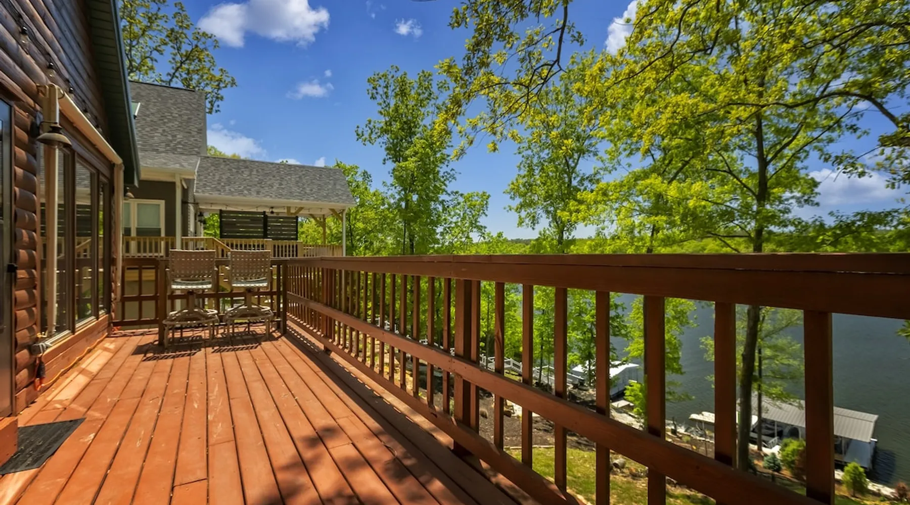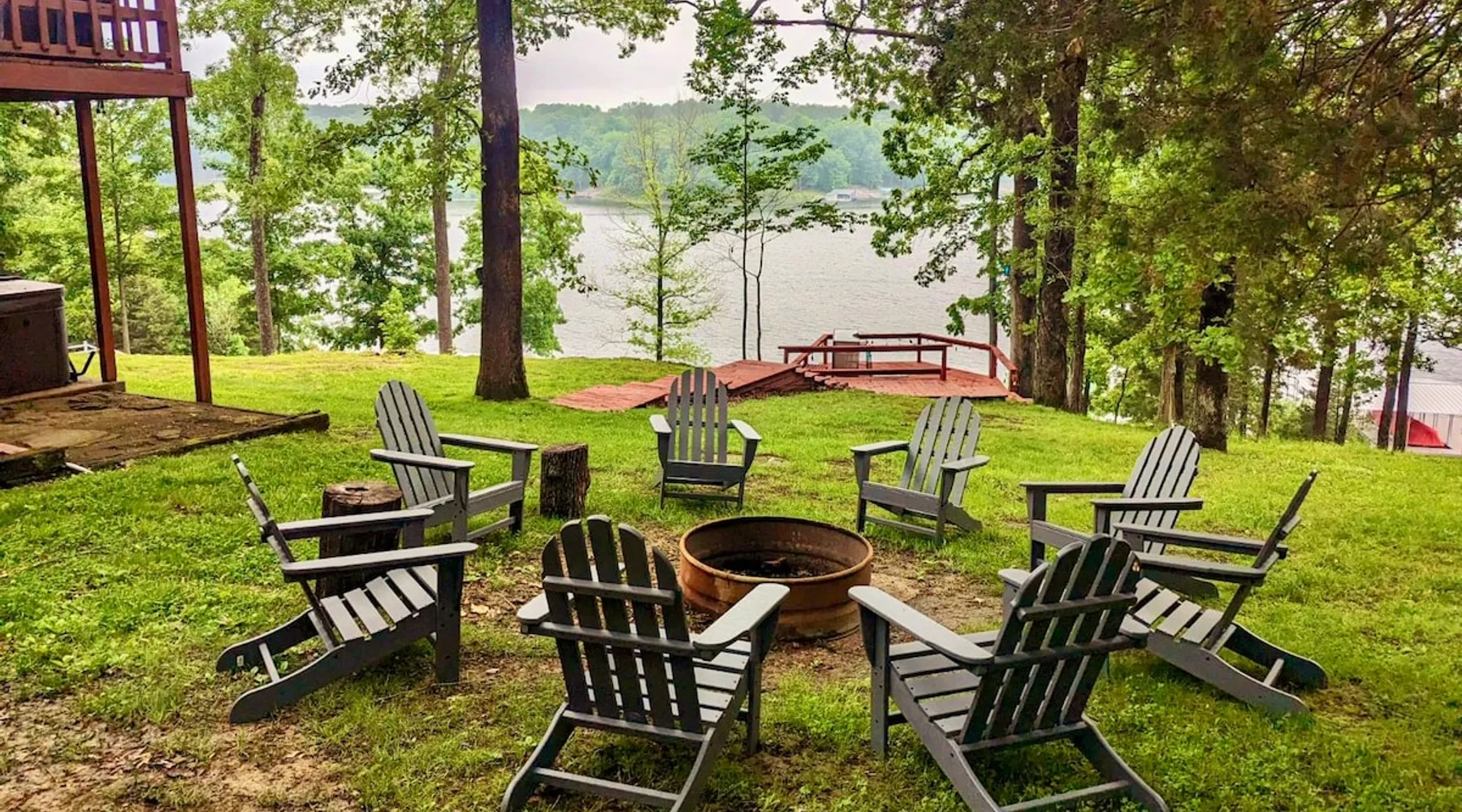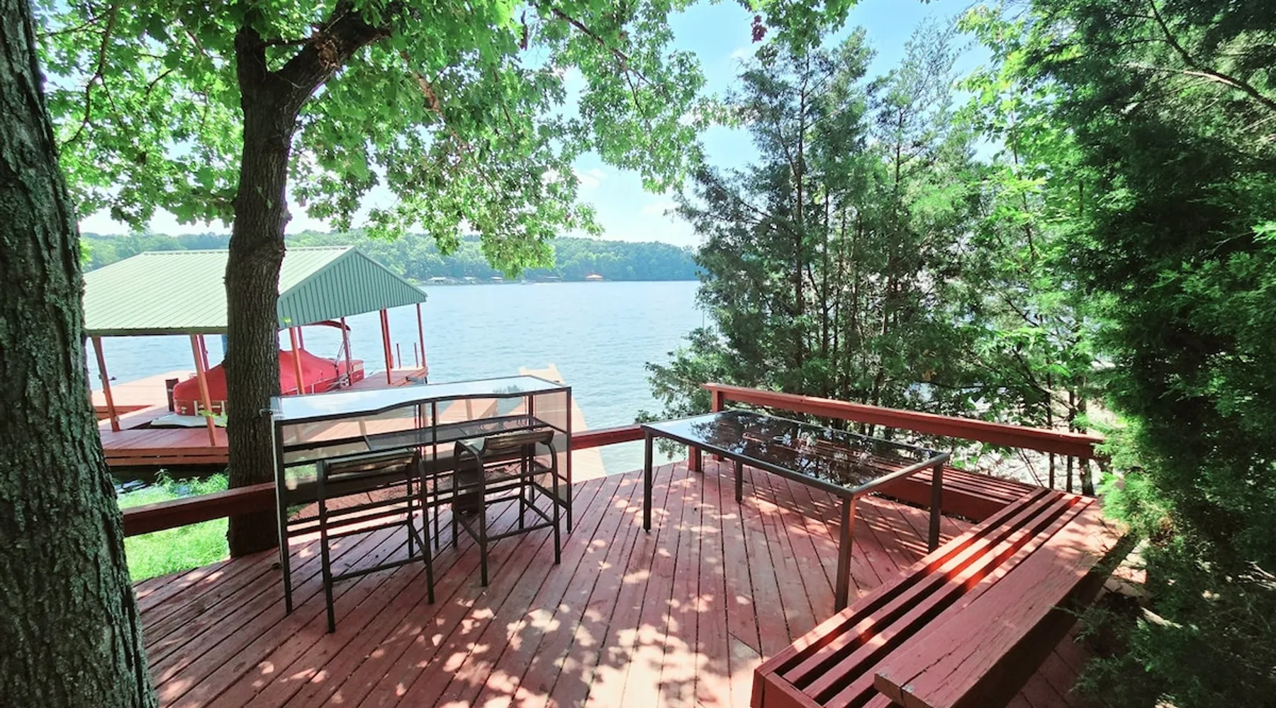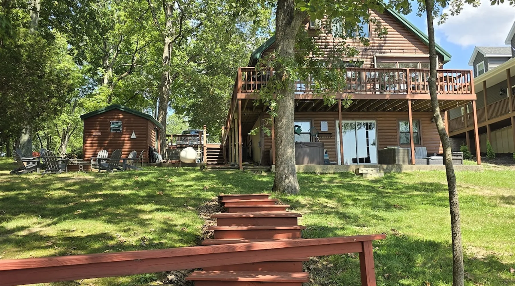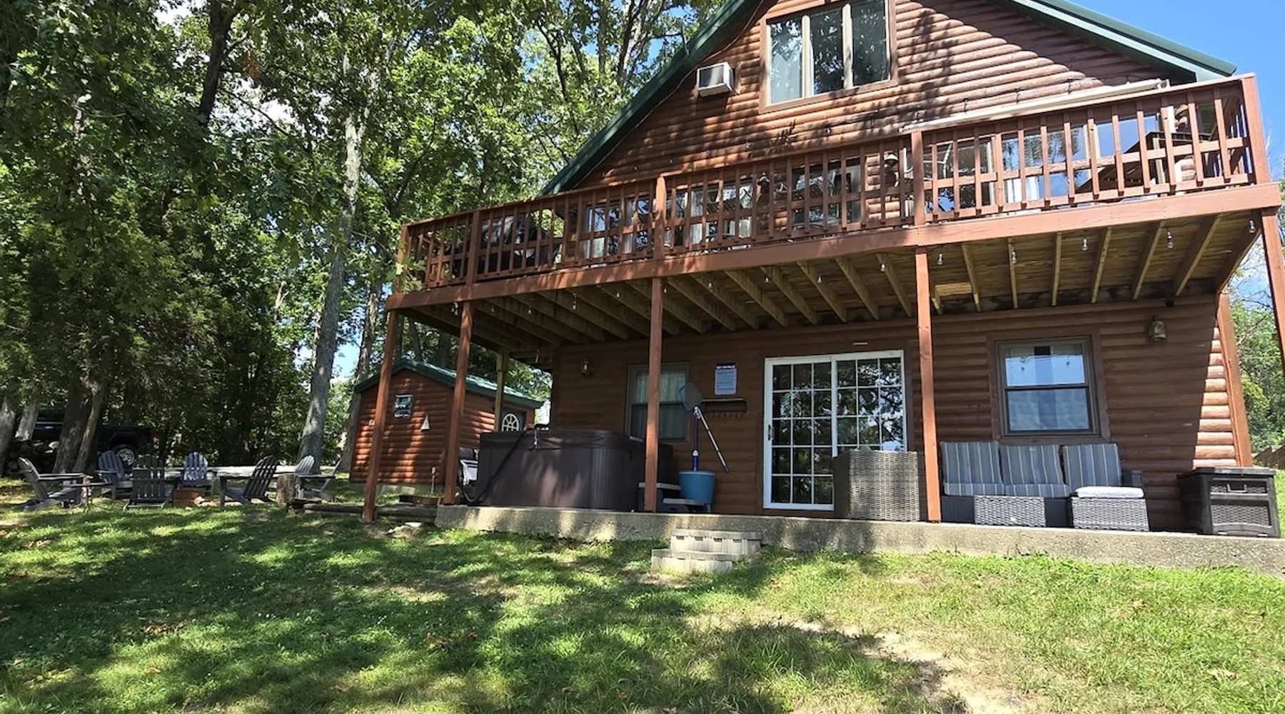 Escape the city and unwind at Lakeview Landing, a beautiful 2,100 sq ft log home nestled among tall trees on Lake of Egypt. Sleeping up to 10 guests across five bedrooms, this spacious retreat features floor-to-ceiling windows, modern amenities, and a 7-person hot tub with peaceful lake views. Enjoy your private dock with an extra slip for your boat or rental, and four kayaks for endless fun on the water. Perfect for families or groups seeking comfort, nature, and lakefront relaxation. The space Beautiful 2100 sq. ft. log house on shores of Lake of Egypt SLEEPING ARRANGEMENTS: 1 Queen Bed + ensuite bathroom on main level 1 King Bed in 2nd bedroom in upper level + daybed 1 Queen Bed in 3rd bedroom in upper level 1 Queen Bed in 4rth bedroom in lower level 1 Twin over full size bunk bed in 5th bedroom in lower level MAIN LEVEL LAYOUT: Living Room with propane fireplace Kitchen & Dining Area Office working space with USB ports Walkout Deck with large charcoal grill and dining table + chairs for 4 Master Suite featuring queen bed & ensuite full bathroom UPPER LEVEL LAYOUT: Bedroom with king bed + daybed Bedroom with queen bed with sitting area overlooking the lake Bathroom with walk-in shower LOWER LEVEL LAYOUT: Second living room with TV, DVD player, and electric fireplace Wooden game table with chess, checkers and more in addition to board & card games Kitchenette with microwave, full size refrigerator and dry bar Bedroom with queen bed and ensuite full bathroom Bedroom with 1 twin over full size bunk bed Patio walkout to the hot tub and soft seating conversation furniture. Laundry closet with full size washer and dryer OUTDOORS: Private dock with second uncovered boat slip for your own boat or boat rental 7-person hot tub with 65 jets and LED changing lights 1500 sq ft. of decking areas with multiple landings Fire pit for relaxation close to the patio Charcoal Grill 4 Kayaks for use Large Swim Mat Clean deep water for swimming off dock Great base for water skiing and lake lounging- located on the main channel It's a gentle slope of 110 steps down from the house to the dock. There are three landings with seating where you can stop, take your time and enjoy the view along the way. "KNOW BEFORE YOU GO" Check in is after 3PM. Check out is before 10AM. Rental agreement is required. PET POLICY: No pets allowed. Exterior cameras on premise. Guest access Your hosts are delighted to make this 5-bedroom luxury lakeside home exclusively yours for week-long stays or longer. All the space inside and out will be yours to use (except for one locked closet). So, be sure to make yourselves at home and enjoy the freedom and beauty of living by the wonderful Lake of Egypt. During your stay, if you need information or assistance, your hosts will be reachable by phone. As they live locally, they can provide a prompt and professional service when you need them. Other things to note A rental agreement is required with ID verification within 48 hours of booking. Access to the property is only provided after the renter's agreement is signed. Check-in is after 3 PM. Check-out is before 10 AM. Pet Policy: Absolutely no pets. Ring camera on entrance of property If guest are caught with a pet, guests may be subject to an immediate cancellation without refund. If evidence is found after your stay, there will be a $150 penalty for rule violation. Inventory: We provide a "starter package" of inventory for our cabin: 3 rolls of T.P. and 1 full roll of paper towels. BYO Beach Towels. We provide bath towels BYO Life Vests HIGHLY encouraged to ensure proper size. Firewood is available for purchase.