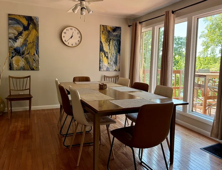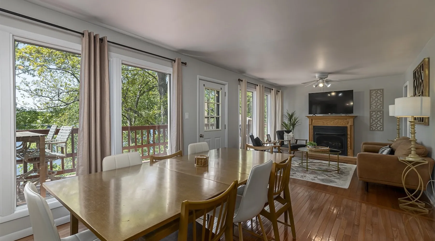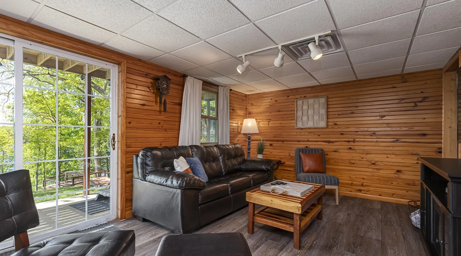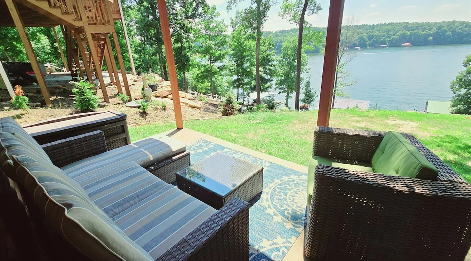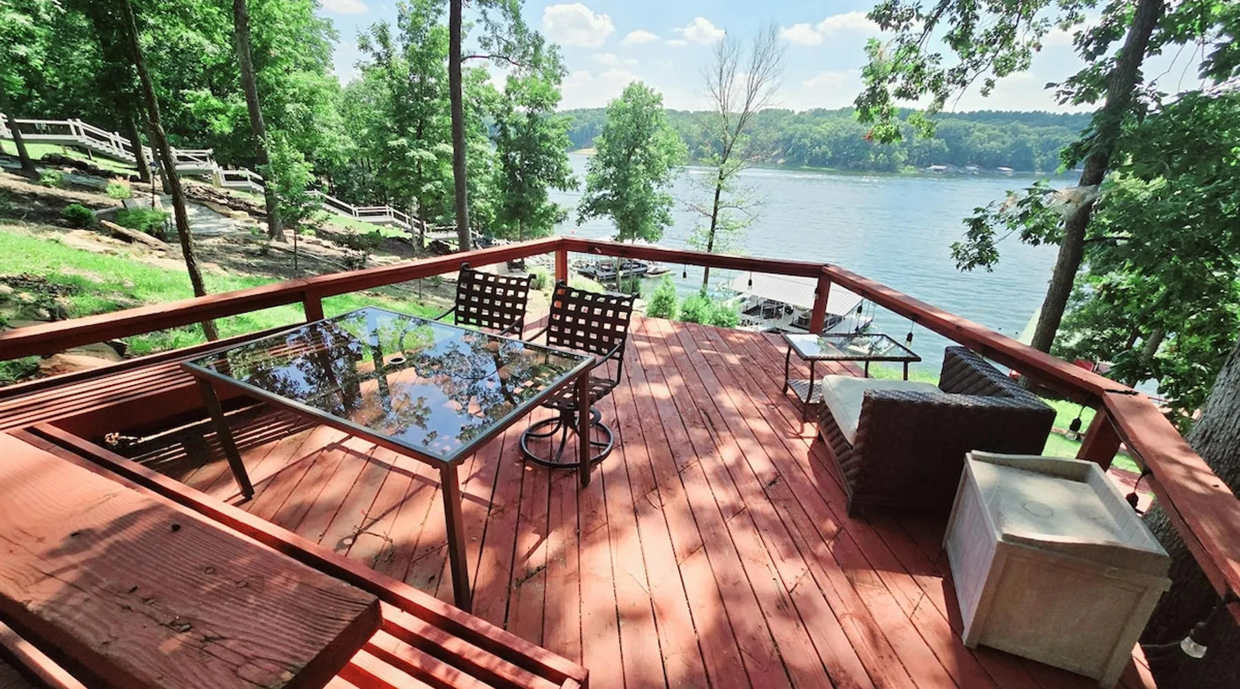 Escape the city and unwind at Lakeview Landing, a beautiful 2,100 sq ft log home nestled among tall trees on Lake of Egypt. Sleeping up to 10 guests across five bedrooms, this spacious retreat features floor-to-ceiling windows, modern amenities, and a 7-person hot tub with peaceful lake views. Enjoy your private dock with an extra slip for your boat or rental, and four kayaks for endless fun on the water. Perfect for families or groups seeking comfort, nature, and lakefront relaxation. The space Beautiful 2100 sq. ft. log house on shores of Lake of Egypt SLEEPING ARRANGEMENTS: 1 Queen Bed + ensuite bathroom on main level 1 King Bed in 2nd bedroom in upper level + daybed 1 Queen Bed in 3rd bedroom in upper level 1 Queen Bed in 4rth bedroom in lower level 1 Twin over full size bunk bed in 5th bedroom in lower level MAIN LEVEL LAYOUT: Living Room with propane fireplace Kitchen & Dining Area Office working space with USB ports Walkout Deck with large charcoal grill and dining table + chairs for 4 Master Suite featuring queen bed & ensuite full bathroom UPPER LEVEL LAYOUT: Bedroom with king bed + daybed Bedroom with queen bed with sitting area overlooking the lake Bathroom with walk-in shower LOWER LEVEL LAYOUT: Second living room with TV, DVD player, and electric fireplace Wooden game table with chess, checkers and more in addition to board & card games Kitchenette with microwave, full size refrigerator and dry bar Bedroom with queen bed and ensuite full bathroom Bedroom with 1 twin over full size bunk bed Patio walkout to the hot tub and soft seating conversation furniture. Laundry closet with full size washer and dryer OUTDOORS: Private dock with second uncovered boat slip for your own boat or boat rental 7-person hot tub with 65 jets and LED changing lights 1500 sq ft. of decking areas with multiple landings Fire pit for relaxation close to the patio Charcoal Grill 4 Kayaks for use Large Swim Mat Clean deep water for swimming off dock Great base for water skiing and lake lounging- located on the main channel It's a gentle slope of 110 steps down from the house to the dock. There are three landings with seating where you can stop, take your time and enjoy the view along the way. "KNOW BEFORE YOU GO" Check in is after 3PM. Check out is before 10AM. Rental agreement is required. PET POLICY: No pets allowed. Exterior cameras on premise. Guest access Your hosts are delighted to make this 5-bedroom luxury lakeside home exclusively yours for week-long stays or longer. All the space inside and out will be yours to use (except for one locked closet). So, be sure to make yourselves at home and enjoy the freedom and beauty of living by the wonderful Lake of Egypt. During your stay, if you need information or assistance, your hosts will be reachable by phone. As they live locally, they can provide a prompt and professional service when you need them. Other things to note A rental agreement is required with ID verification within 48 hours of booking. Access to the property is only provided after the renter's agreement is signed. Check-in is after 3 PM. Check-out is before 10 AM. Pet Policy: Absolutely no pets. Ring camera on entrance of property If guest are caught with a pet, guests may be subject to an immediate cancellation without refund. If evidence is found after your stay, there will be a $150 penalty for rule violation. Inventory: We provide a "starter package" of inventory for our cabin: 3 rolls of T.P. and 1 full roll of paper towels. BYO Beach Towels. We provide bath towels BYO Life Vests HIGHLY encouraged to ensure proper size. Firewood is available for purchase.