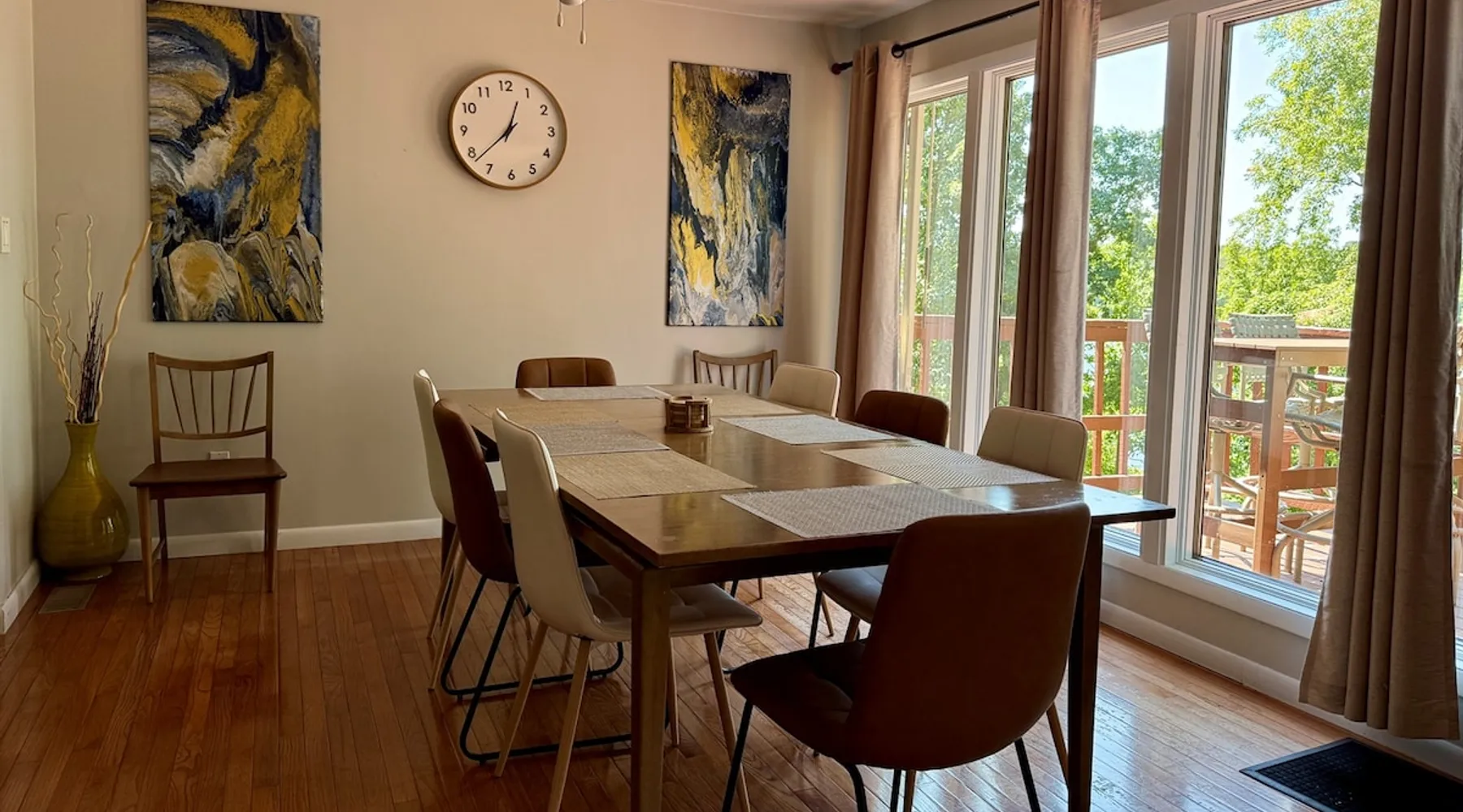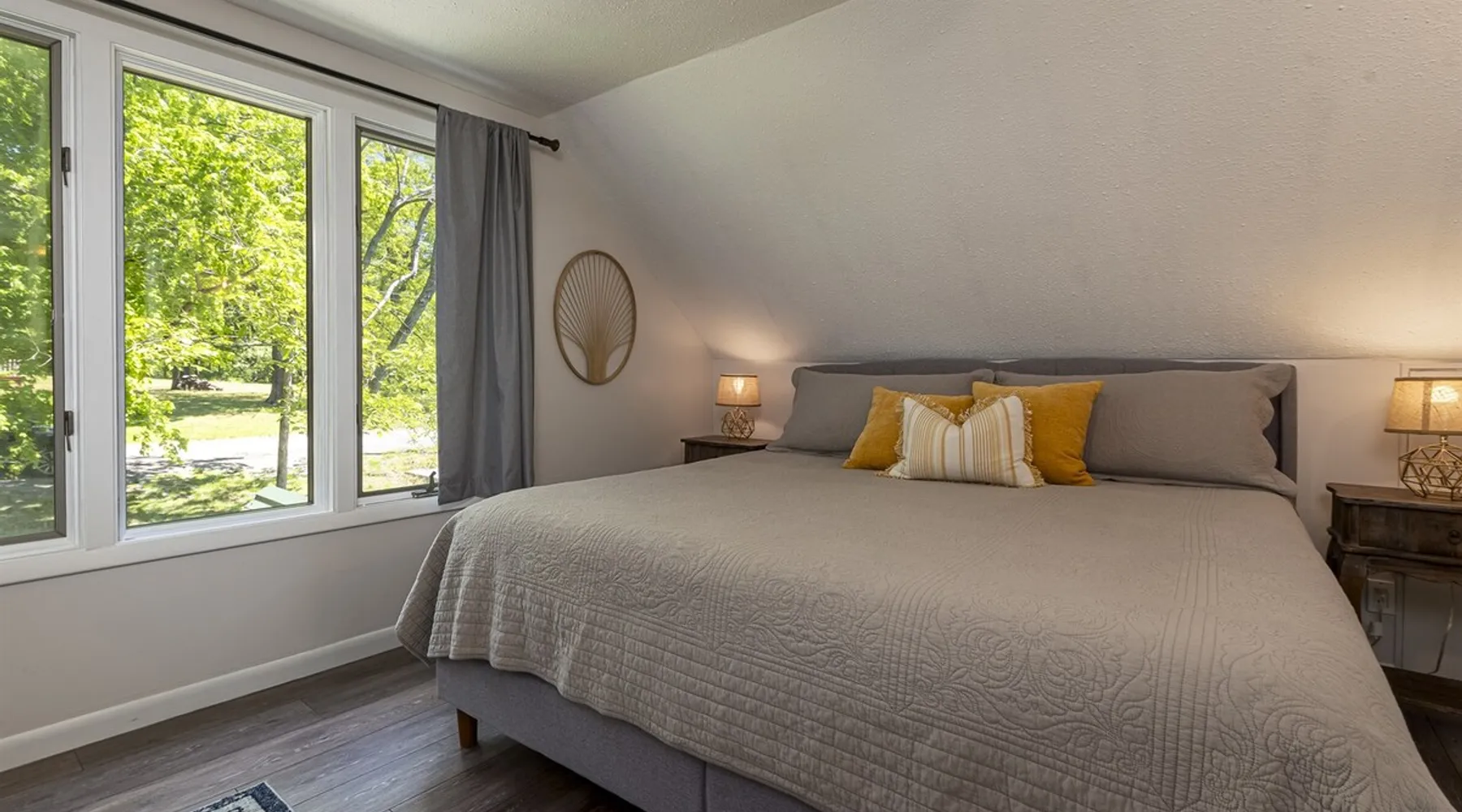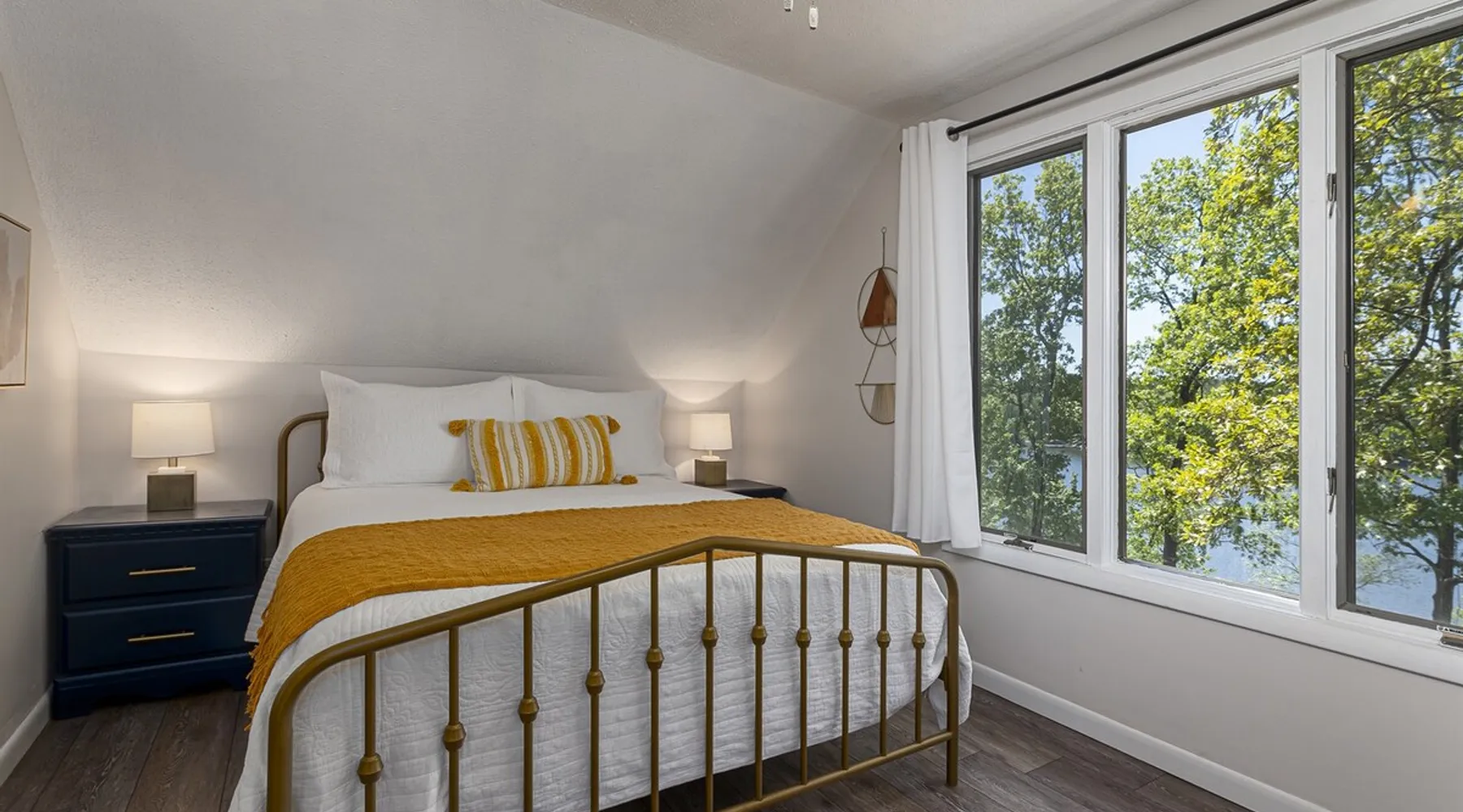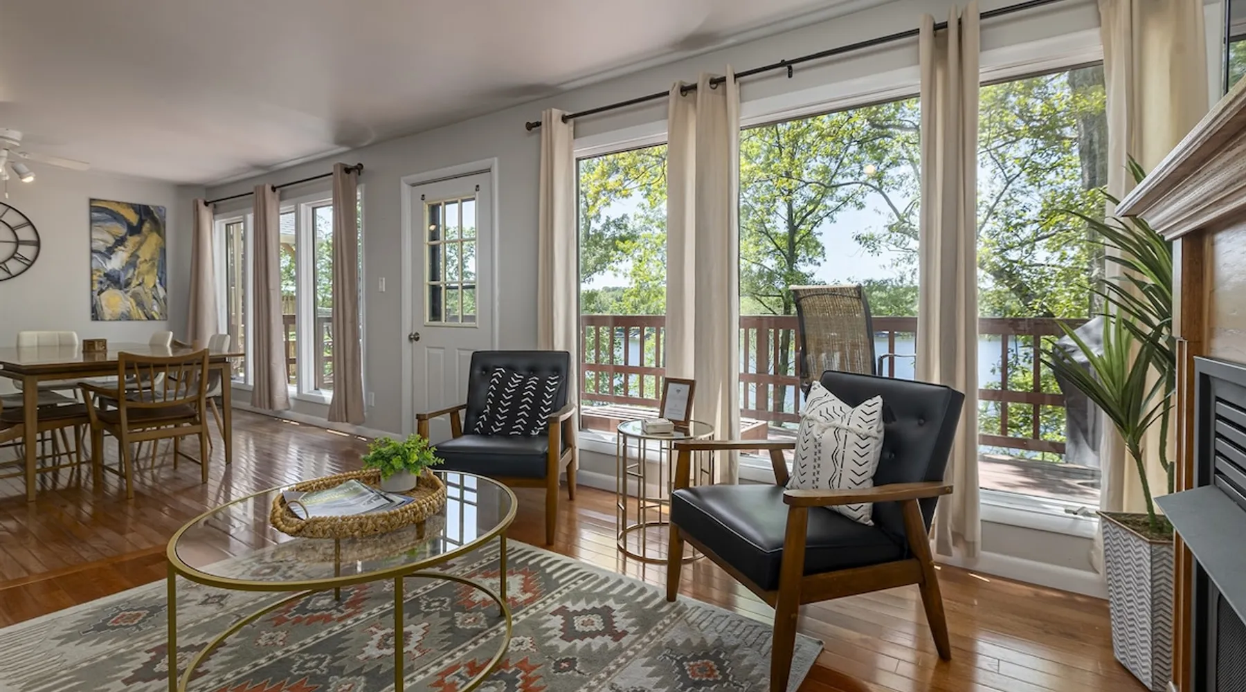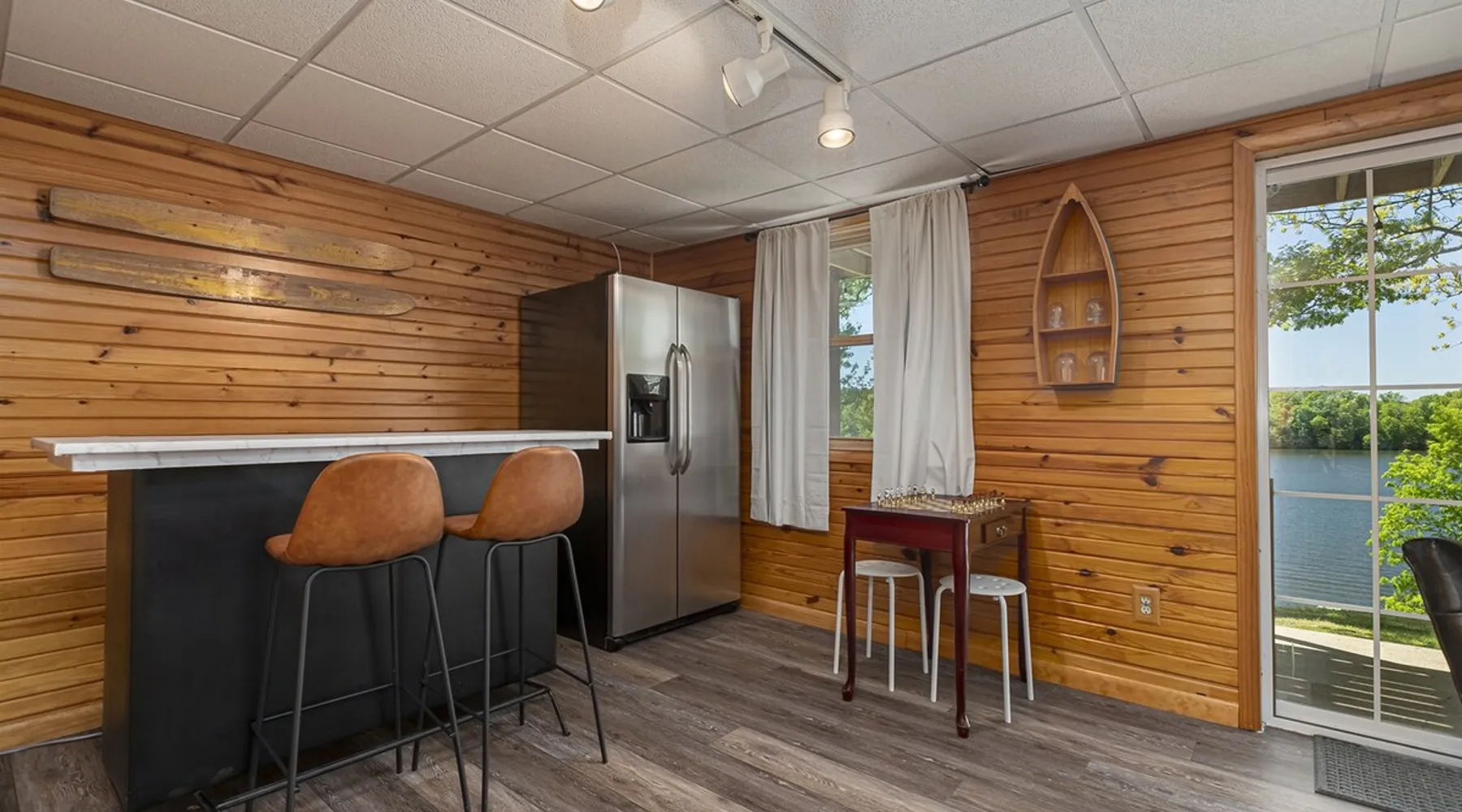 Escape the city and unwind at Lakeview Landing, a beautiful 2,100 sq ft log home nestled among tall trees on Lake of Egypt. Sleeping up to 10 guests across five bedrooms, this spacious retreat features floor-to-ceiling windows, modern amenities, and a 7-person hot tub with peaceful lake views. Enjoy your private dock with an extra slip for your boat or rental, and four kayaks for endless fun on the water. Perfect for families or groups seeking comfort, nature, and lakefront relaxation. The space Beautiful 2100 sq. ft. log house on shores of Lake of Egypt SLEEPING ARRANGEMENTS: 1 Queen Bed + ensuite bathroom on main level 1 King Bed in 2nd bedroom in upper level + daybed 1 Queen Bed in 3rd bedroom in upper level 1 Queen Bed in 4rth bedroom in lower level 1 Twin over full size bunk bed in 5th bedroom in lower level MAIN LEVEL LAYOUT: Living Room with propane fireplace Kitchen & Dining Area Office working space with USB ports Walkout Deck with large charcoal grill and dining table + chairs for 4 Master Suite featuring queen bed & ensuite full bathroom UPPER LEVEL LAYOUT: Bedroom with king bed + daybed Bedroom with queen bed with sitting area overlooking the lake Bathroom with walk-in shower LOWER LEVEL LAYOUT: Second living room with TV, DVD player, and electric fireplace Wooden game table with chess, checkers and more in addition to board & card games Kitchenette with microwave, full size refrigerator and dry bar Bedroom with queen bed and ensuite full bathroom Bedroom with 1 twin over full size bunk bed Patio walkout to the hot tub and soft seating conversation furniture. Laundry closet with full size washer and dryer OUTDOORS: Private dock with second uncovered boat slip for your own boat or boat rental 7-person hot tub with 65 jets and LED changing lights 1500 sq ft. of decking areas with multiple landings Fire pit for relaxation close to the patio Charcoal Grill 4 Kayaks for use Large Swim Mat Clean deep water for swimming off dock Great base for water skiing and lake lounging- located on the main channel It's a gentle slope of 110 steps down from the house to the dock. There are three landings with seating where you can stop, take your time and enjoy the view along the way. "KNOW BEFORE YOU GO" Check in is after 3PM. Check out is before 10AM. Rental agreement is required. PET POLICY: No pets allowed. Exterior cameras on premise. Guest access Your hosts are delighted to make this 5-bedroom luxury lakeside home exclusively yours for week-long stays or longer. All the space inside and out will be yours to use (except for one locked closet). So, be sure to make yourselves at home and enjoy the freedom and beauty of living by the wonderful Lake of Egypt. During your stay, if you need information or assistance, your hosts will be reachable by phone. As they live locally, they can provide a prompt and professional service when you need them. Other things to note A rental agreement is required with ID verification within 48 hours of booking. Access to the property is only provided after the renter's agreement is signed. Check-in is after 3 PM. Check-out is before 10 AM. Pet Policy: Absolutely no pets. Ring camera on entrance of property If guest are caught with a pet, guests may be subject to an immediate cancellation without refund. If evidence is found after your stay, there will be a $150 penalty for rule violation. Inventory: We provide a "starter package" of inventory for our cabin: 3 rolls of T.P. and 1 full roll of paper towels. BYO Beach Towels. We provide bath towels BYO Life Vests HIGHLY encouraged to ensure proper size. Firewood is available for purchase.