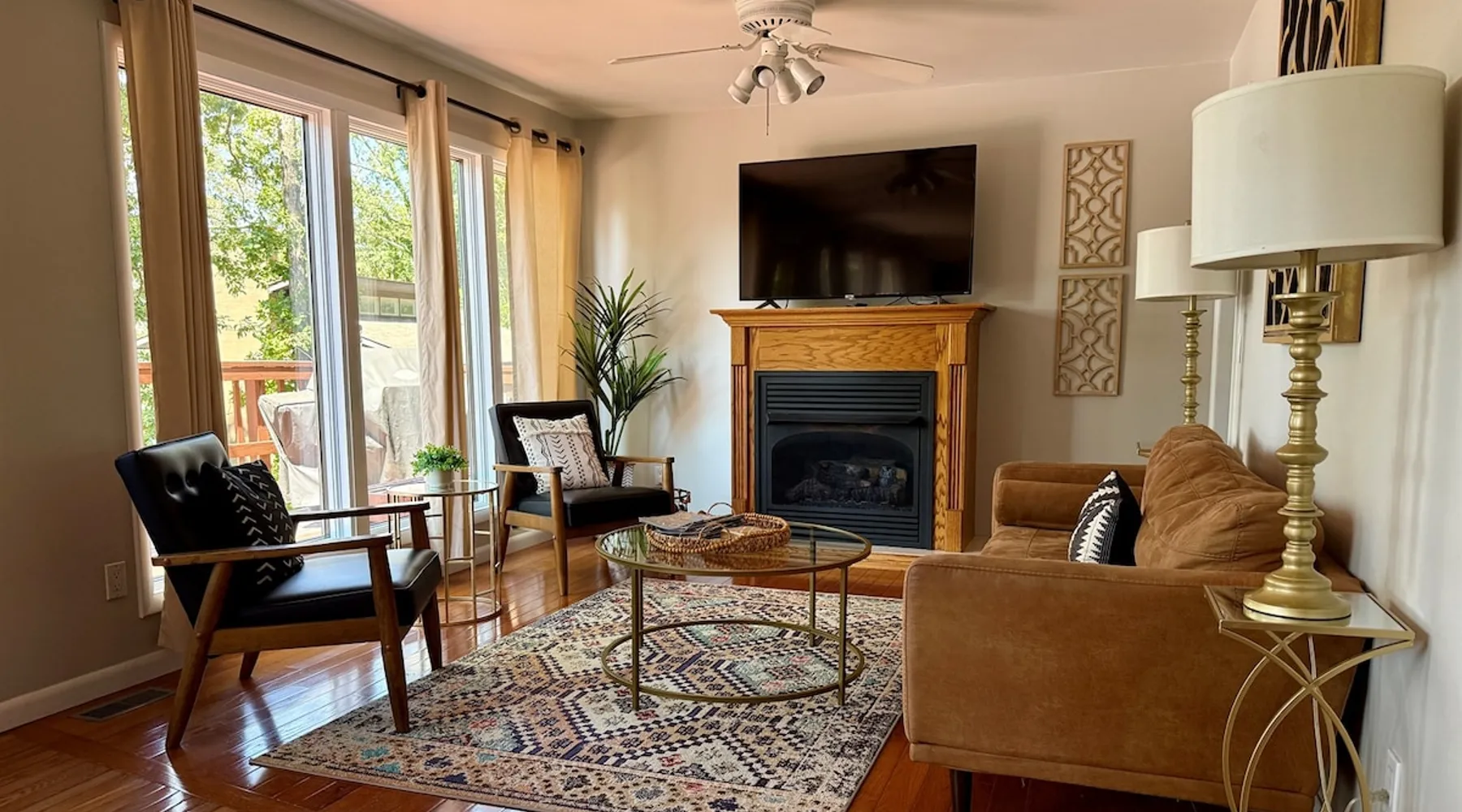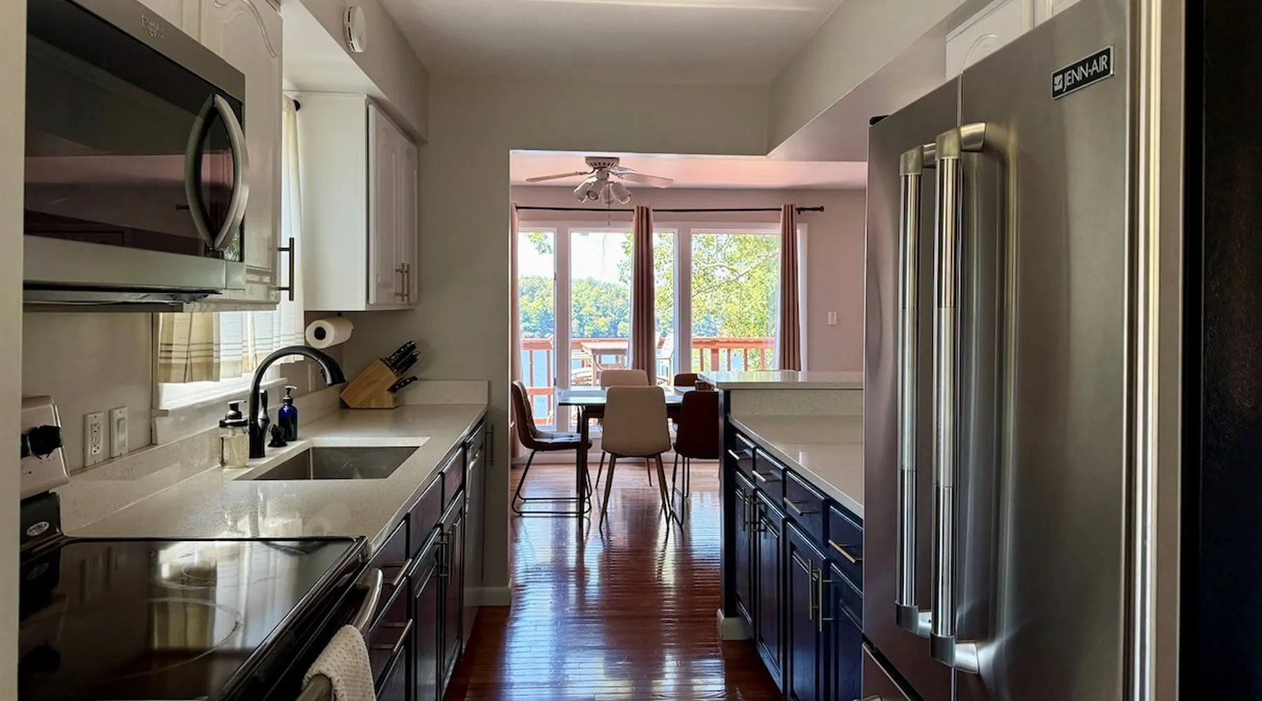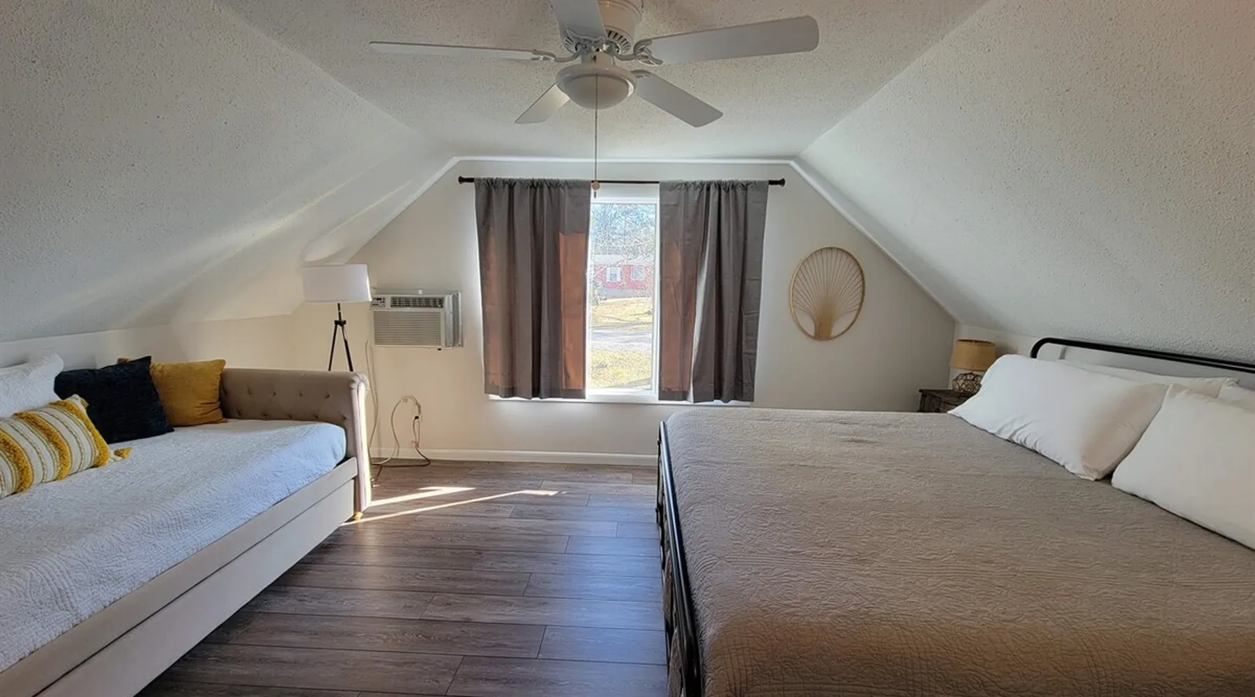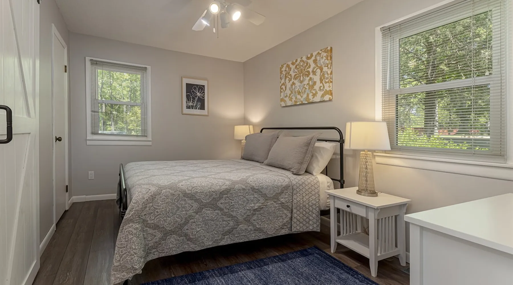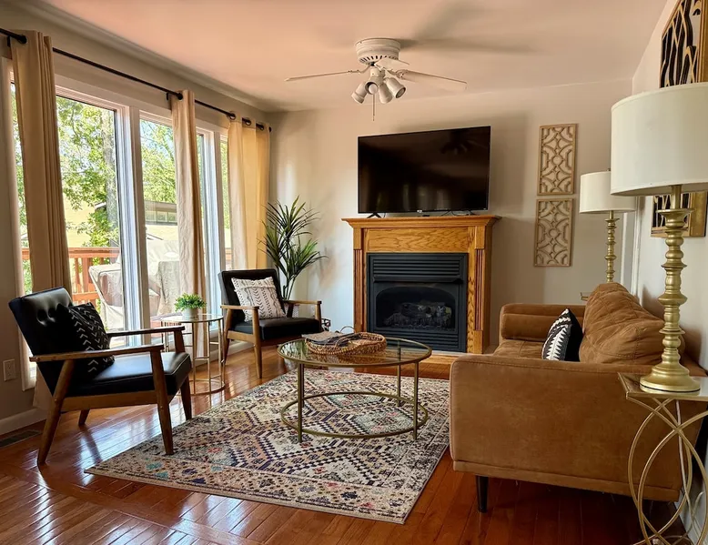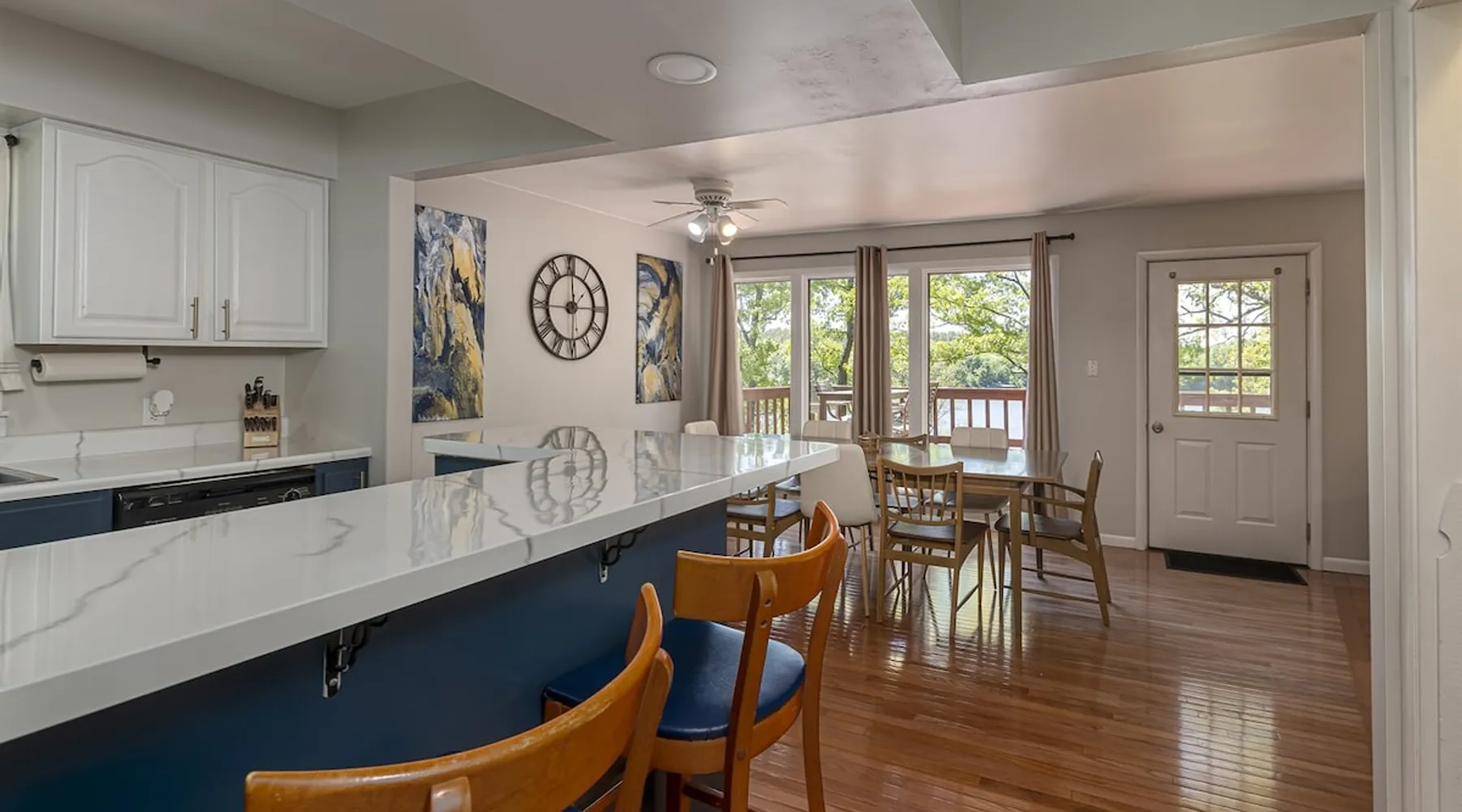 Escape the city and unwind at Lakeview Landing, a beautiful 2,100 sq ft log home nestled among tall trees on Lake of Egypt. Sleeping up to 10 guests across five bedrooms, this spacious retreat features floor-to-ceiling windows, modern amenities, and a 7-person hot tub with peaceful lake views. Enjoy your private dock with an extra slip for your boat or rental, and four kayaks for endless fun on the water. Perfect for families or groups seeking comfort, nature, and lakefront relaxation. The space Beautiful 2100 sq. ft. log house on shores of Lake of Egypt SLEEPING ARRANGEMENTS: 1 Queen Bed + ensuite bathroom on main level 1 King Bed in 2nd bedroom in upper level + daybed 1 Queen Bed in 3rd bedroom in upper level 1 Queen Bed in 4rth bedroom in lower level 1 Twin over full size bunk bed in 5th bedroom in lower level MAIN LEVEL LAYOUT: Living Room with propane fireplace Kitchen & Dining Area Office working space with USB ports Walkout Deck with large charcoal grill and dining table + chairs for 4 Master Suite featuring queen bed & ensuite full bathroom UPPER LEVEL LAYOUT: Bedroom with king bed + daybed Bedroom with queen bed with sitting area overlooking the lake Bathroom with walk-in shower LOWER LEVEL LAYOUT: Second living room with TV, DVD player, and electric fireplace Wooden game table with chess, checkers and more in addition to board & card games Kitchenette with microwave, full size refrigerator and dry bar Bedroom with queen bed and ensuite full bathroom Bedroom with 1 twin over full size bunk bed Patio walkout to the hot tub and soft seating conversation furniture. Laundry closet with full size washer and dryer OUTDOORS: Private dock with second uncovered boat slip for your own boat or boat rental 7-person hot tub with 65 jets and LED changing lights 1500 sq ft. of decking areas with multiple landings Fire pit for relaxation close to the patio Charcoal Grill 4 Kayaks for use Large Swim Mat Clean deep water for swimming off dock Great base for water skiing and lake lounging- located on the main channel It's a gentle slope of 110 steps down from the house to the dock. There are three landings with seating where you can stop, take your time and enjoy the view along the way. "KNOW BEFORE YOU GO" Check in is after 3PM. Check out is before 10AM. Rental agreement is required. PET POLICY: No pets allowed. Exterior cameras on premise. Guest access Your hosts are delighted to make this 5-bedroom luxury lakeside home exclusively yours for week-long stays or longer. All the space inside and out will be yours to use (except for one locked closet). So, be sure to make yourselves at home and enjoy the freedom and beauty of living by the wonderful Lake of Egypt. During your stay, if you need information or assistance, your hosts will be reachable by phone. As they live locally, they can provide a prompt and professional service when you need them. Other things to note A rental agreement is required with ID verification within 48 hours of booking. Access to the property is only provided after the renter's agreement is signed. Check-in is after 3 PM. Check-out is before 10 AM. Pet Policy: Absolutely no pets. Ring camera on entrance of property If guest are caught with a pet, guests may be subject to an immediate cancellation without refund. If evidence is found after your stay, there will be a $150 penalty for rule violation. Inventory: We provide a "starter package" of inventory for our cabin: 3 rolls of T.P. and 1 full roll of paper towels. BYO Beach Towels. We provide bath towels BYO Life Vests HIGHLY encouraged to ensure proper size. Firewood is available for purchase.