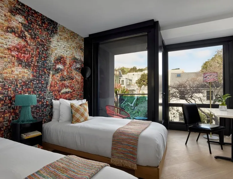 For a truly unforgettable experience in San Francisco's iconic Castro District, there's no better place to stay than The Hotel Castro. Thoughtfully designed mini suites with modern amenities offer an intimate escape for travelers. Plus, each room showcases a unique mural of a historic LGBTQ+ hero, making your stay both stylish and meaningful. Our tech-enabled hotel offers self check-in at 4pm, 24/7 guest support by text, phone, or chat, and a Virtual Front Desk accessed via mobile device. The space We have multiple Kasas in this building, and each one is unique. Decor and layout may vary slightly from what you see in photos. SLEEPING ARRANGEMENT: - Living area: 2 twin-size beds (sleeps 2) PARKING: - There is no on-site parking at our property. However, street parking is available nearby, or you may opt to take advantage of the city's efficient transportation system. LIVING SPACE: - Ultra high-speed WiFi - Smart TV - Nespresso machine - Mini Fridge - Private balcony - 200 to 270 square feet depending on the room category of choice Guest access In addition to your private space, you can enjoy the building’s shared amenities. BUILDING AMENITIES: - Rooftop - The Lobby Bar (this establishment is not owned or managed by Kasa) We manage each aspect of your stay, so you can count on reliable service from booking to checkout, all while enjoying a self-directed experience. Every Kasa offers: - 24/7 support (text, chat, email, or call us any time!) - A desirable locale close to points of interest and attractions - Professional cleaning - Thoughtful design for your comfort and convenience - Security protocols, including ID verification - Care-focused technology for detecting noise and smoke Other things to note PLEASE NOTE: - Guests are required to complete a Pre-Arrival Checklist, which includes a virtual ID check, and the option to request early check-in (subject to availability). We operate through a Virtual Front Desk, and self check-in is entirely contactless. We'll send you instructions on accessing our property and your Kasa before you arrive. Questions? Contact us 24/7. - There is no on-site parking at our property. However, street parking is available nearby, or you may opt to take advantage of the city's efficient transportation system. - Pets are not allowed at this property with the exception of service animals. - We do not offer luggage storage at our property, but we recommend the storage services of Hansen's Laundry located at 4258 18th St. - Housekeeping services are only provided upon request through our Guest Experience Team. Registration Details Exempt