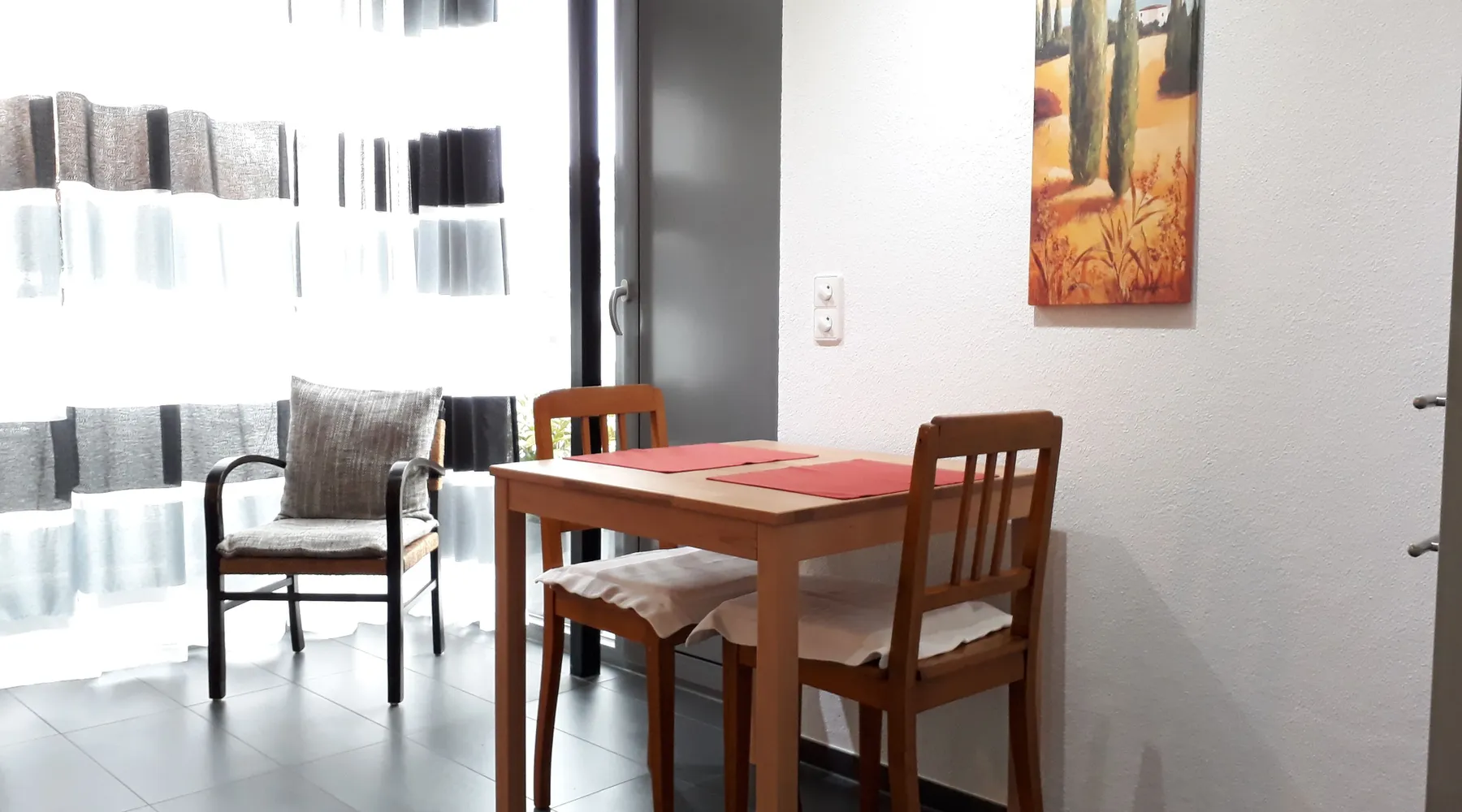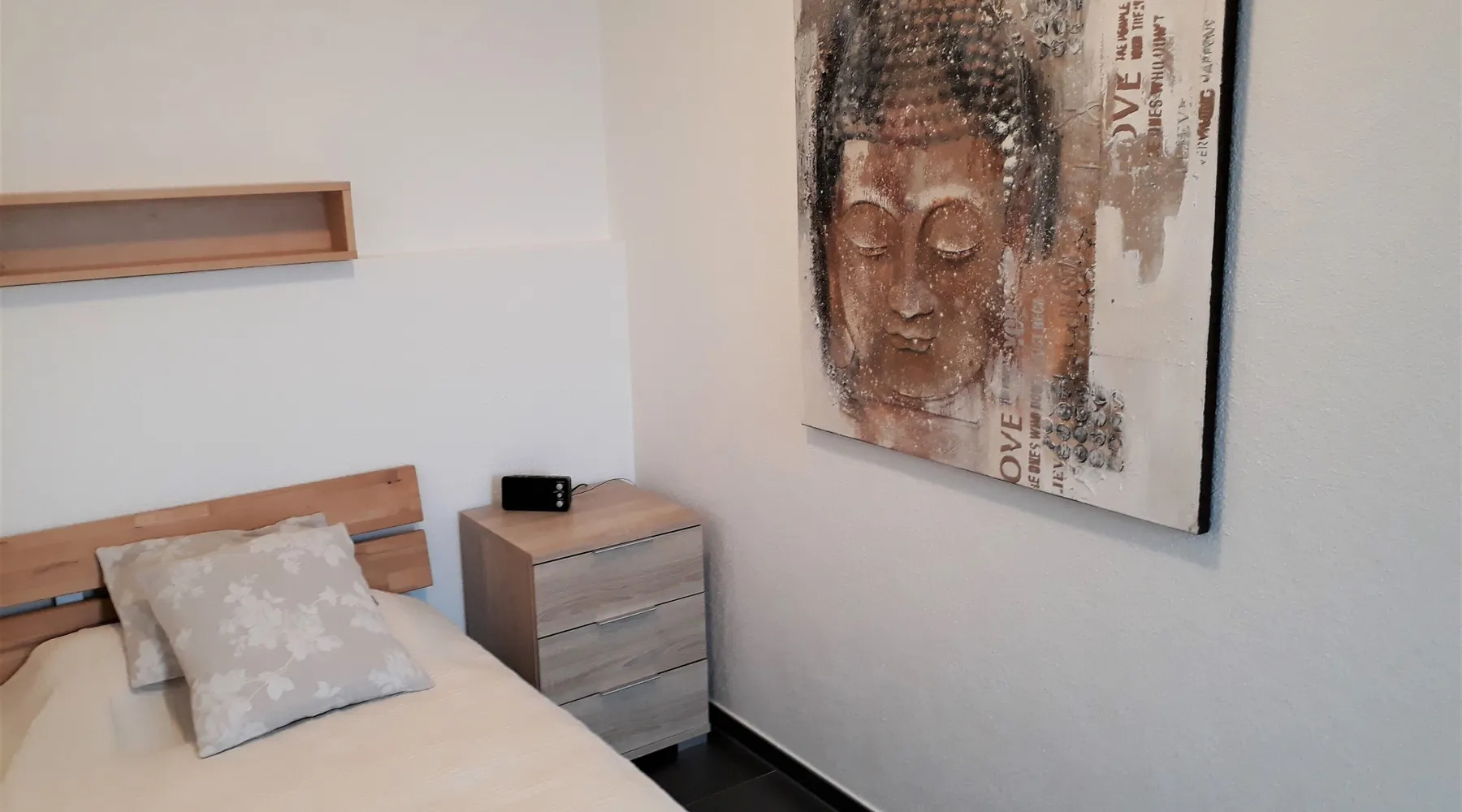 The granny flat with 30 sqm is newly furnished on the ground floor, modern and well equipped. There is a separate entrance area. It is also rented on a weekly or monthly basis. It is 9 km to Lake Constance. The Friedrichshafen exhibition center is 12 km away and Ravensburg is 17 km away. There is a bus stop directly in the village (500 m). Bregenz / Austria (48 km) We have thermal baths in Meersburg (11 km) and Überlingen. The apartment is located in a district of Markdorf. There are beautiful hiking trails / bike paths (e.g. B .: Bodensee shore leave: "Look into the country") around and on the Gehrenberg and also to Lake Constance. The living room: The apartment has 1.5 rooms with 30sqm, a cloakroom in the entrance area and a parking space directly at the house. The apartment consists of a sleeping area for one person. An additional guest bed (folding bed) can be provided. There is a fully equipped kitchenette, with coffee machine, microwave with oven function, 2 plate ceramic hob, fridge, toaster, kettle. A TV, DVD and WiFi are also provided. We ask for your understanding that smoking is not allowed in the residential building. Pets are not allowed in the apartment. Other important information: Bed linen is provided. We kindly ask you to bring your own towels.