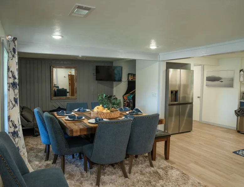 Imagine 470 acres in the Ozarks along two beautiful rivers for you to enjoy! Make Savoy Island Ranch your next destination get away! Whether it’s rest and relaxation you’re seeking (with stunning views) or an unforgettable outdoor adventure, you’ll find everything on your wish list here. Fishing, swimming and canoeing are instantly available to you at this secluded riverside resort. This beautifully remodeled rustic home sits on 470 acres surrounded by not only one river, but two rivers running through this nature lover’s paradise. Whether it’s kayaking the White River, fishing for trout in the Rocky Bayou or hiking the trails made just for you, it won’t be your last stay at the Savoy Island Ranch. If you’re ready to tune out the world and get the recharge you need with exceptional quality, look no further. Start each day with a cup of coffee on the open-air porch while sightseeing deer, turkey and wildlife or grab your book and relax in your screened in porch with comfortable rocking chairs. Take a hike to the island to witness two majestic eagles who made this their home. Oh, and we made room for man’s best friend in this pet-friendly retreat. Heads up: Sometimes pets are not included in your quote. Please send us a message to let us know if your pets will be accompanying you during your stay. Please check out rules and details in the rental agreement. For the outdoor type, you will enjoy an array of amenities: · Nearly 2 miles of river frontage outside your front door · Miles of hiking trails to explore · Boat ramp on the property (boat not provided) · Complimentary canoe provided · Complimentary kayak provided · Large fire pit for cozy evenings making S’mores by the river · Golf cart rental available - We highly suggest renting one for the many hiking trails. For the indoor type, you will appreciate these fine amenities: · Entire home is newly remodeled – brand new from floor to ceiling · Capable of Accommodating 12 · Kitchen provides brand new, modern appliances · MASTER BEDROOM: - King size bed with fine linens - Flat screen TV - Sliding door access to front porch · LUXURIOUS MASTER BATHROOM: Includes stand-alone tub, gorgeous stone and tile shower with rain showerhead, double sink, and quality linens provided · GUEST BEDROOM #1: - Queen size bed with fine linens · GUEST BEDROOM #2: - Queen size bed with fine linens · GUEST BEDROOM #3: - 2 sets of bunk beds (sleeps 4) with fine linens · GUEST BATHROOM: Beautiful stone and tile shower with rain showerhead and quality linens provided · FAMILY ROOM: · 75” smart tv in living area · Large leather sofa · GAME ROOM: · Complimentary classic arcade game featuring Ms. Pac- Man / Galaga (no payment required to play) · Xbox / games provided · Flat screen tv in game room · Wi-Fi service Enjoy being secluded from the hustle and bustle, yet only 13 miles from the quaint, historic town of Mountain View, AR, the folk music capital of the world. Take an evening stroll around Main Street exploring antique stores and stopping in for a homecooked meal from the many mom and pop cafes. Your secluded getaway awaits you at Savoy Island Ranch. *We've recently added a Luxurious Airstream Cottage that is available on VRBO that sleeps 4 if you need to accommodate extra guests, or if you want something smaller. Check out VRBO #3110546 "Savoy Island Ranch - Airstream". You can also copy this link into your browser and be automatically linked to it: https://www.vrbo.com/pe/321.3110546.3683622/ds