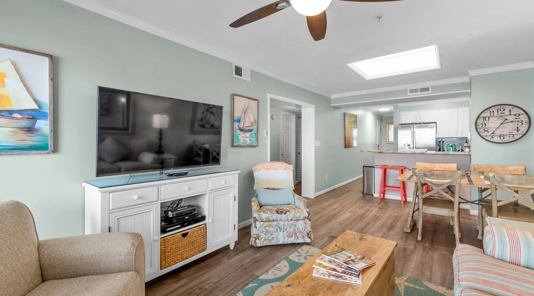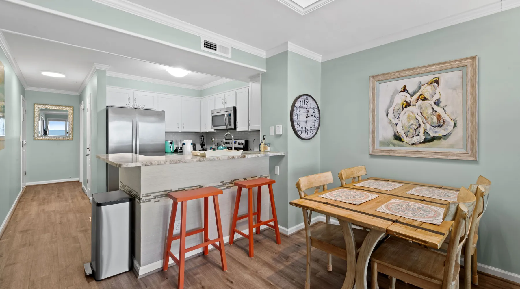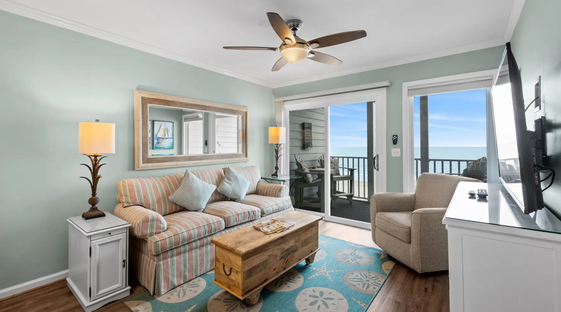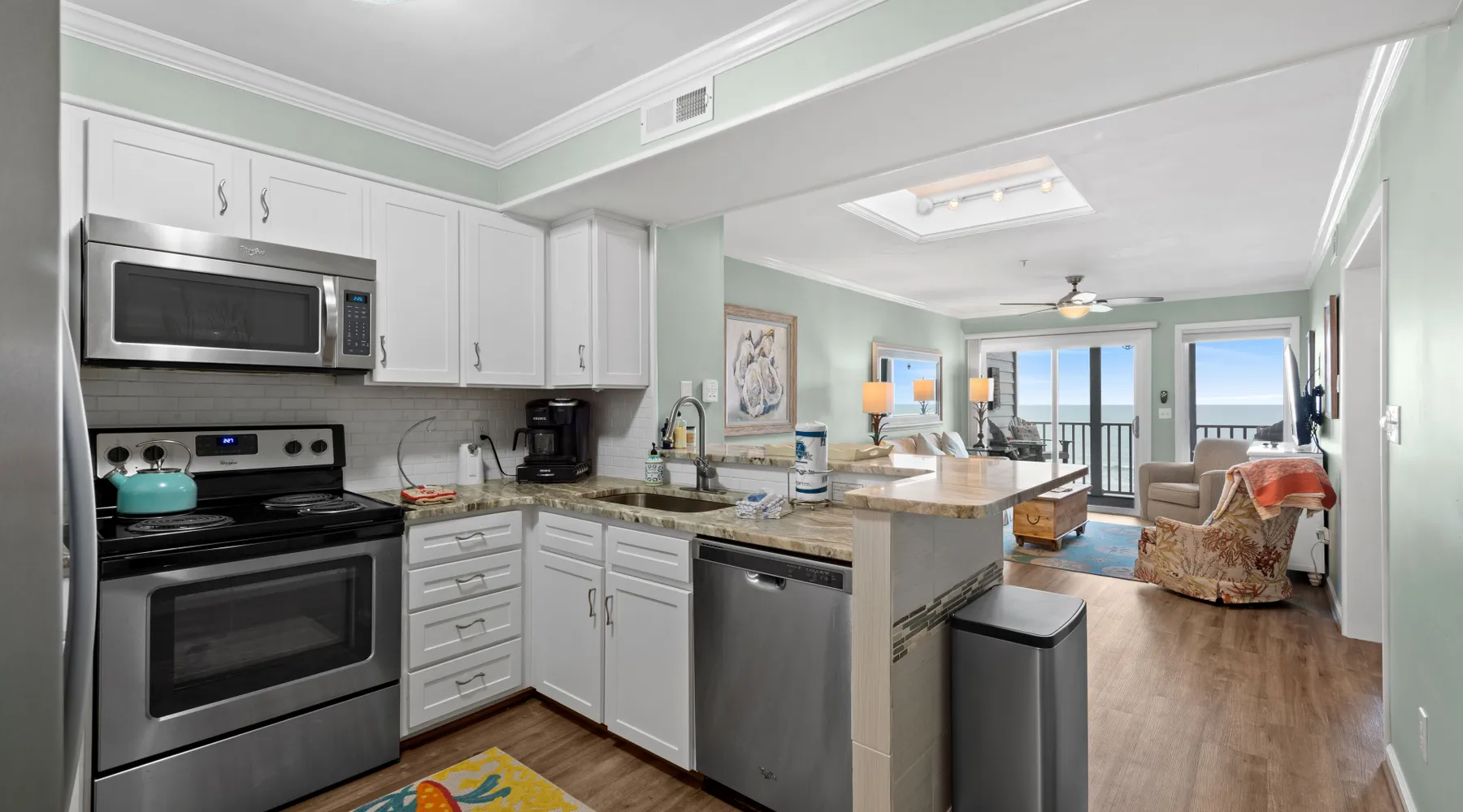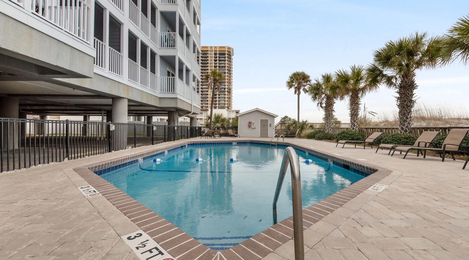 Recently renovated, oceanfront condo. This 3 bedroom, 2.5 bathroom condo is located on the ocean on Shore Drive. Condo can comfortably accommodate 6 with 1 king in the master bedroom, 1 queen in the 2nd bedroom & 2 twins in the 3rd bedroom. Unit features all new flooring, a fully equipped kitchen, new furniture and all the comforts of home including a washer & dryer in unit, TV's in all bedroom and the living room, free parking & free Wi-Fi. Pelicans Landing is located in the Shore Drive section of Myrtle Beach. Onsite amenities include an outdoor pool, bbq area, playground and elevator. The complex is close to The Apache Pier, Ocean Annie's Beach Bar, Restaurant Row, Barefoot Landing, Broadway at the Beach and so much more. Free Fun Included Every Day! To enhance your vacation experience, North Beach Vacations has partnered with Xplorie, which means your stay includes over $250.00 in complimentary activities, per day. Just for booking with us, you’ll receive free tickets, every day of your stay to top activities like golfing, water parks, dinner shows, and more!!! ***ONLY VALID FOR SHORT TERM STAYS 27 NIGHTS OR LESS*** NO MOTORCYCLES, BOATS, RV'S, GOLF CARTS OR TRAILERS ALLOWED ONSITE! WE DO OFFER FREE PARKING AT OUR LOCAL RENTAL OFFICE IF YOU PLAN TO BRING A MOTORCYCLES, BOAT, RV, GOLF CART, TRAILER AND/OR EXCEED THE NUMBER OF VEHICLES PERMITTED PER UNIT. PARK AT YOUR OWN RISK. NO SMOKING IN UNIT OR ON BALCONY! NO PETS! 25 YEAR AGE REQUIRMENT! FOR ALL NON-FAMILY GROUPS, EVERYONE MUST MEET THIS AGE REQUIRMENT AT THE TIME OF CHECK-IN!