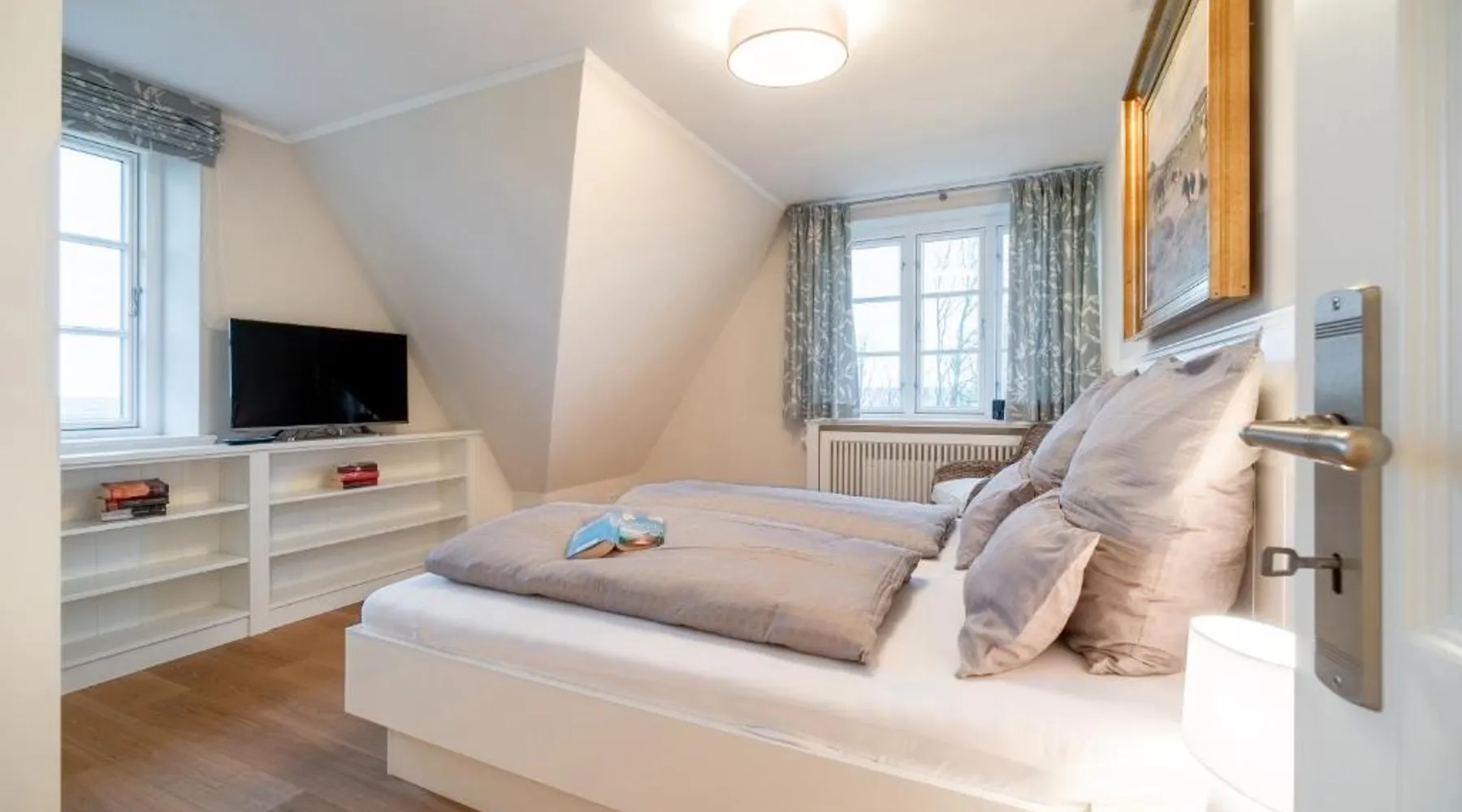 Spacious Holiday Home in Oldsum: Hüs zur Marsch offers a spacious holiday home in Oldsum, Germany. The property features three bedrooms and two bathrooms, ensuring ample space for all guests. Relaxing Facilities: Guests can enjoy a sauna, terrace, and garden. The terrace provides a perfect spot for outdoor dining, while the sauna offers a relaxing retreat. Free WiFi is available throughout the property. Comfortable Amenities: The holiday home includes a fully equipped kitchen, washing machine, and fireplace. Additional amenities include a dining table, sofa, and TV, ensuring a comfortable stay. Local Attractions: Located 2.4 mi from the Archaeological Monument in Borgsum / Föhr, 6.2 mi from the Museum of Local Frisian History Wyk, and 6.8 mi from the Ferry Docks and Speedboat Harbor. The sauna and fireplace are the special features of this holiday home. Boasting a private entrance, this spacious holiday home also comes with 3 bedrooms, a seating area and 2 bathrooms with a shower and a hairdryer. Meals can be prepared in the kitchen, which features a stovetop, a refrigerator, a dishwasher and kitchenware. Featuring a terrace with garden views, this holiday home also features a washing machine and a TV. The unit has 4 beds.
