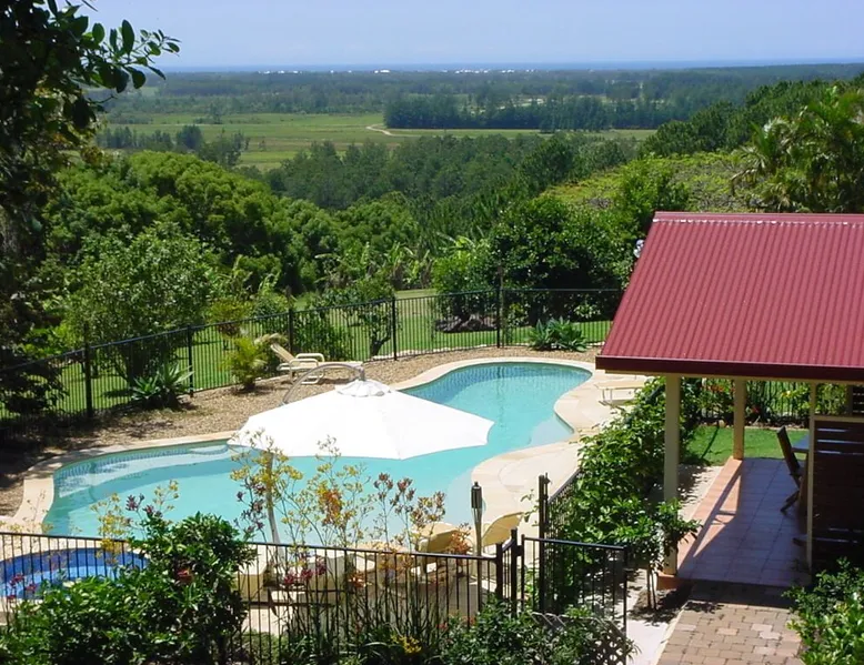 Welcome to our onsite Caravan with a Queen size bed, self-contained and self-catering with a fenced area and bar - que. Private facilities are located aprox 10 mtres from the van. Relax at our Pet Friendly Retreat also offering 3 x 1 bedroom luxury suites (1 Queen and 2 King size bedrooms) in the Tweed Valley Hinterlands of the Northern Rivers NSW, 30 mins to Byron Bay, 15 mins from the Gold Coast Airport, 10 mins from Kingscliff's surf and dog friendly beaches and restaurants, with the Mt Warning extinct volcano and World Heritage National Parks as a magnificent natural backdrop all a part of the beautiful Tweed Valley situated in the Northern NSW area. Only 15 minutes from Coolangatta. THIS PROPERTY IS UNSUITABLE FOR CHILDREN. An ideal location for your pet friendly retreat, holiday with your pet or getaway, a special place to relax and de stress with your pampered pooch beside you, don't hesitate, make an enquiry now. Our pet friendly holiday accommodation is situated on a 35 acre property and allows for lots of walks, enjoy the setting sun with a glass of wine and your pet beside you on our specially located swing. Pets are an additional $20 per pet per night. Our property consists of an authentic Swedish hand-built Western Red Cedar Sauna, a 15 metre swimming pool with a heated spa, a virgin tea tree rainforest a citrus orchard, self-contained suites, offering pet friendly luxury accommodation with views of the Pacific Ocean and the Springbrook and Lamington Mountain ranges. Take the pain out of travelling with pets, stay a while in our self-contained suites we have all the necessities for a relaxed breakaway, your well behaved pets can share your holiday fun with you. Your well loved pal will have lots of area to run around, nestled within the serenity of a beautifully regenerating sub-tropical rainforest.