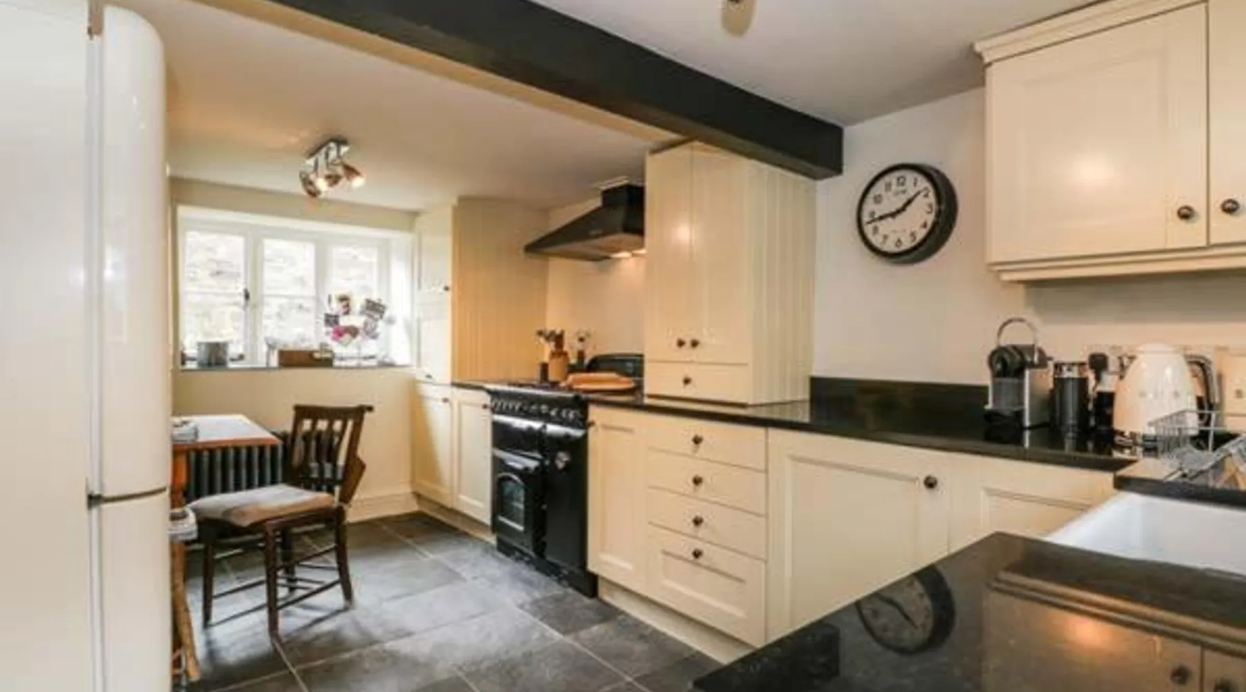 Comfortable Accommodations: Rose Cottage in Bakewell offers a 4-star holiday home with two bedrooms and one bathroom. The property features a fully equipped kitchen, washing machine, and a cozy fireplace. Outdoor Spaces: Guests can relax in the private garden or enjoy free WiFi throughout the property. The seating area provides a comfortable space to unwind. Convenient Amenities: The holiday home includes a dishwasher, refrigerator, stovetop, and a TV. Additional facilities include a washing machine and free on-site private parking. Local Attractions: Chatsworth House is 5 mi away, Buxton Opera House 11 mi, and Alton Towers 25 mi from Rose Cottage. Manchester Airport is 29 mi distant. Cycling enthusiasts can explore the surrounding area. The fireplace is the standout feature of this holiday home. This holiday home features 2 bedrooms, a seating area with a sofa and 1 bathroom with a shower. The kitchen features a stovetop, a refrigerator and a dishwasher. The holiday home features a washing machine, a dining area, a wardrobe, heating and a TV. The unit has 2 beds.