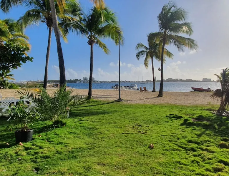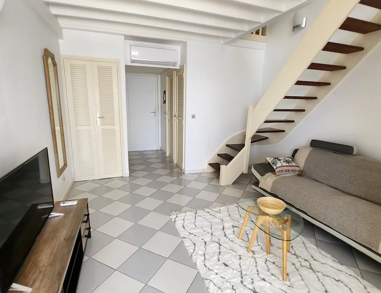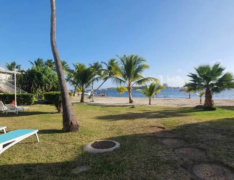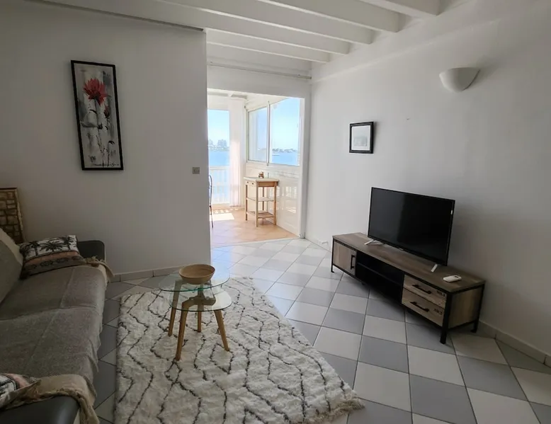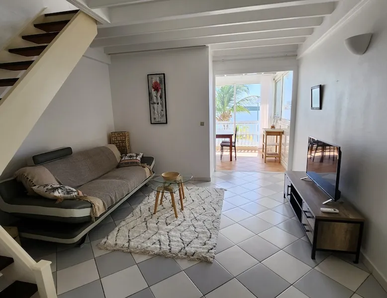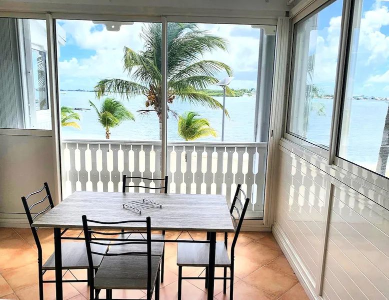 A 60 sqm duplex directly on the beach of the lagoon. Large panoramic view on the beach and sunset. Fully equipped kitchen, furnished living rooms and bedroom. 2 pools available in the residence Guest access Self check in available