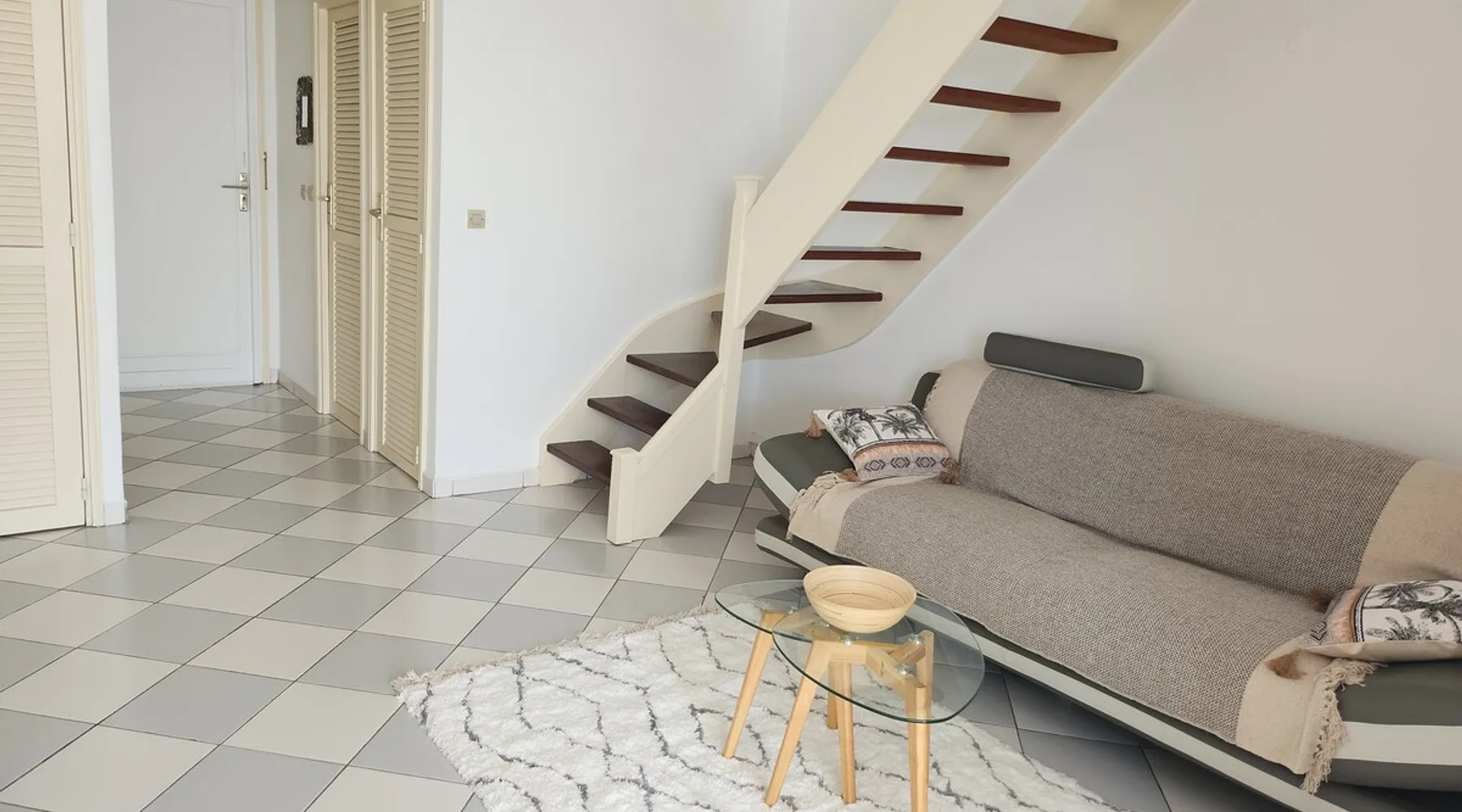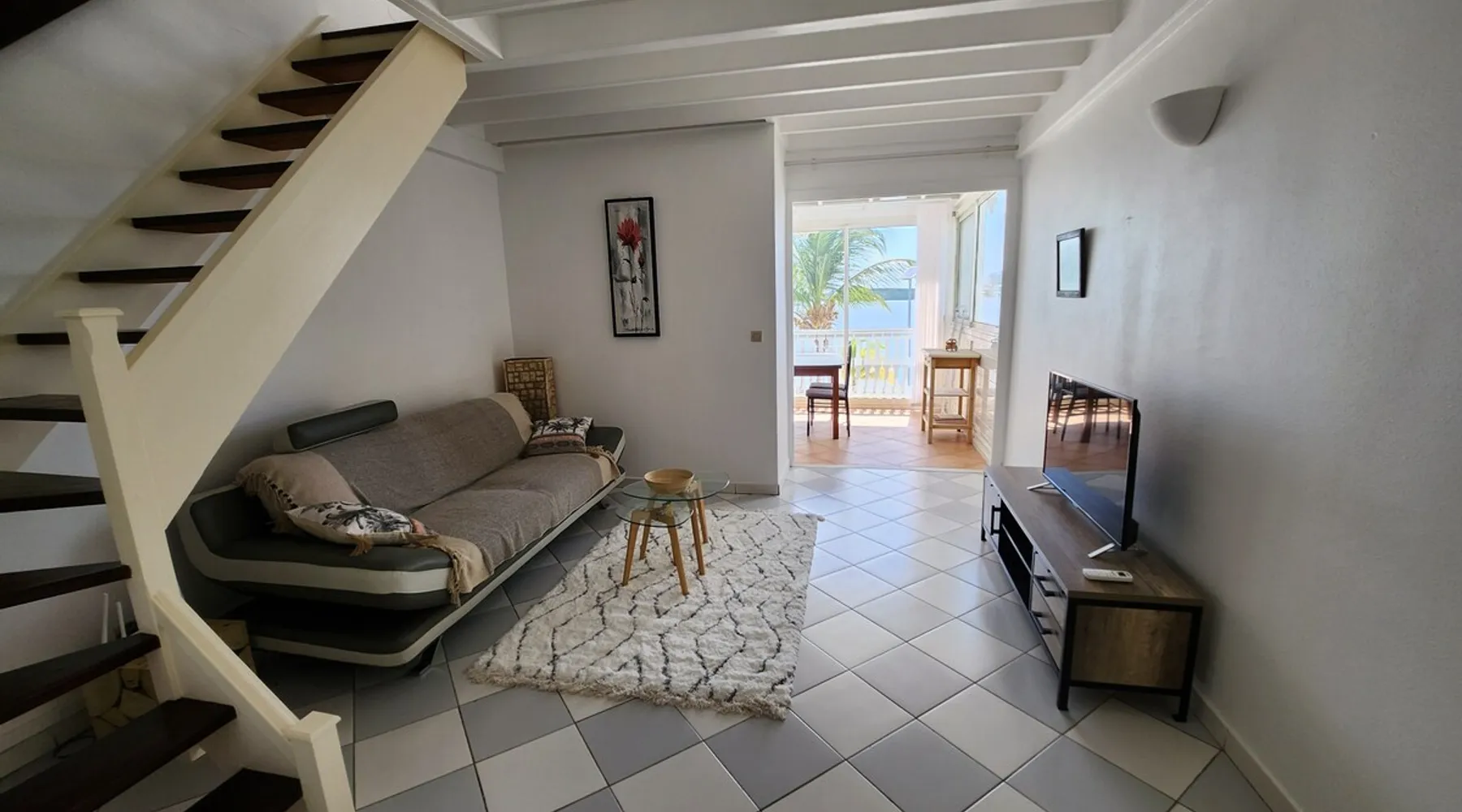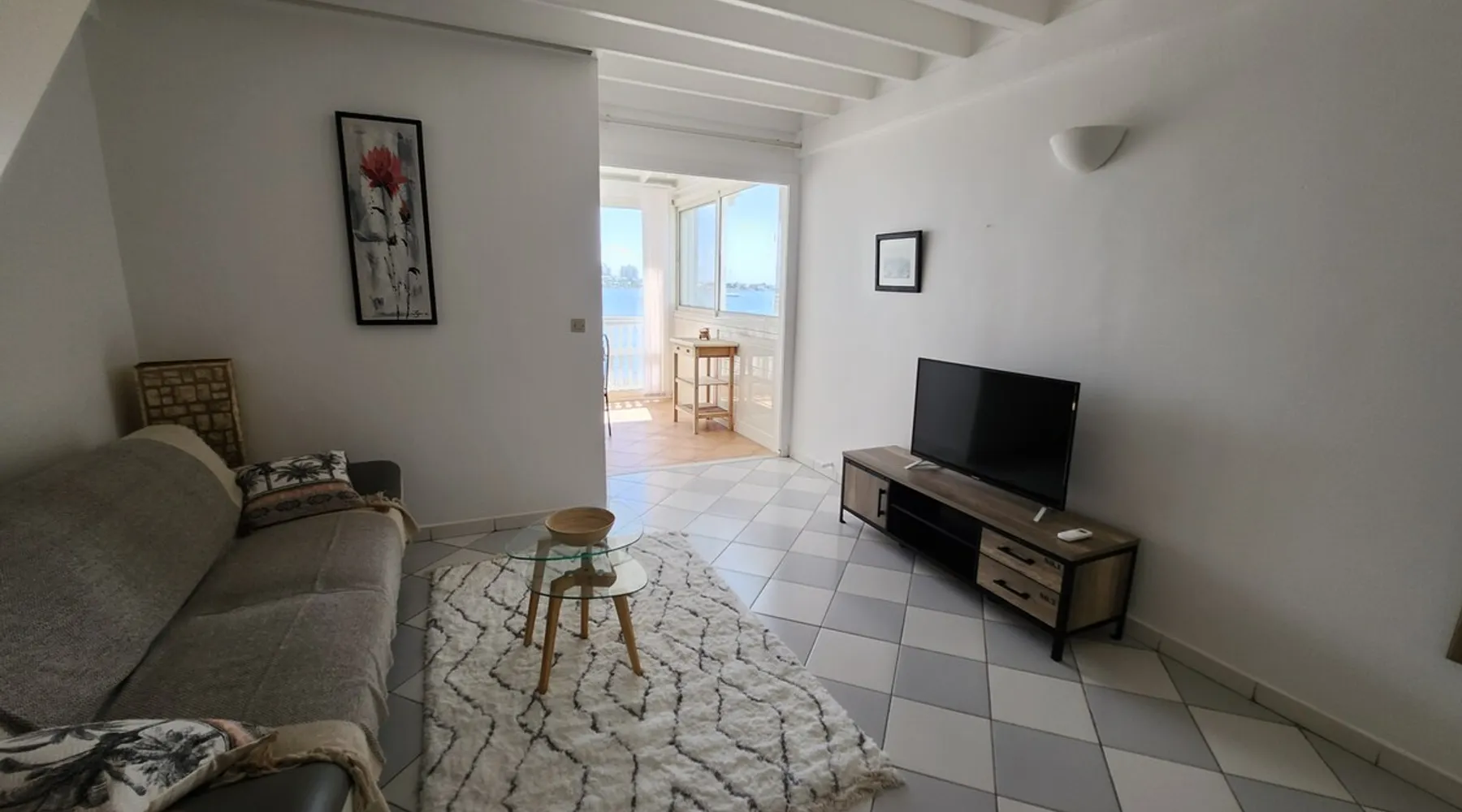 A 60 sqm duplex directly on the beach of the lagoon. Large panoramic view on the beach and sunset. Fully equipped kitchen, furnished living rooms and bedroom. 2 pools available in the residence Guest access Self check in available