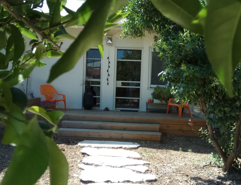 A peaceful farming village nestled between the Carmel Mts and Mediterranean sea. We offer a spacious, 2 room, separate ground floor private unit in a private home. Very tranquil. Very central location for many day excursions north and south. Easy access to a private beach and surrounding beaches. Loads of shops, restaurants and pubs in the surrounding towns. There is a grocery store in the village and a coffee truck in the center. Many major sites are within a short distance for day touring. Private unit with private entrance, one bedroom, one spacious sitting room, bathroom and shower in a peaceful setting, quiet and restful. Amenities include: Air conditioning and heat, mineral water, hot water kettle, free WiFi, garden with fresh tea herbs and an assortment of coffees. There is also an espresso machine with capsules. The space has a Mini-Bar Refrigerator and a microwave. There are no cooking facilities.