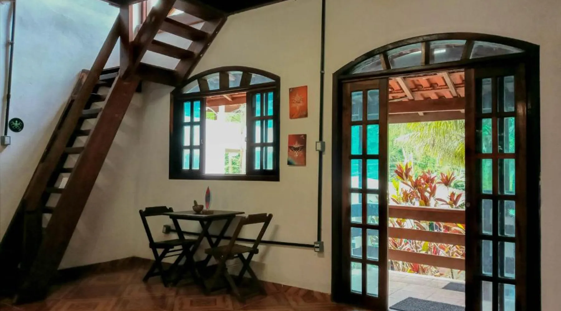 Comfortable Accommodations: Pousada e Hostel Marthi in Ubatuba offers family rooms with private bathrooms, balconies, and garden or pool views. Each room includes a mini-bar, TV, and free WiFi. Leisure Facilities: Guests can relax in the garden, bar, or year-round outdoor swimming pool. The property features an outdoor fireplace, lounge, and games room. Live music and outdoor seating enhance the atmosphere. Convenient Location: Itamambuca Beach is a 13-minute walk away. Ubatuba Bus Station is 8.1 mi, Ubatuba Stadium 6.8 mi, and Igreja Matriz 7.5 mi from the inn. Free on-site private parking is available. Guest Services: The inn provides a shared kitchen, minimarket, outdoor play area, and barbecue facilities. Bicycle parking and bike hire are also available. Highly rated for its convenient location and excellent service. This bed in dormitory has a balcony, bathrobe and garden view.