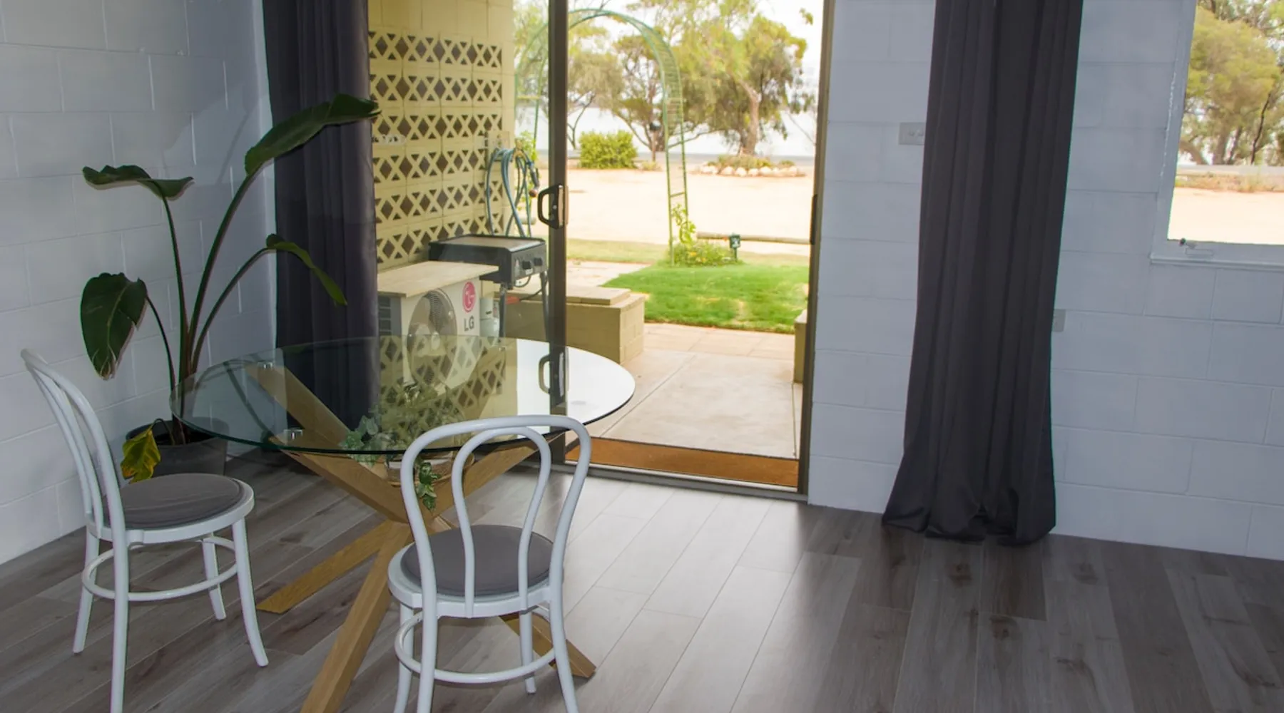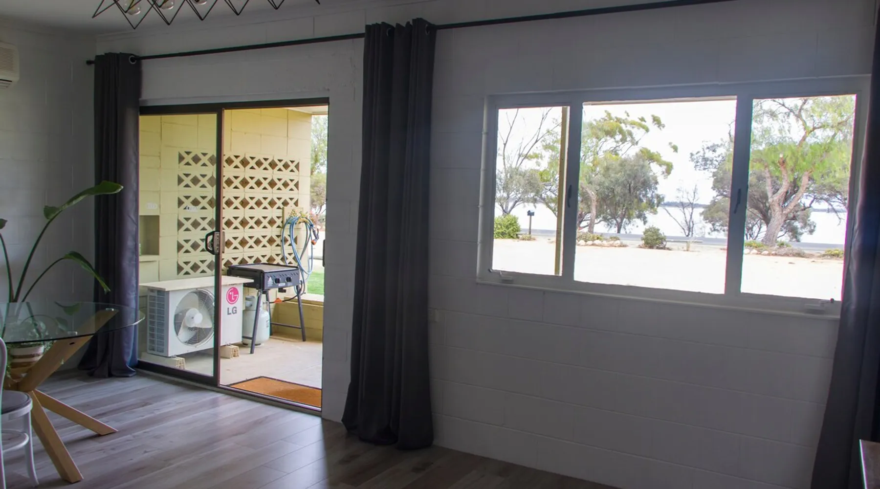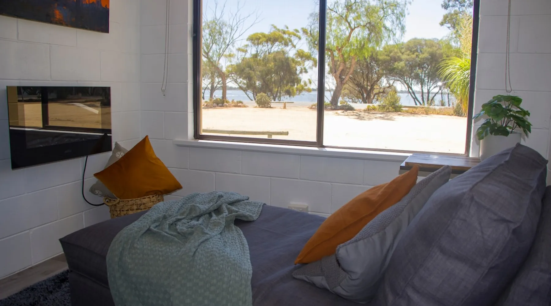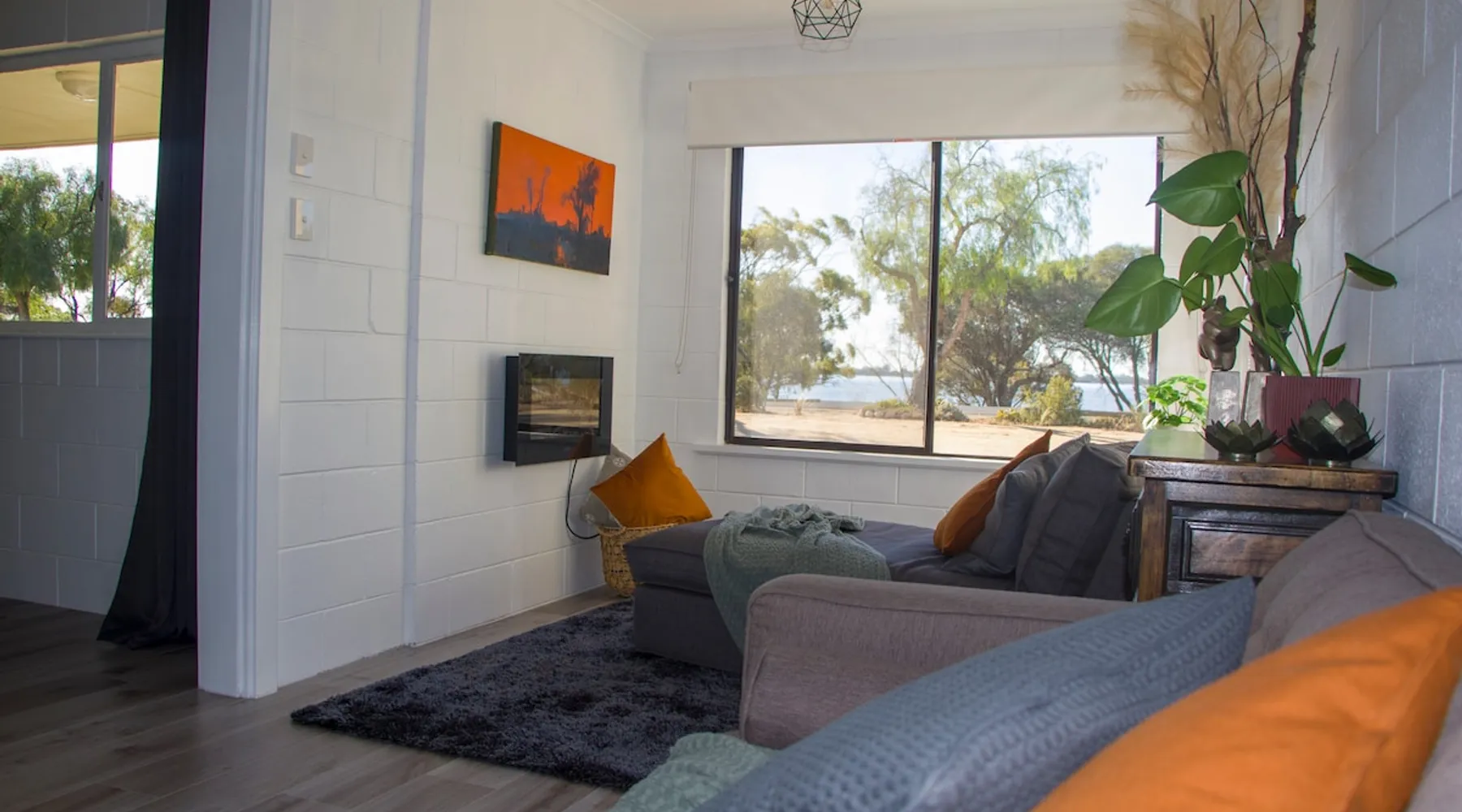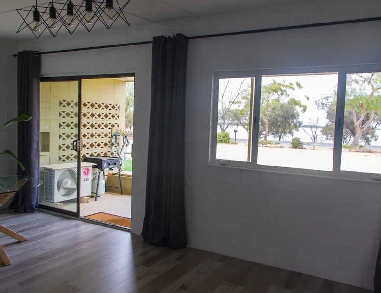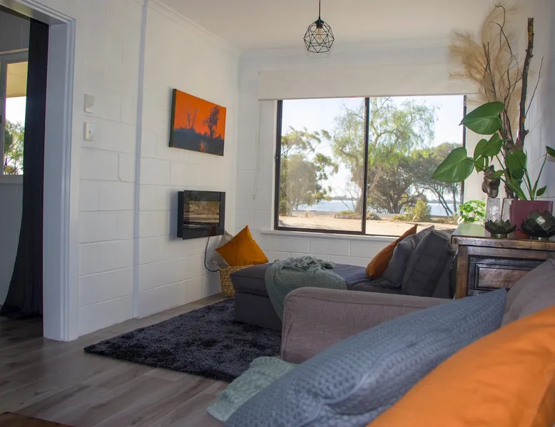 It is all about those lake views, the fresh lake air and serenity that is only achievable once you leave the City. You are guaranteed to enjoy stunning, uninterrupted, lake-view sunsets every night. The choice is yours though, admire the views through the large front windows from within the comfort of the cabin, or outside on the porch with your feet up. I'd also like to the opportunity here to confirm that check in is from 11am, and check out is before 4pm. The space The cabin has one bedroom with a super comfortable, King bed which is perfectly positioned to take in those lake views as you wake with the sunrise. If you prefer a sleep in, there are block out curtains easily drawn closed. Multiple living spaces inside to find your perfect way to relax; be it cuddling in front of the television, falling into a good book, or battling through Scrabble! The living area has a smart TV with complimentary Netflix for those that love a casual movie night, or a full on binge session. The kitchenette is equipped with an electric frypan, induction hotplate, microwave, kettle, toaster and bar fridge. There is a gas BBQ on the porch with all the right tools for a cook up. Ample parking for your car, jet ski, boat or caravan (unsecured “off street” street parking). Cabin well suited for couples. The floor plan does allow for larger family groups by negotiation; with a cot, queen size air mattresses and single trundle beds available. There is a walking path around the lake which is accessible literally steps away from the front door. The Barmera Golf Course and Tennis Courts are on the back door step. Within short walking distance there is beach volleyball, a Jetty, community gym equipment, and the main shopping district. There is also an incredible selection of wineries/distilleries and local produce within the greater area. Guest access You'll have the entire house to yourselves.