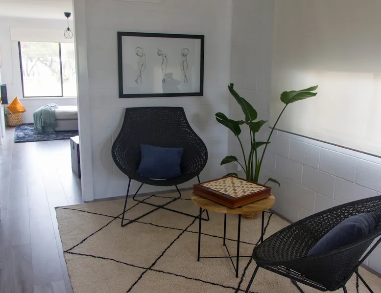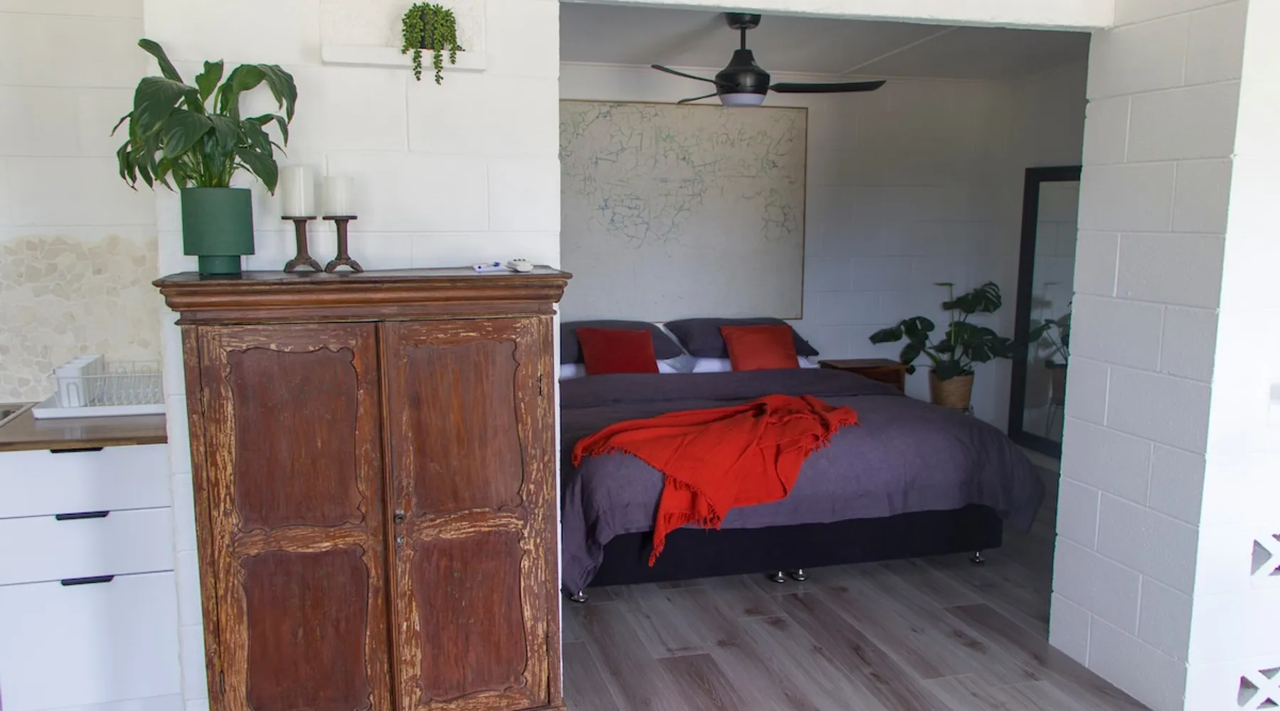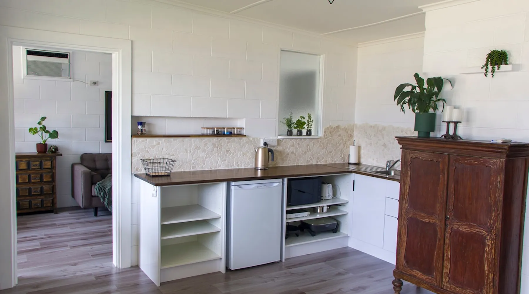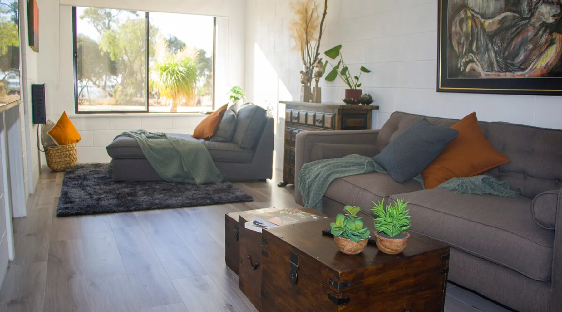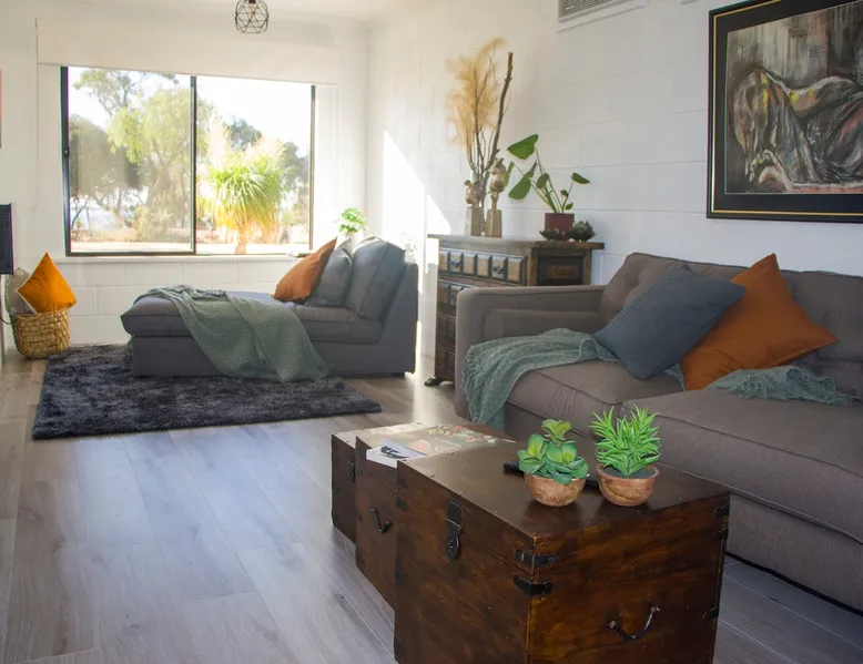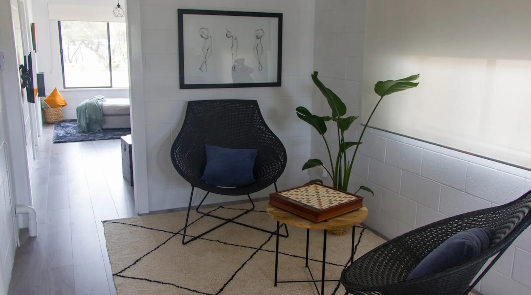 It is all about those lake views, the fresh lake air and serenity that is only achievable once you leave the City. You are guaranteed to enjoy stunning, uninterrupted, lake-view sunsets every night. The choice is yours though, admire the views through the large front windows from within the comfort of the cabin, or outside on the porch with your feet up. I'd also like to the opportunity here to confirm that check in is from 11am, and check out is before 4pm. The space The cabin has one bedroom with a super comfortable, King bed which is perfectly positioned to take in those lake views as you wake with the sunrise. If you prefer a sleep in, there are block out curtains easily drawn closed. Multiple living spaces inside to find your perfect way to relax; be it cuddling in front of the television, falling into a good book, or battling through Scrabble! The living area has a smart TV with complimentary Netflix for those that love a casual movie night, or a full on binge session. The kitchenette is equipped with an electric frypan, induction hotplate, microwave, kettle, toaster and bar fridge. There is a gas BBQ on the porch with all the right tools for a cook up. Ample parking for your car, jet ski, boat or caravan (unsecured “off street” street parking). Cabin well suited for couples. The floor plan does allow for larger family groups by negotiation; with a cot, queen size air mattresses and single trundle beds available. There is a walking path around the lake which is accessible literally steps away from the front door. The Barmera Golf Course and Tennis Courts are on the back door step. Within short walking distance there is beach volleyball, a Jetty, community gym equipment, and the main shopping district. There is also an incredible selection of wineries/distilleries and local produce within the greater area. Guest access You'll have the entire house to yourselves.