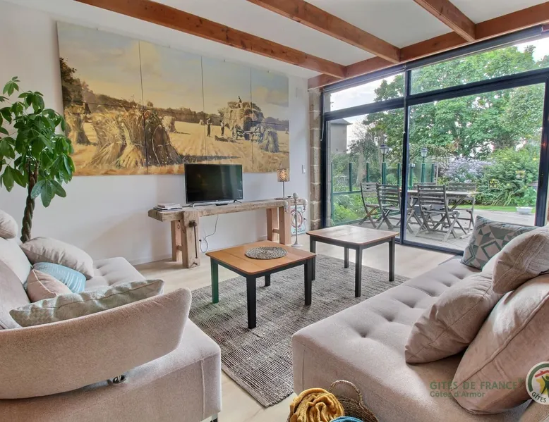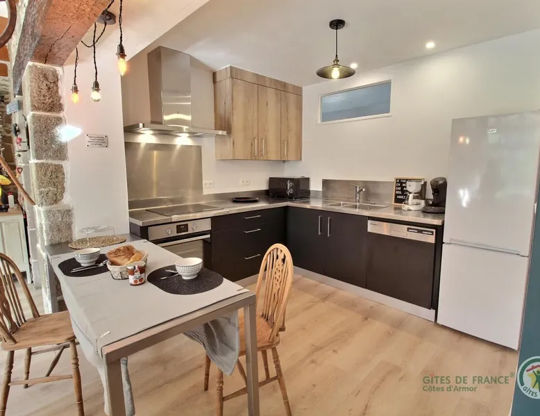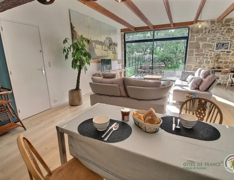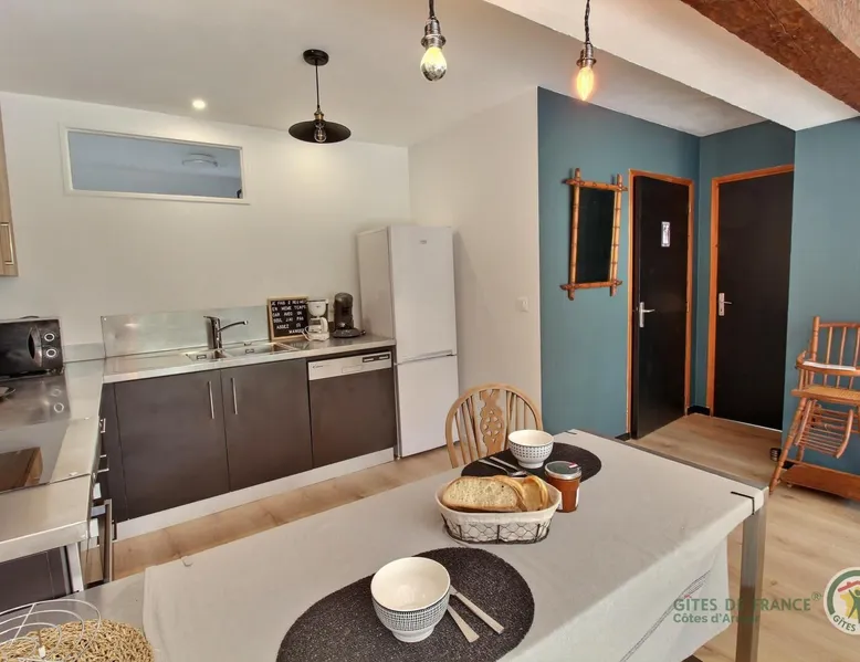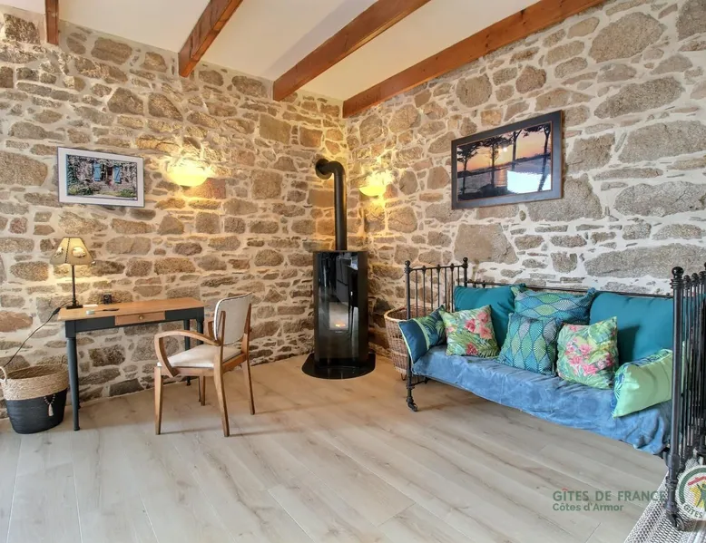 Your single-storey rental includes: kitchen with dining area, living room with pellet stove, one bedroom (1 double bed 160x200) opening onto a bathroom with shower, laundry room, wc. At your disposal: a private terrace of 17 m² and a garden of 400 m² shared with the owner. Parking your vehicle in the courtyard (50 m²) shared with the owner and another tenant. Gite adjoining the owners' home and an apartment (located above the gîte). For your next vacation, put your suitcases down in this gîte which has just undergone a great renovation! Located in Penvénan, just 3 km from the sea, one of the most beautiful coasts of Brittany is offered to you .... Dotted with islands and islets, coves and sand, turquoise waters. ..From this gîte, the first beach will be 3.5 km away, so you can relax ... But if you prefer, you can also practice nautical activities. Another must: the pretty village of Buguèles (3.5 km) ... Do not miss to go either, to the beautiful coast of Granit Rose with the famous seaside resort of Perros Guirec (16 km). The discovery of Plougrescant (6.5 km), its wild side, its site of the abyss will also be on your program. Just like, the city of character of Treguier, 8 km away or Paimpol, pretty corsair city (22 km). Are you tempted by a getaway to an island? Then meet at the Arcouest pier (26 km), direction Brehat and its archipelago. Located on the Ajoncs coast, this charming house will be the address to book if you dream of a holiday near the sea... Come and breathe the fresh air and enjoy the seascapes, each one more beautiful than the other... .