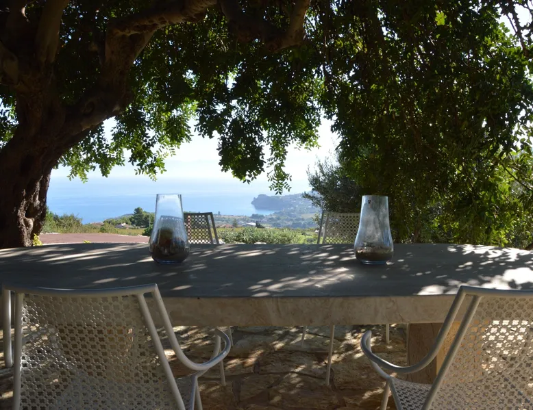 Villa 'La belle vue' is a 120sqm villa located in the countryside near Scopello, but at just 5 minutes from the sea by car. The villa has 2000sqm of garden with a panoramic view of the sea, surrounded by typical Mediterranean trees and plants. A roofed veranda with table and chairs, barbecue faces on to the lush garden, while in front of the main entrance another wide, uncovered veranda with panoramic views of the mountains and out to the sea, equipped with deckchairs, table and chairs. From the main entrance you access the living room with couches and fireplace and a hallway leading to the 2 bedrooms and the bathroom. There are two double bedrooms. As the crow flies the house is 2,5 Km from the amazing white pebble beach "Baia di Guidaloca", 1,8 Km from the picturesque stacks of Scopello and the enclosed ancient tuna-fishing port, 3,5 Km from the "Zingaro "Natural Reserve with its clear, azure bays and its untouched mediterranean flora and fauna. At 2 Km a supermarket and at 3.5 Km the picturesque borough of Scopello Equipment: Free wifi, cookware and dishes, linen, fans, fireplace, hair drier, iron and board, fridge and freezer, oven, washing machine, toaster, kettle and barbecue.