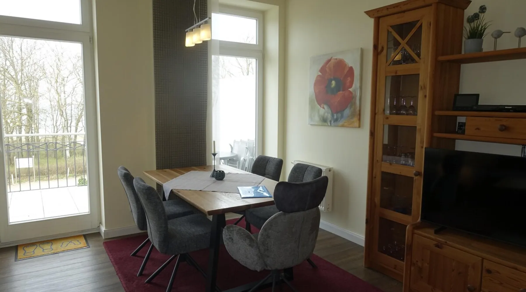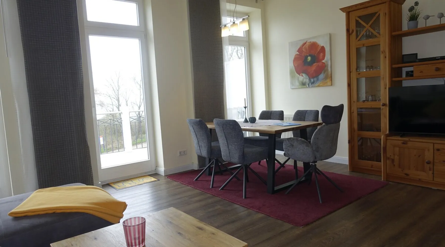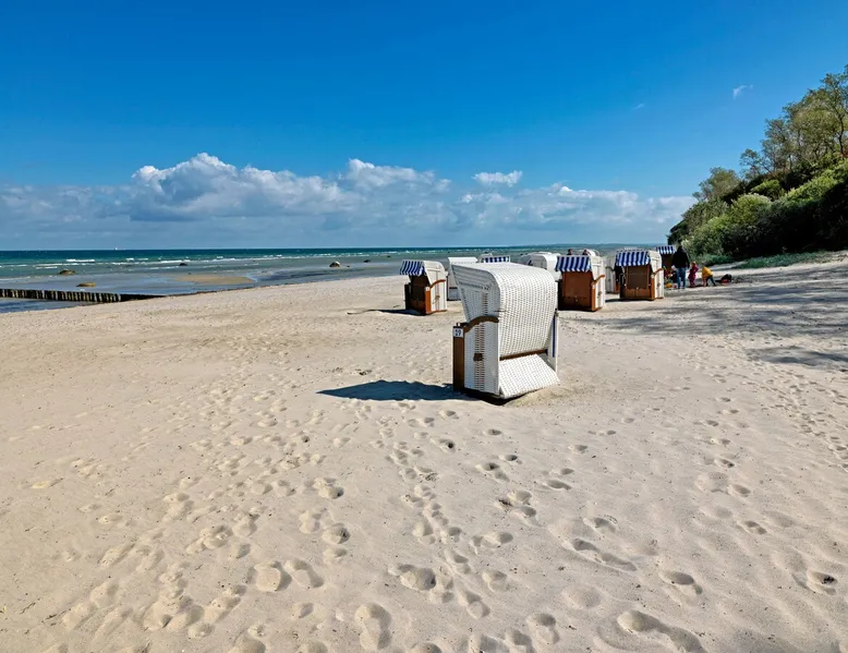 Beautiful, bright 3-room apartment with a large balcony and sea view right on the beach “Schwarzer Busch”. Other things to note From the balcony of the apartment "Strandblick" you have a wonderful view to the "Schwarzen Busch" beach. The apartment is about 55m² and can accommodate 5 people. Fantastic, light-flooded apartment on the first floor with large balcony. One bedroom with double bed and TV, the second bedroom with bunk bed and a single bed. The bathroom is equipped with shower and toilet. For the little guests there is a highchair available. You can rent a children's travel cot via PAS. The non-smoking apartment, in which no pets are allowed, is therefore allergy friendly!